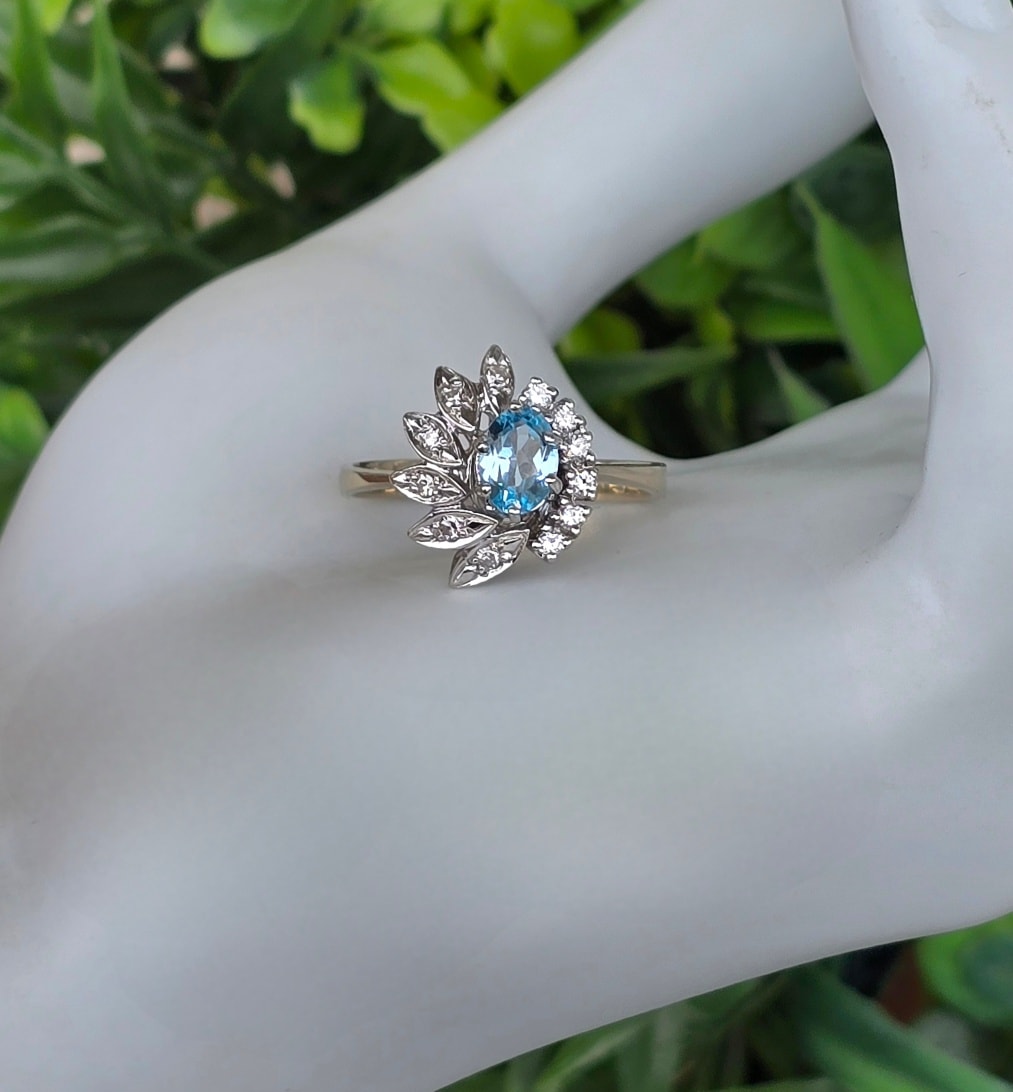 Inel vechi spectaculos, din aur de 14K, cu topaz și 12 diamante naturale de calitate superioară. 4.650,00 RON 0,00 RON