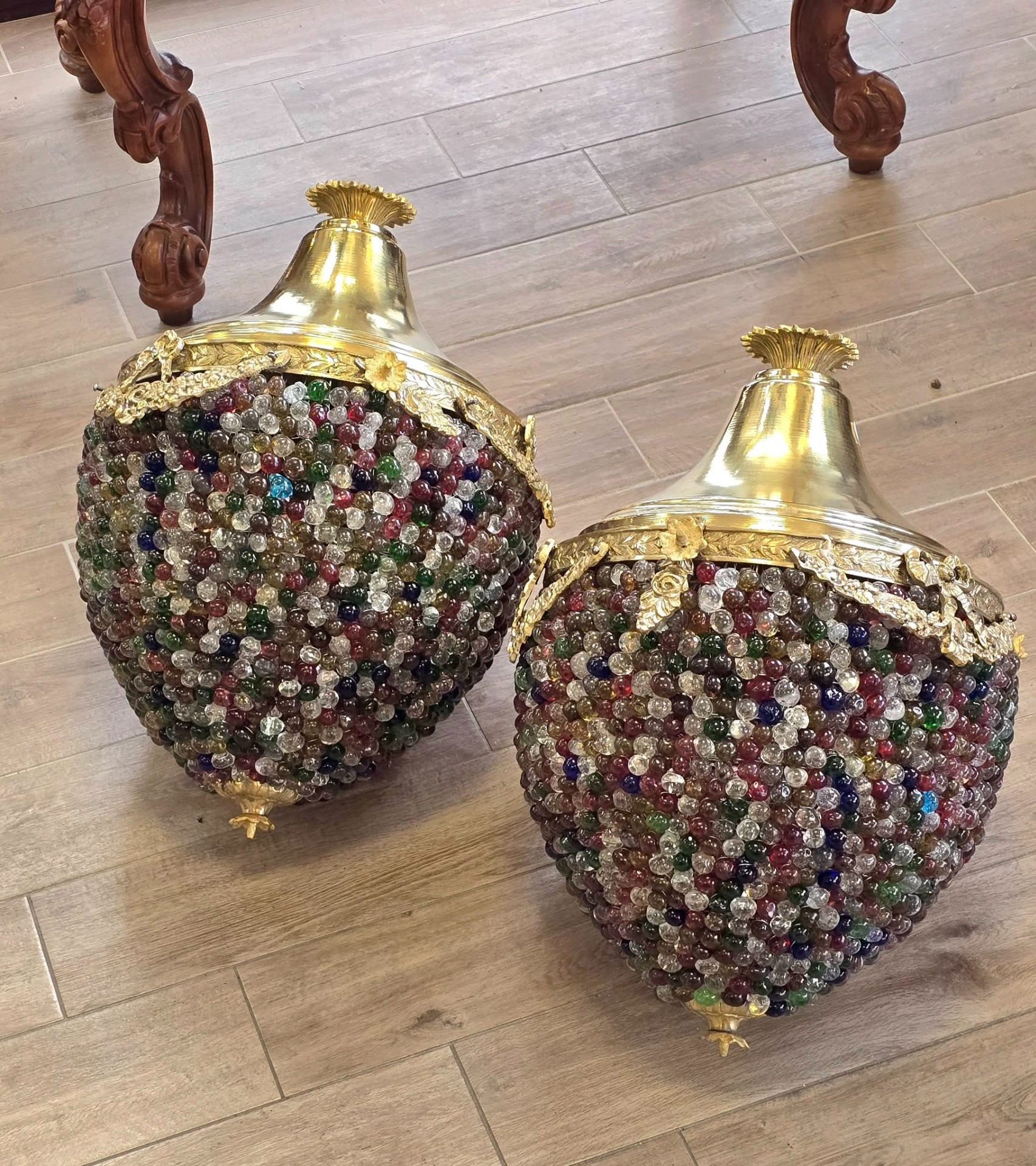 Lampă suspendată deosebită, realizată din bronz masiv bogat ornamentat, cu brațe decorative în stil baroc / rococo, 1.250,00 RON 0,00 RON