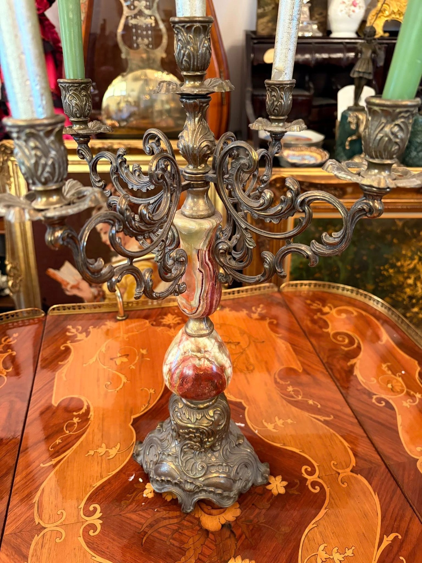 Pereche superbă de sfeșnice decorative, realizate din porțelan pictat manual și monturi din bronz, 2.750,00 RON 0,00 RON