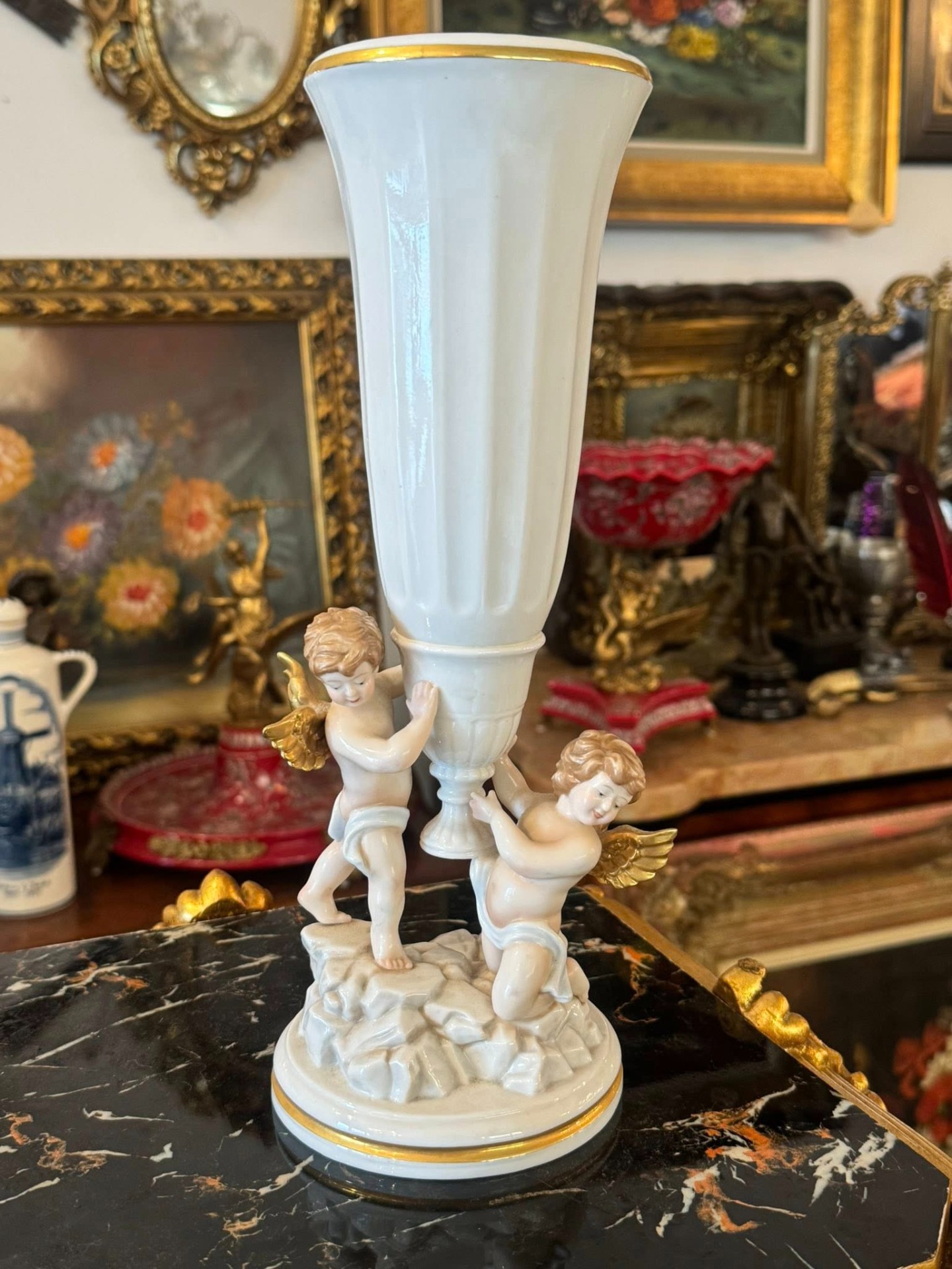 Vază superbă din porțelan fin cu amorași sculptați și detalii aurii, Stoc epuizat 650,00 RON 0,00 RON