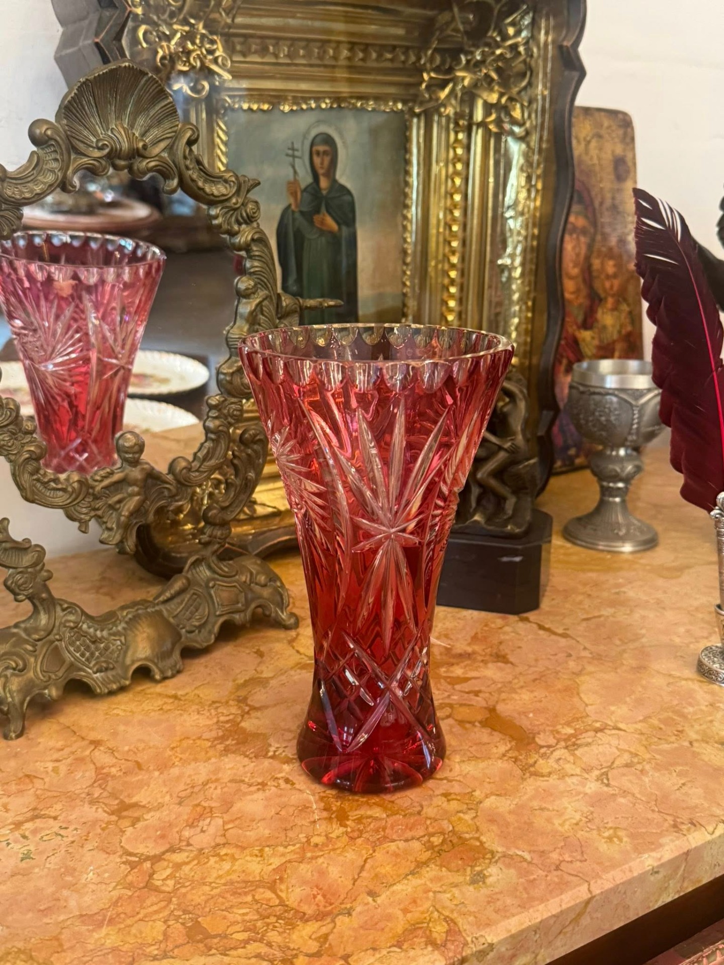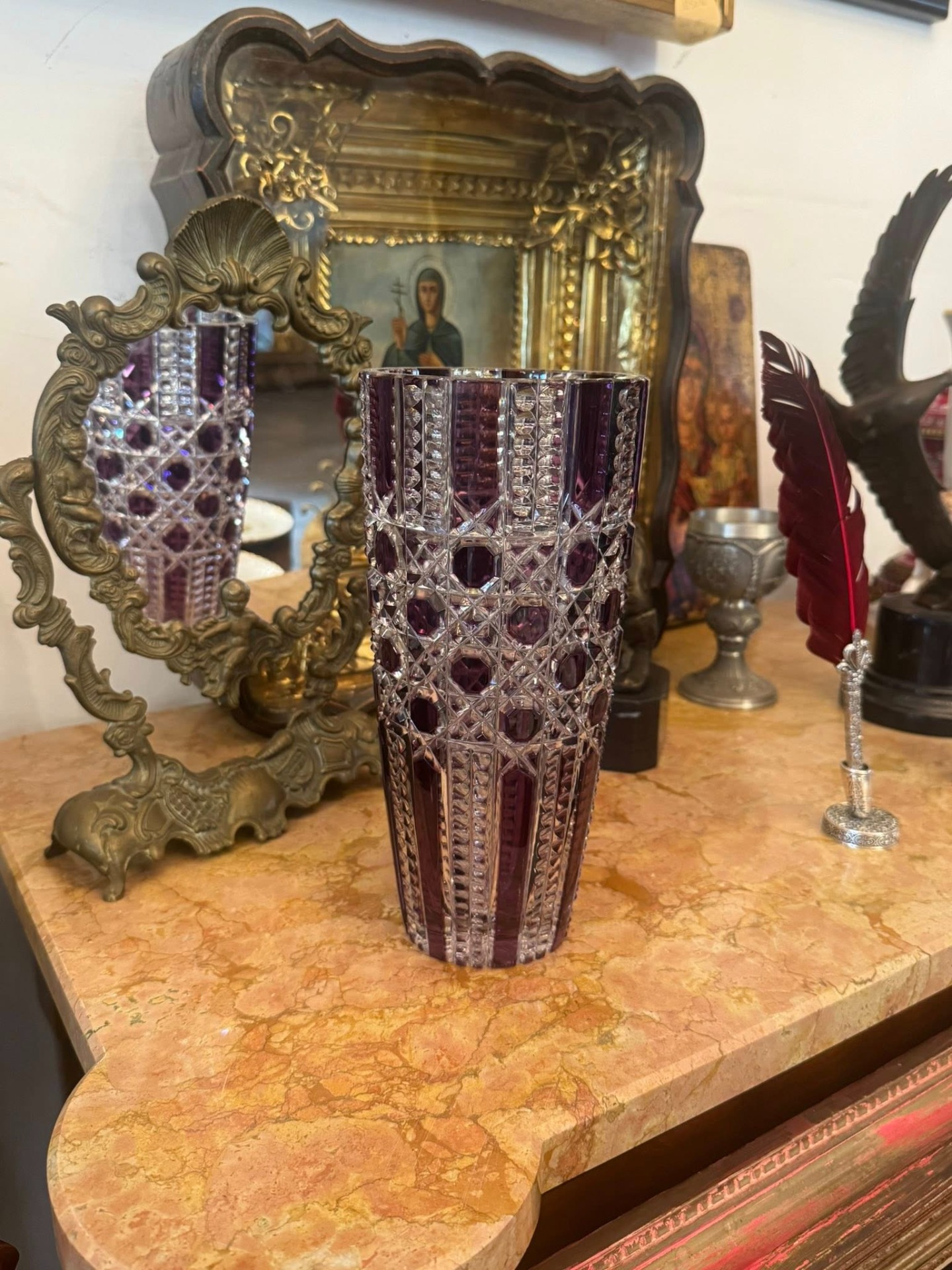 Vază decorativă din cristal gros, de calitate superioară, cu nuanță rafinată de mov-ambră, 320,00 RON 0,00 RON