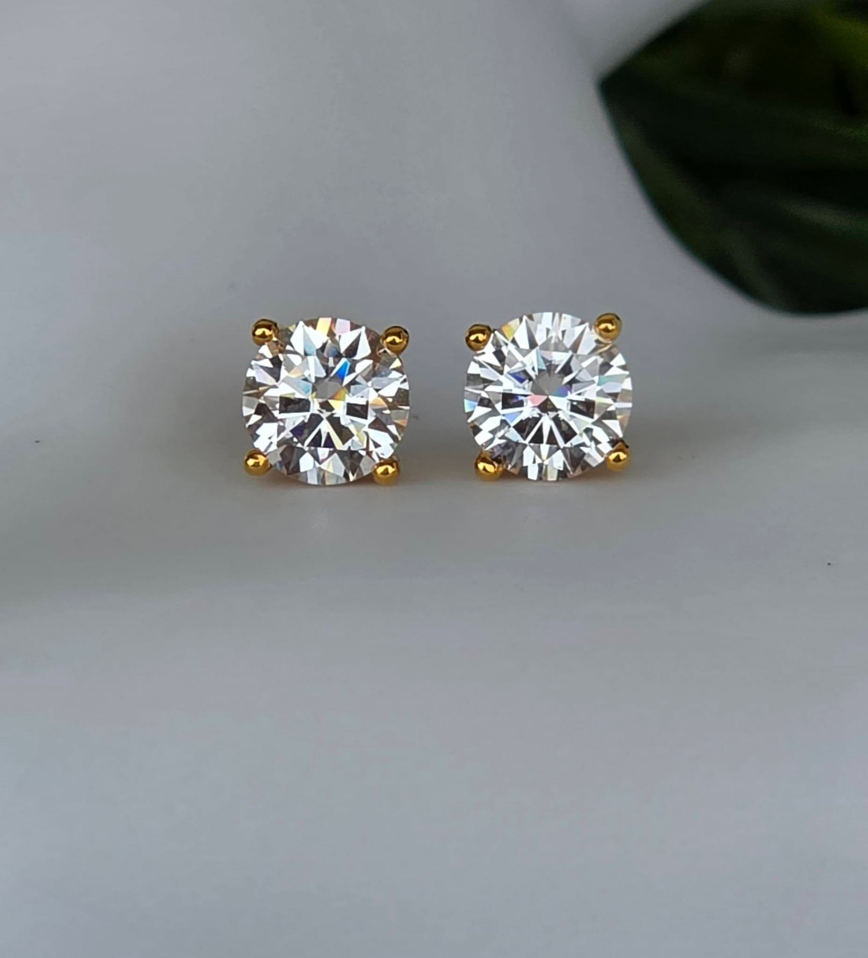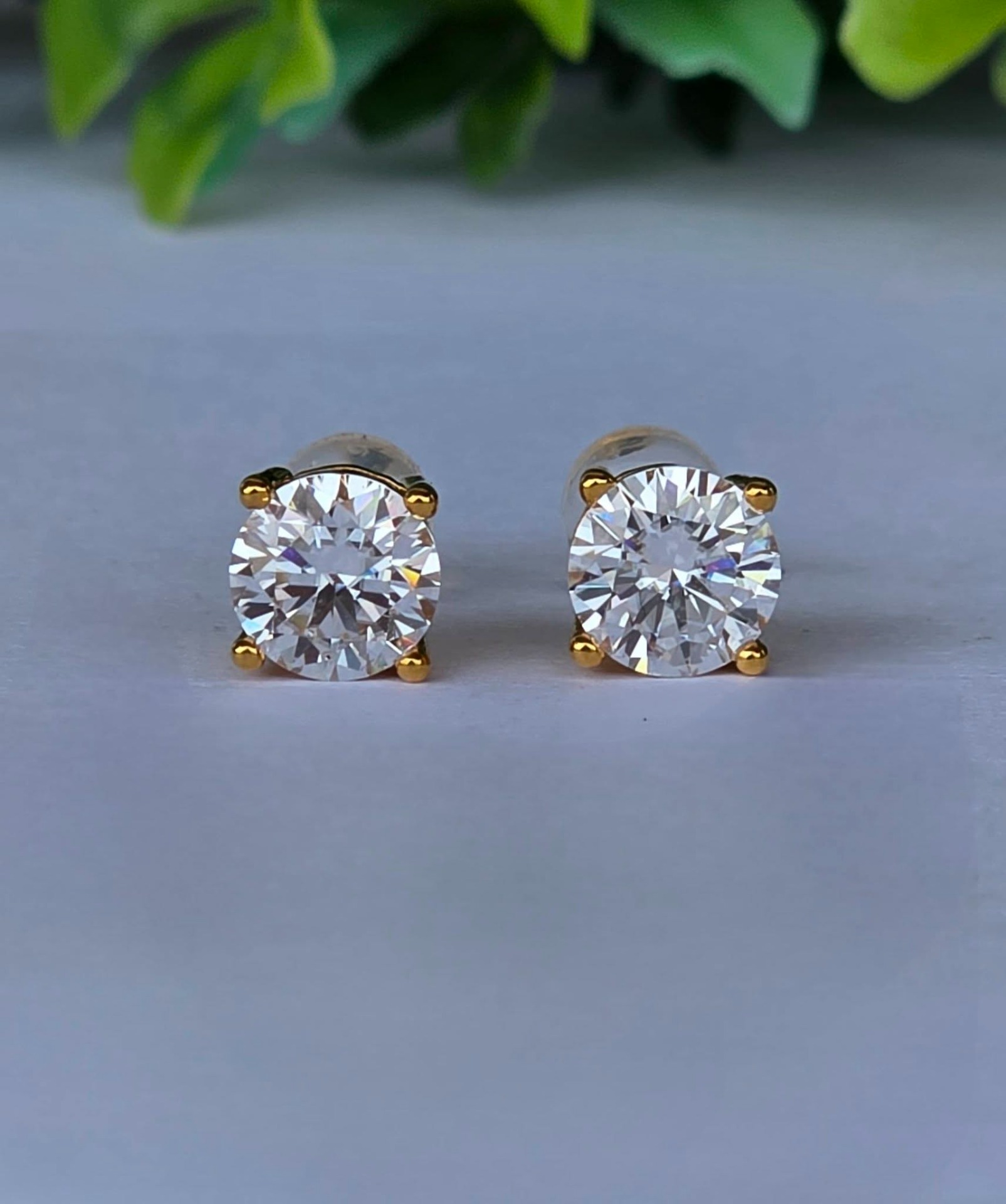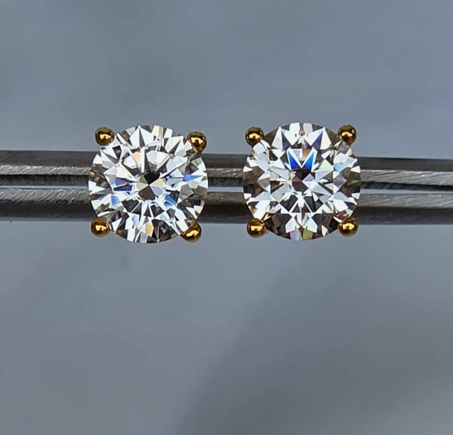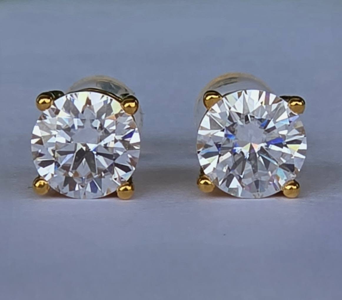 Cercei contemporani strălucitori, din aur de 18K, cu 2 superbe moissanite "brilliant-cut" de calitate excepțională (2x1ct).