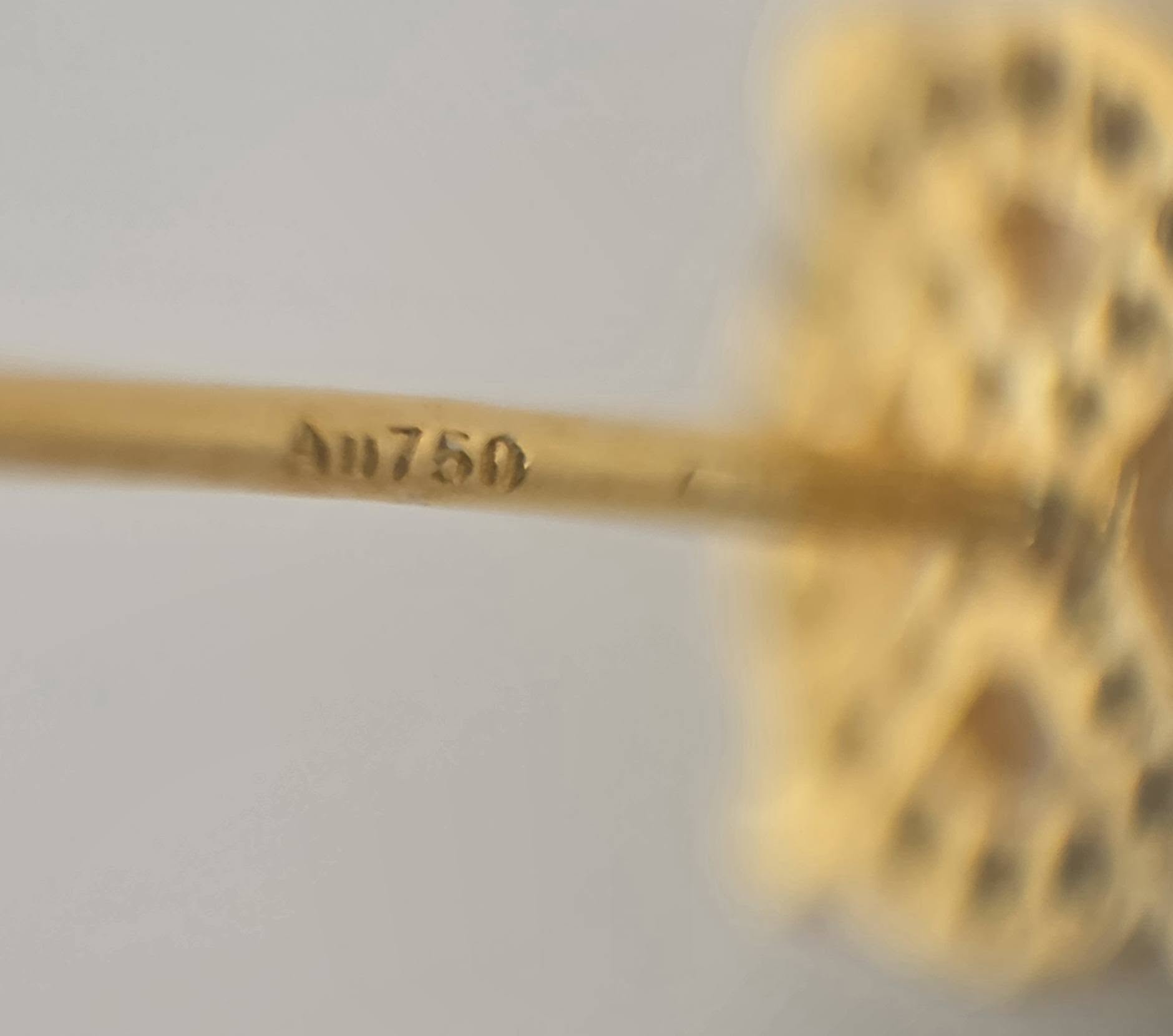 Prezintă marcaje 750 pentru puritate aur de 18K.