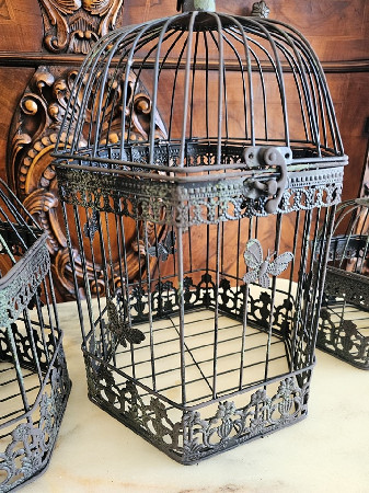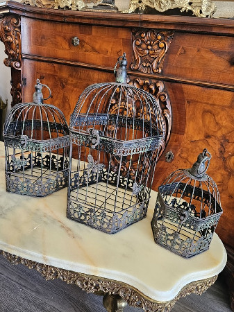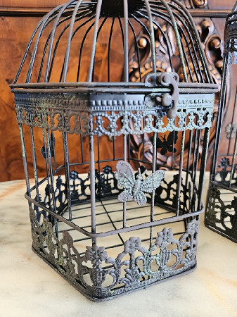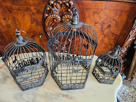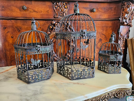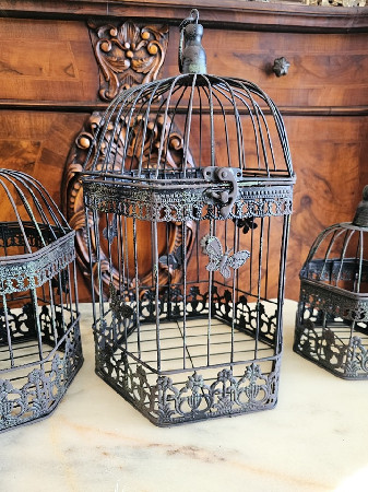 3 colivi vintage din metal,decor cu fluturași.