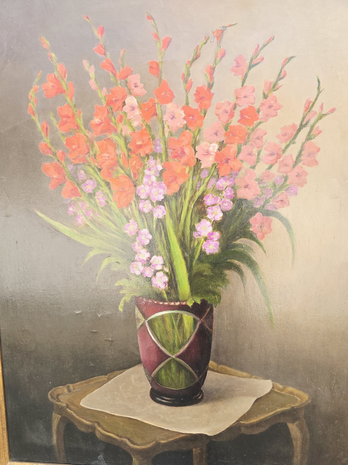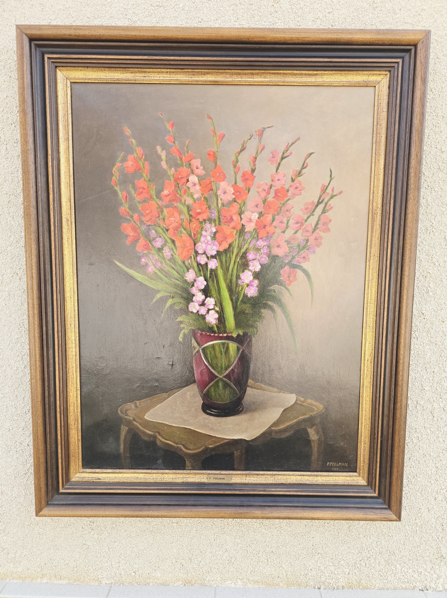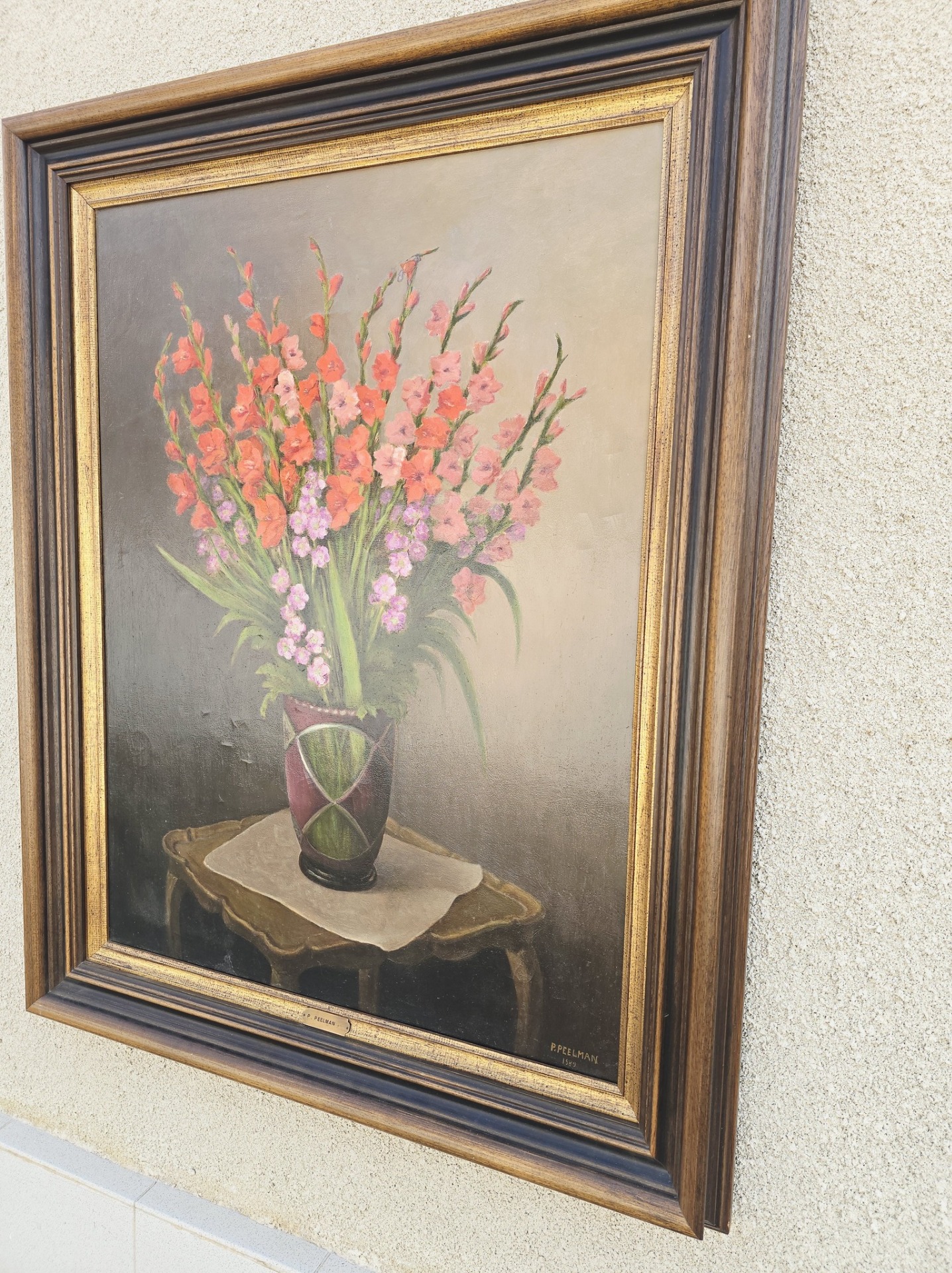 Tablou Impunător „Buchet de Gladiole” – P. Peelman (1989), Dimensiuni Mari 125x100 cm