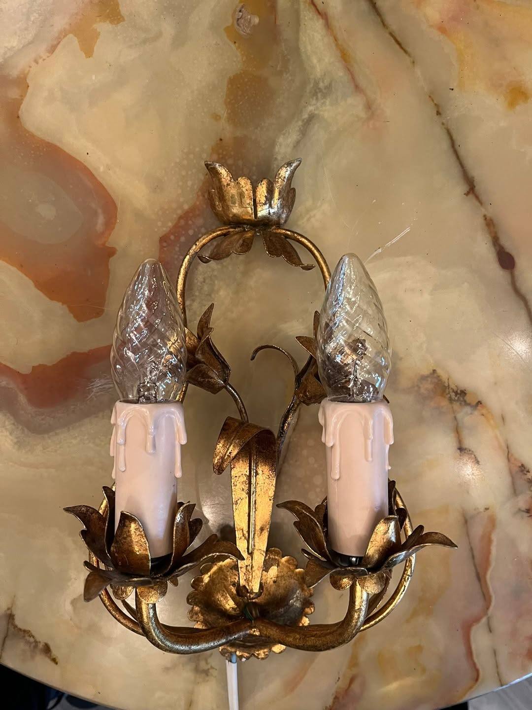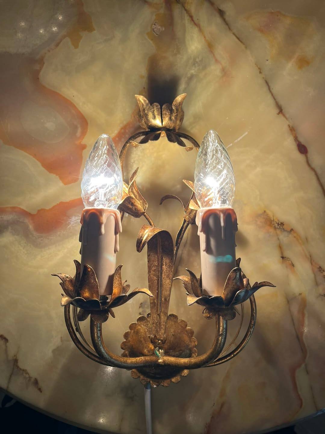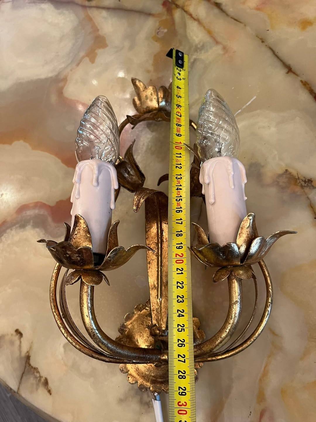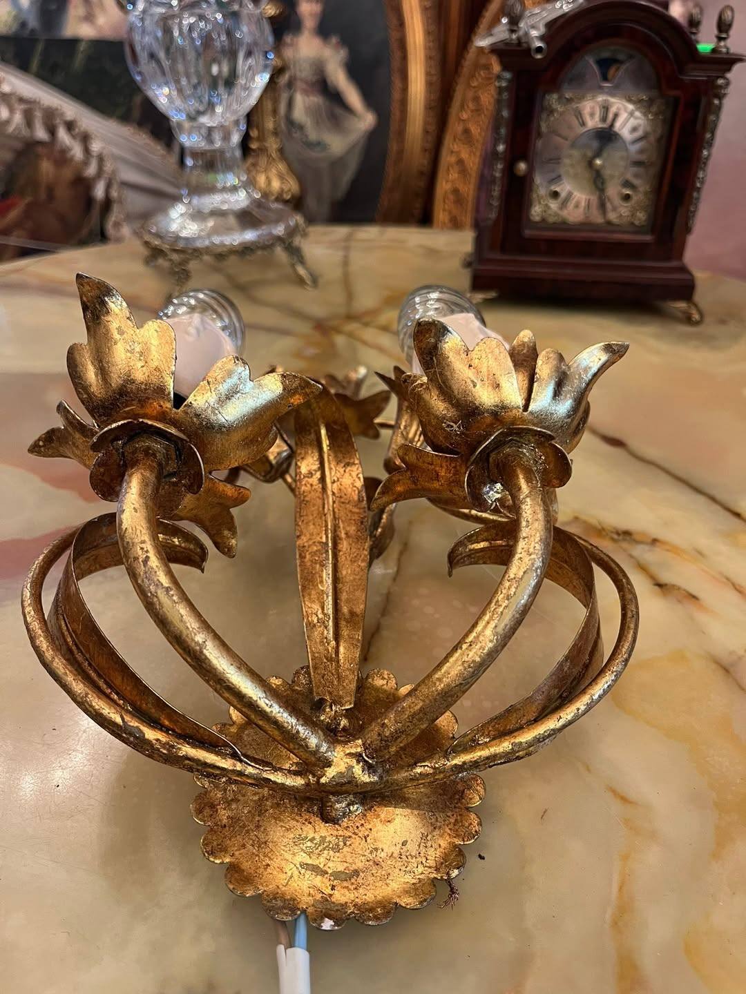 Aplică vintage cu 2 becuri – metal auriu, model floral