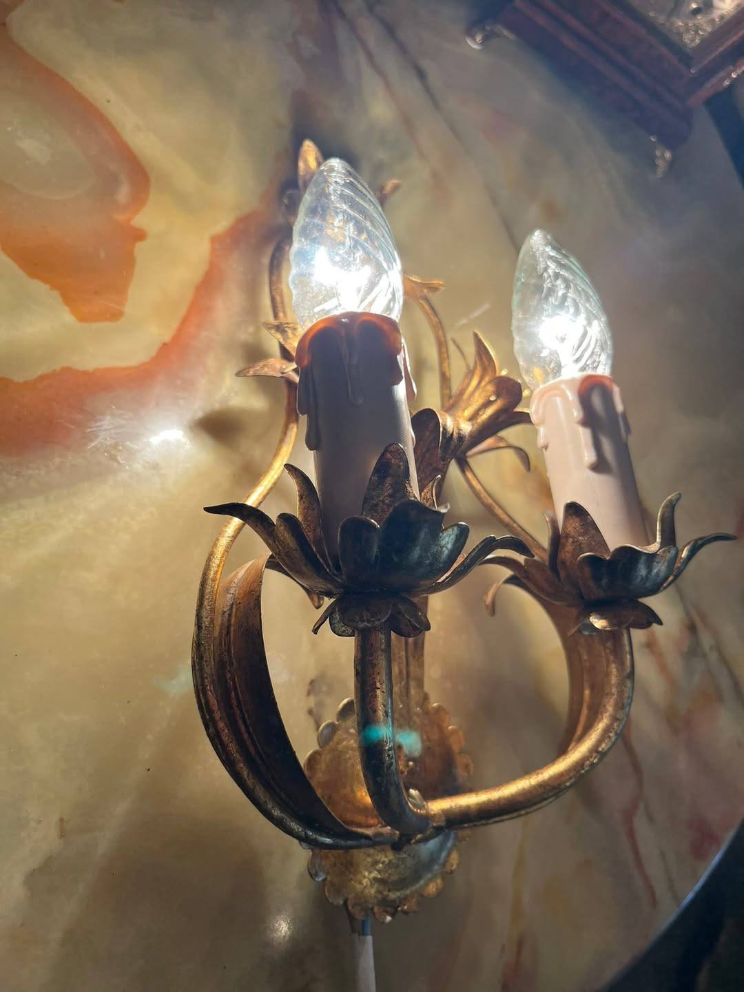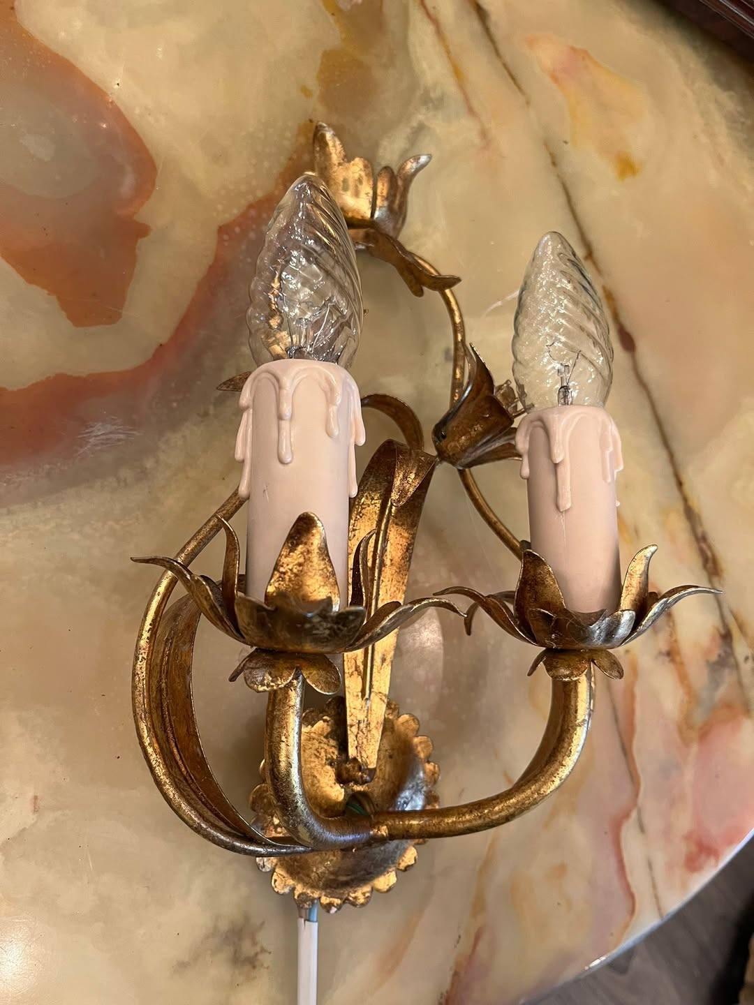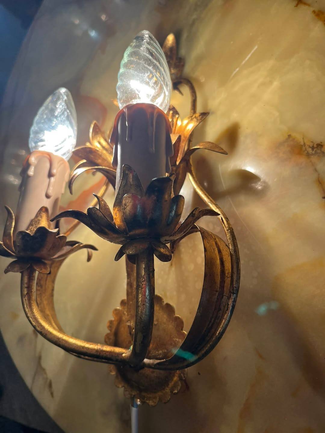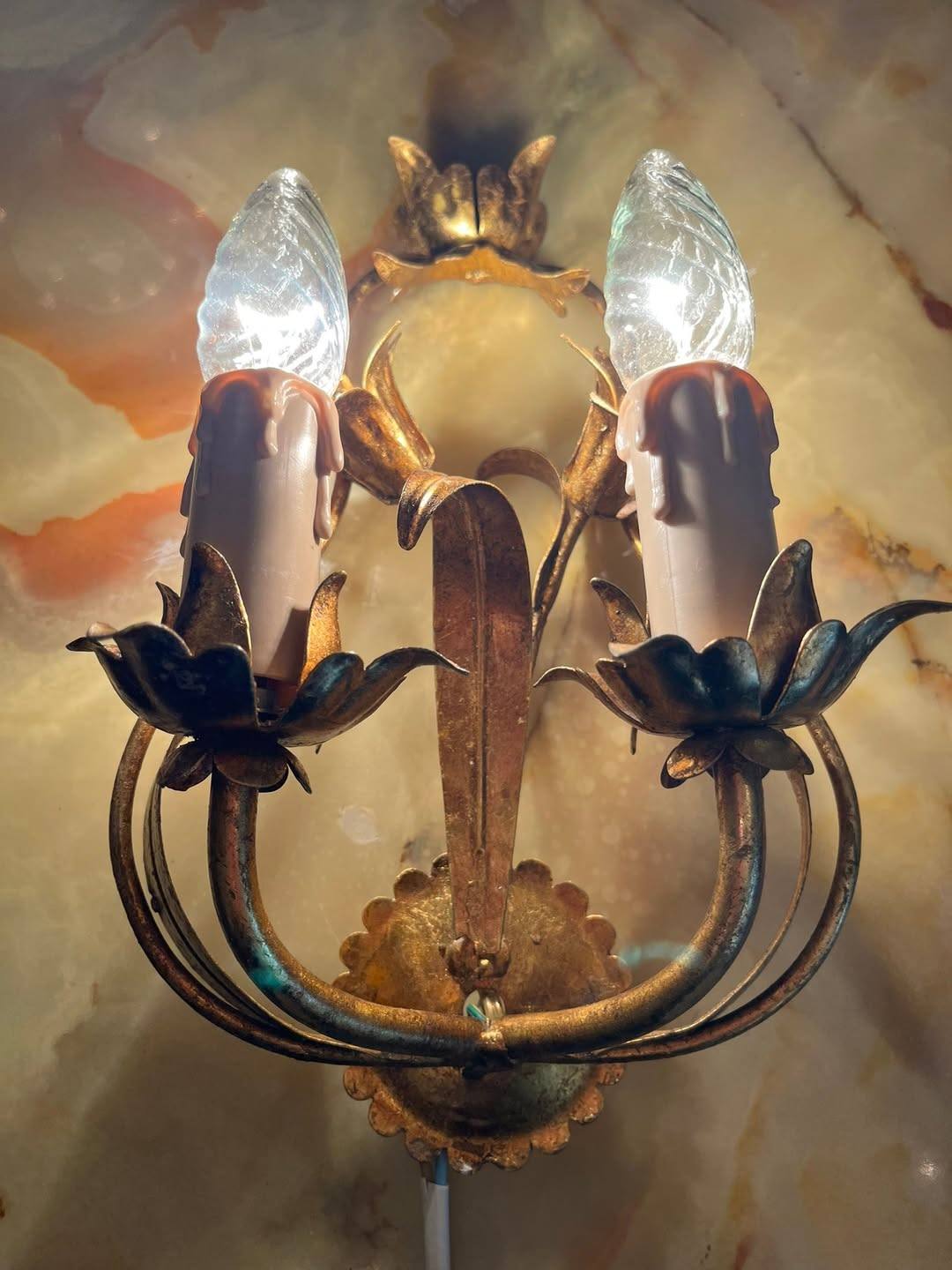 Aplică vintage cu 2 becuri – metal auriu, model floral