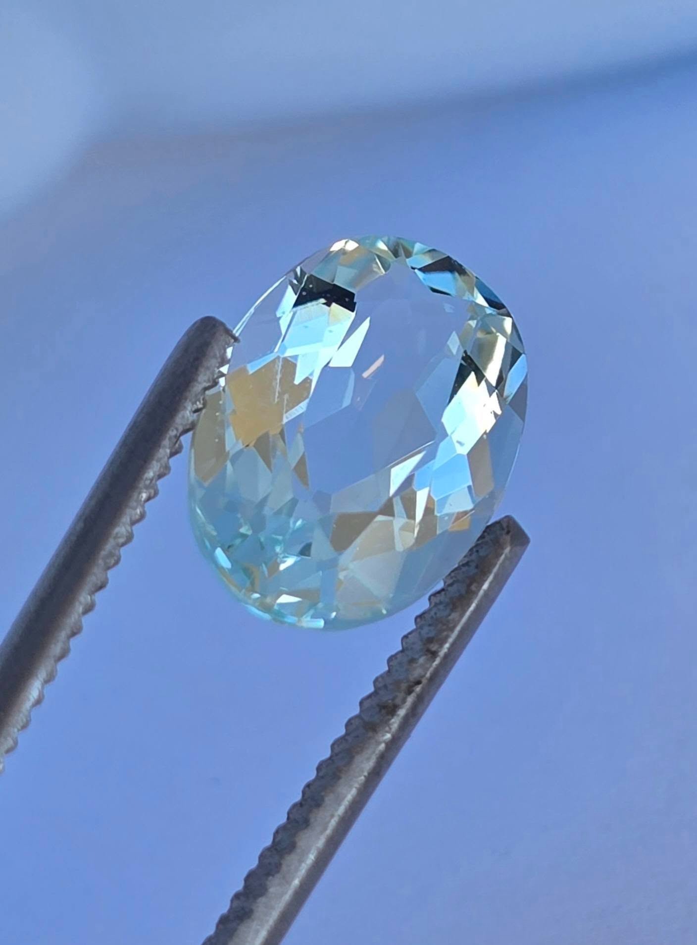 Aquamarin natural de calitate superioară, tăietură ovală.