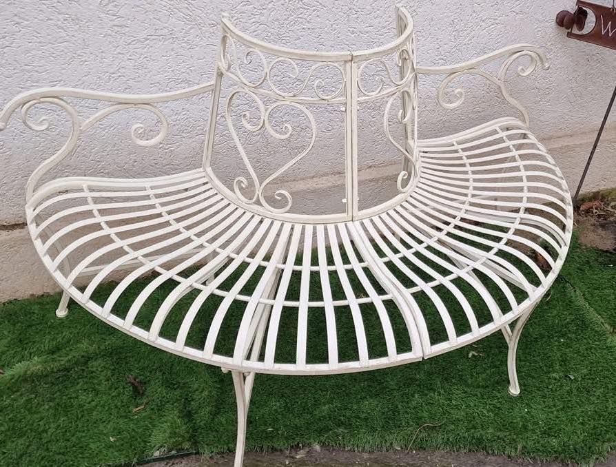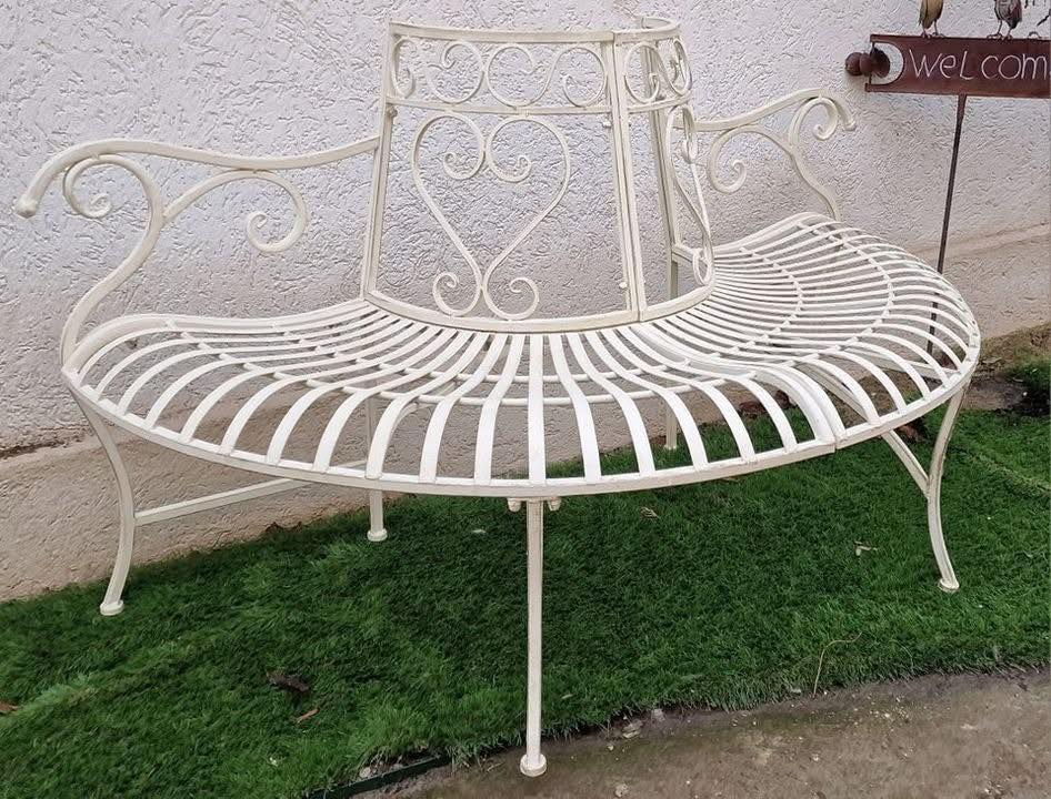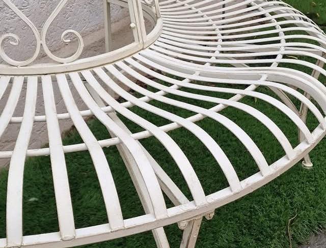 Banca de gradina din fier se poate aseza în jurul unui copac.