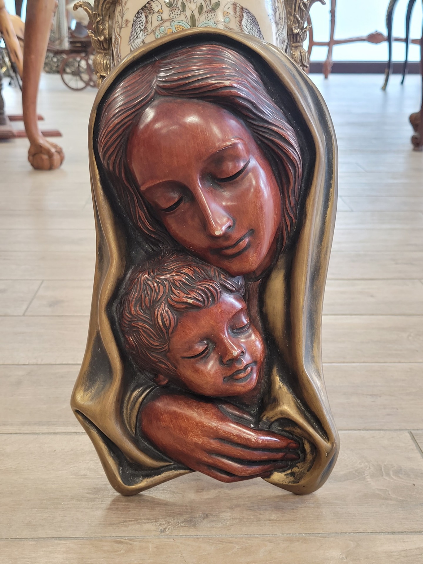 Basorelief "Fecioara Maria cu Pruncul", de colecție, realizat din rășină de înaltă calitate finisată manual.