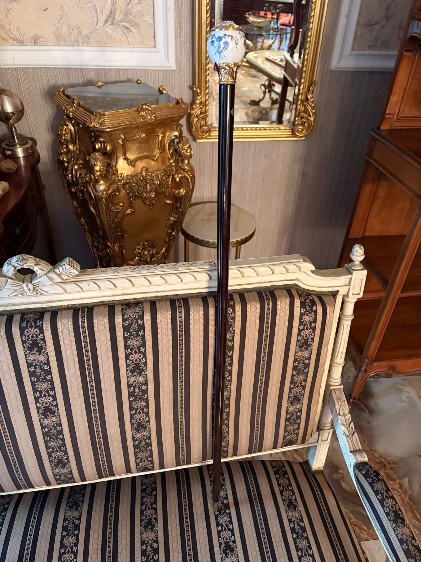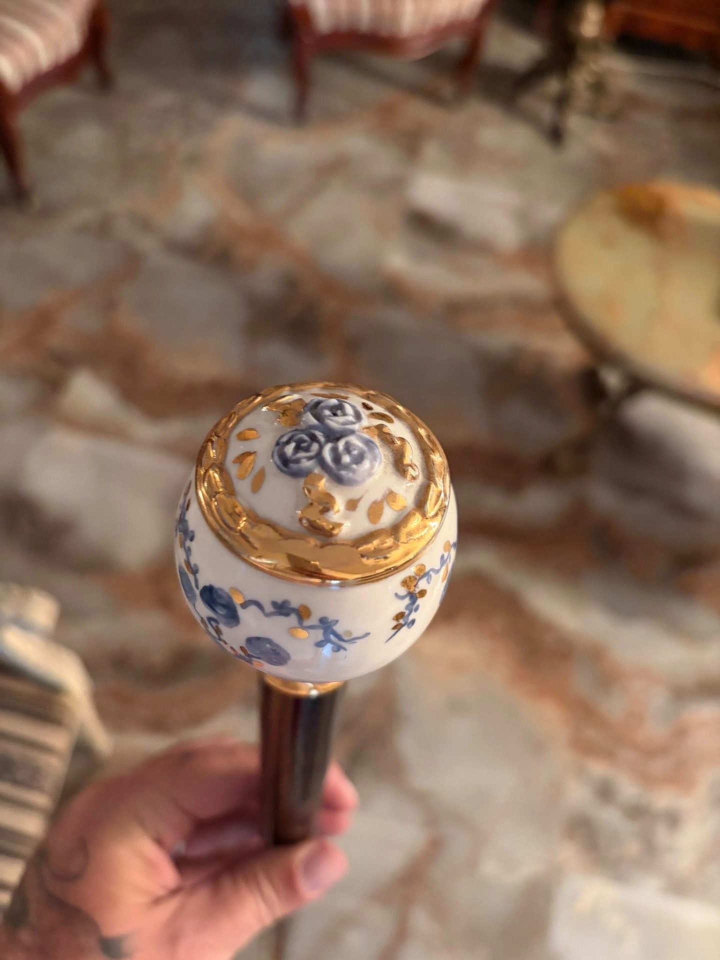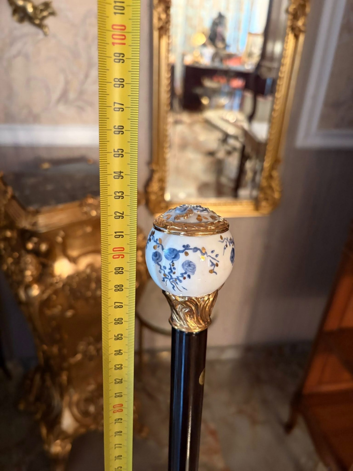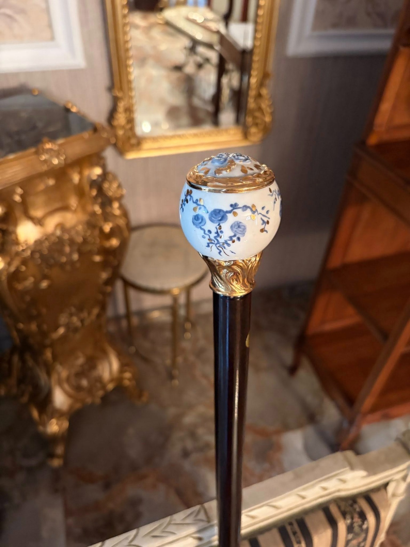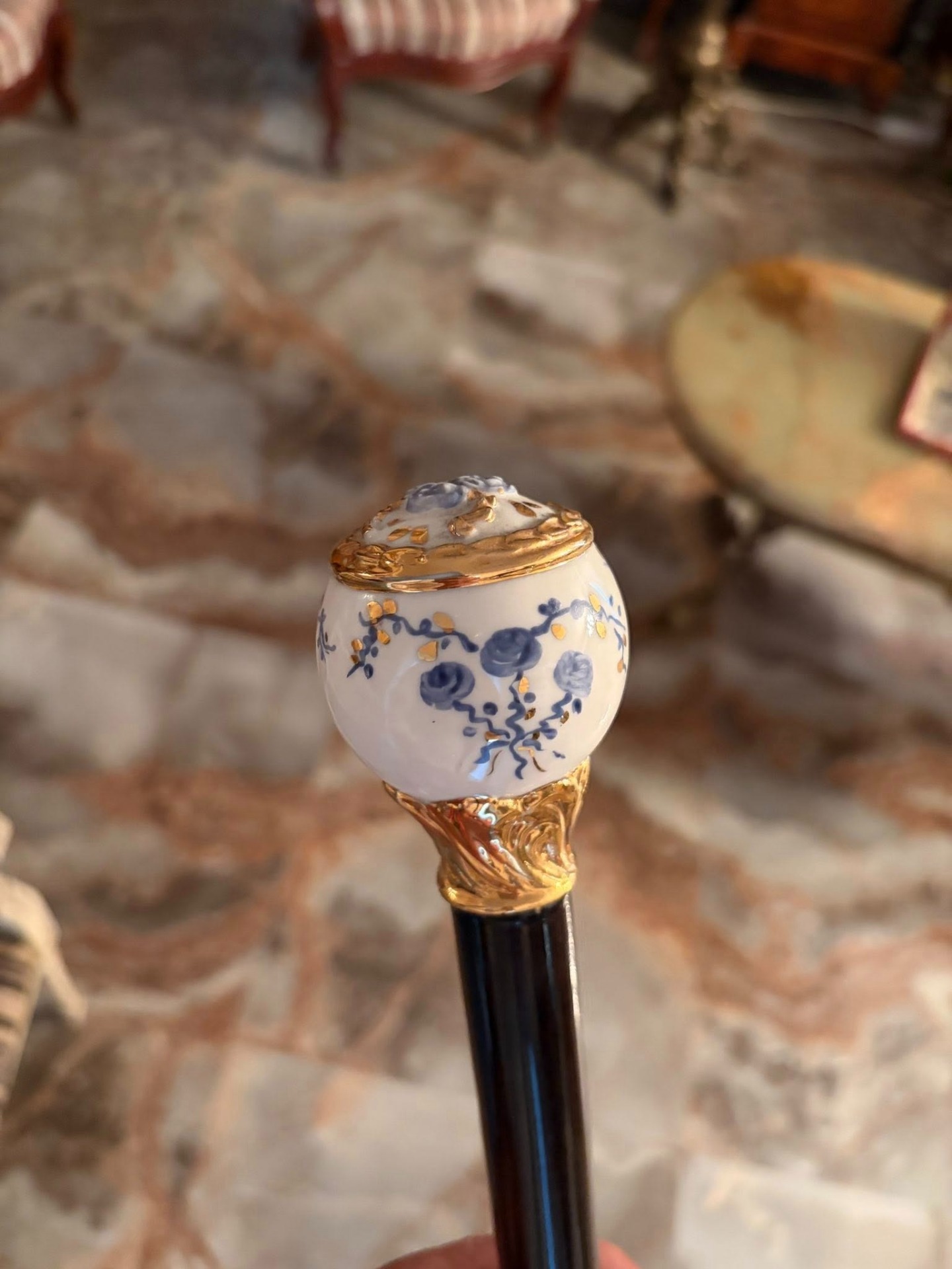Baston elegant, din lemn si portelan (inspirat de Meissen sau Delft), pictat manual.