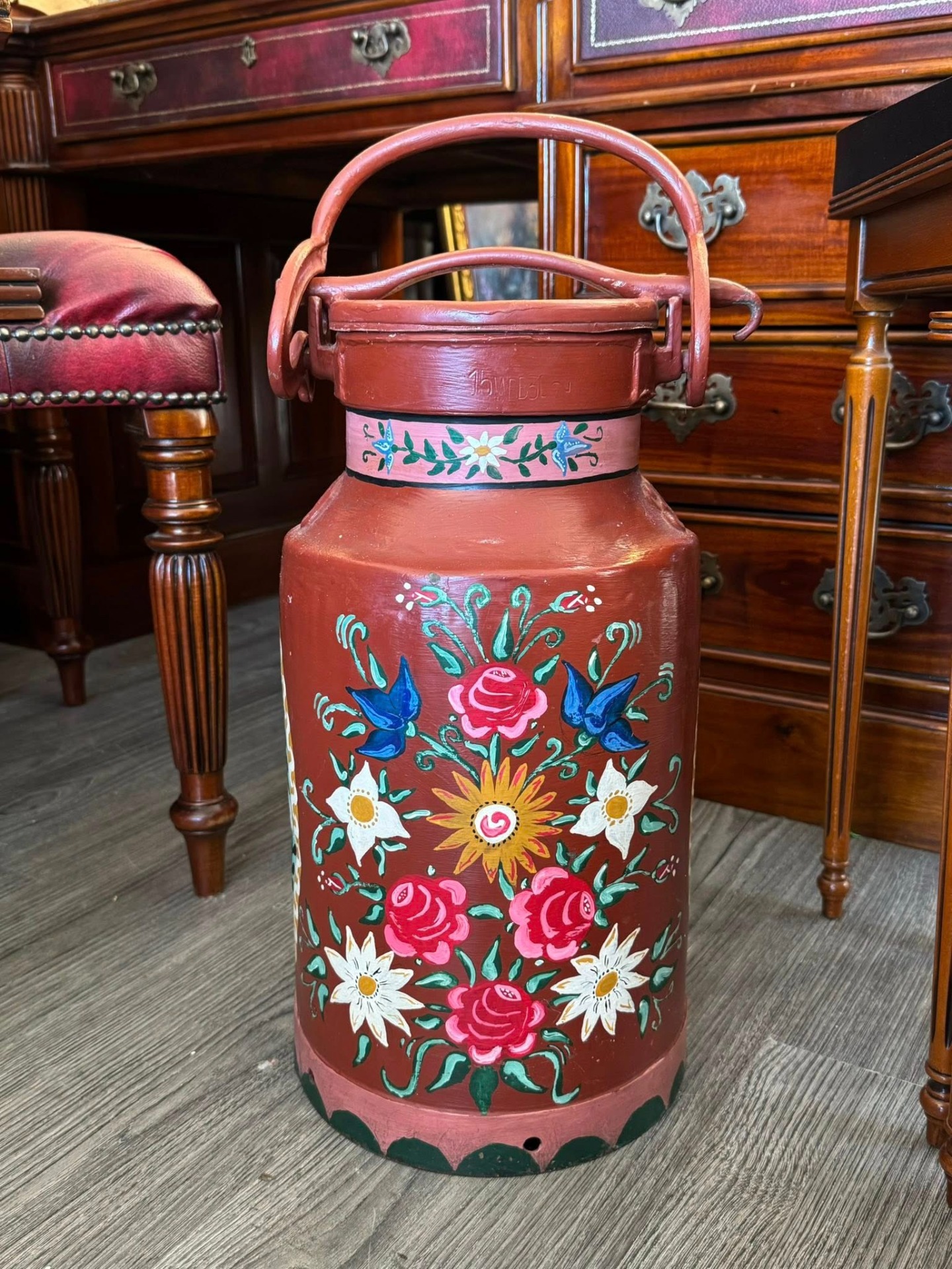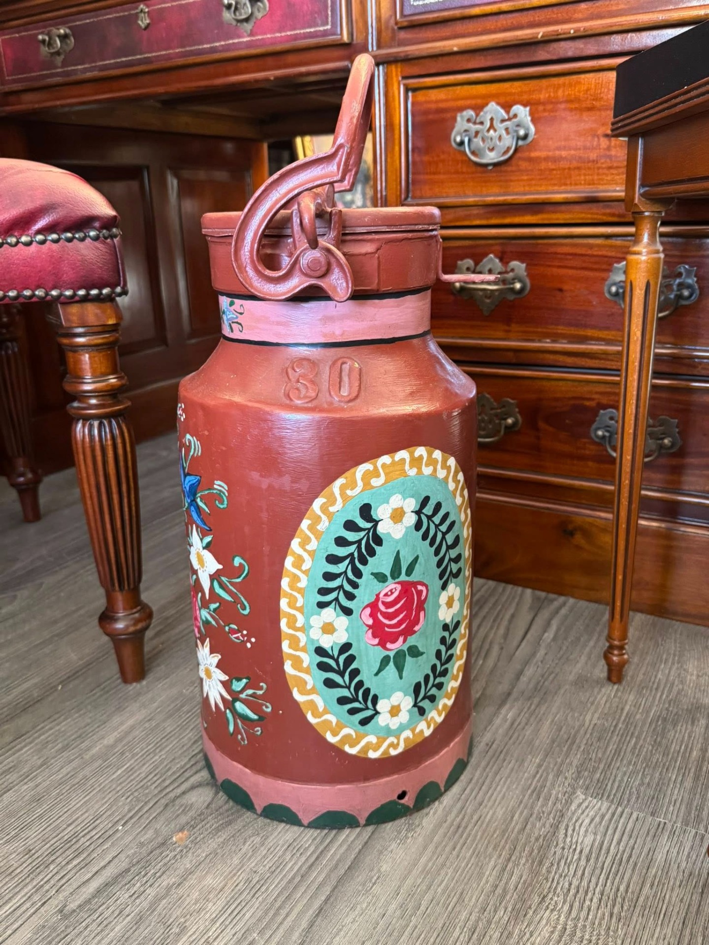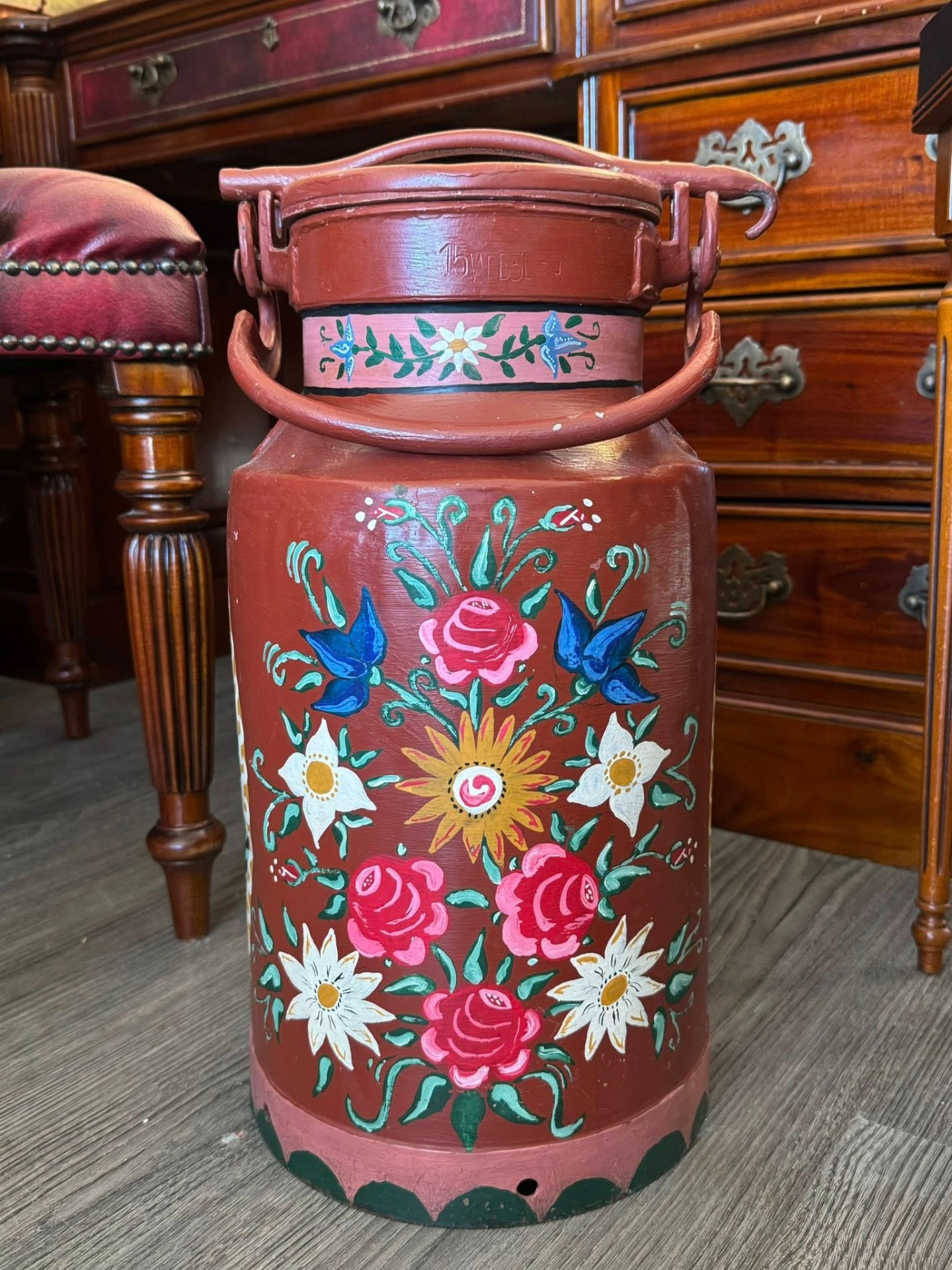 Bidon de lapte tradițional – pictat manual în stil Alpin (Germania, cca 1970)