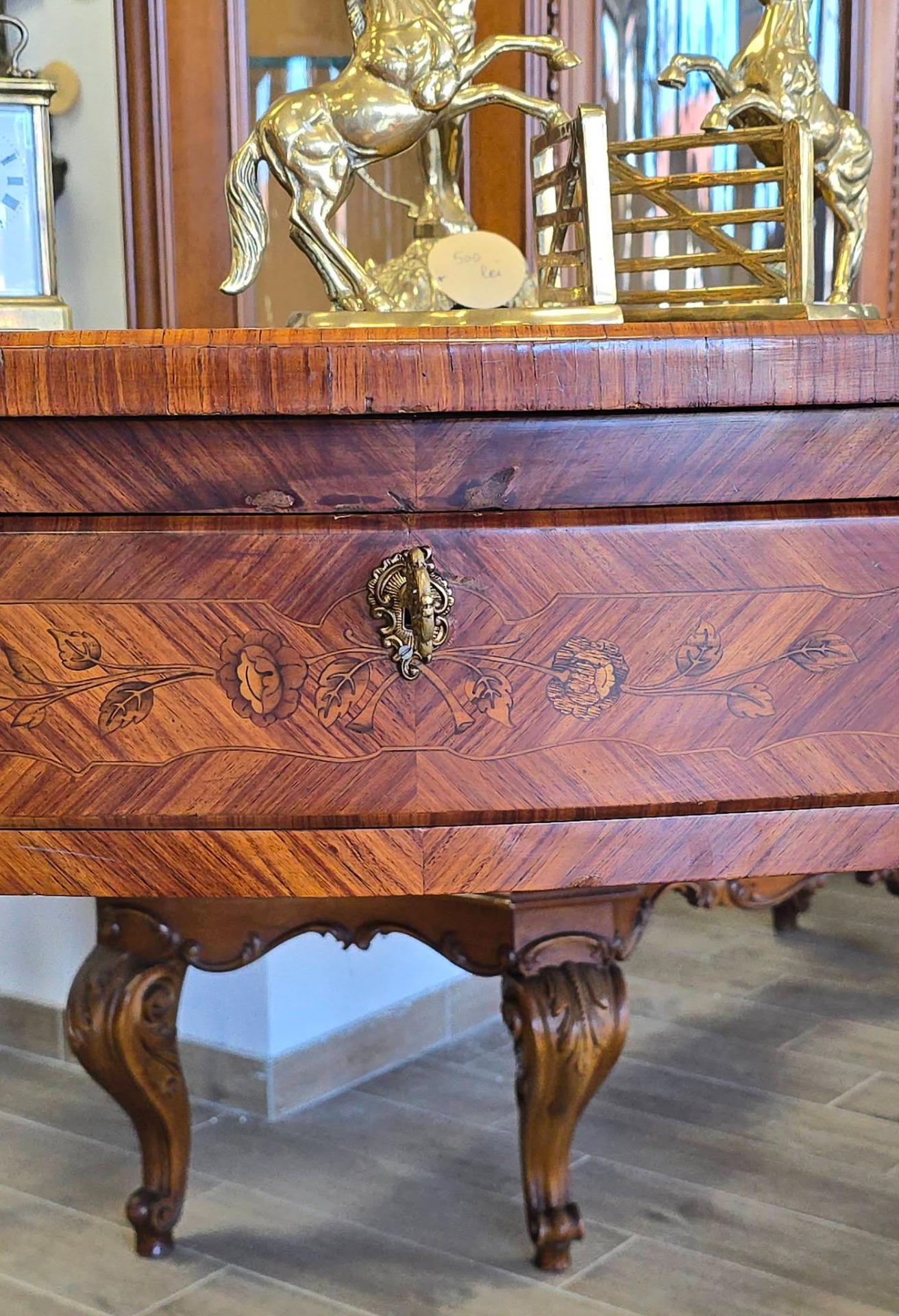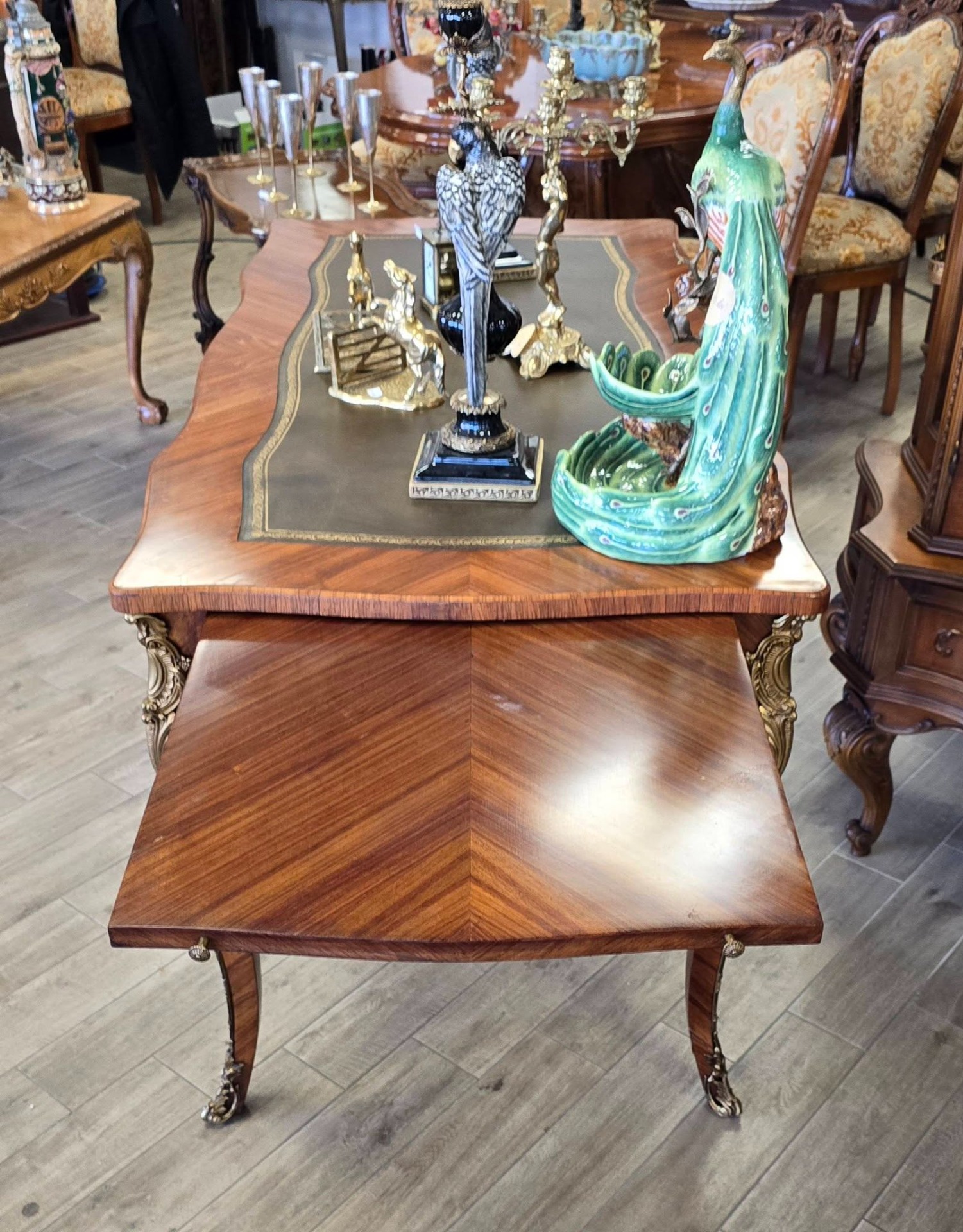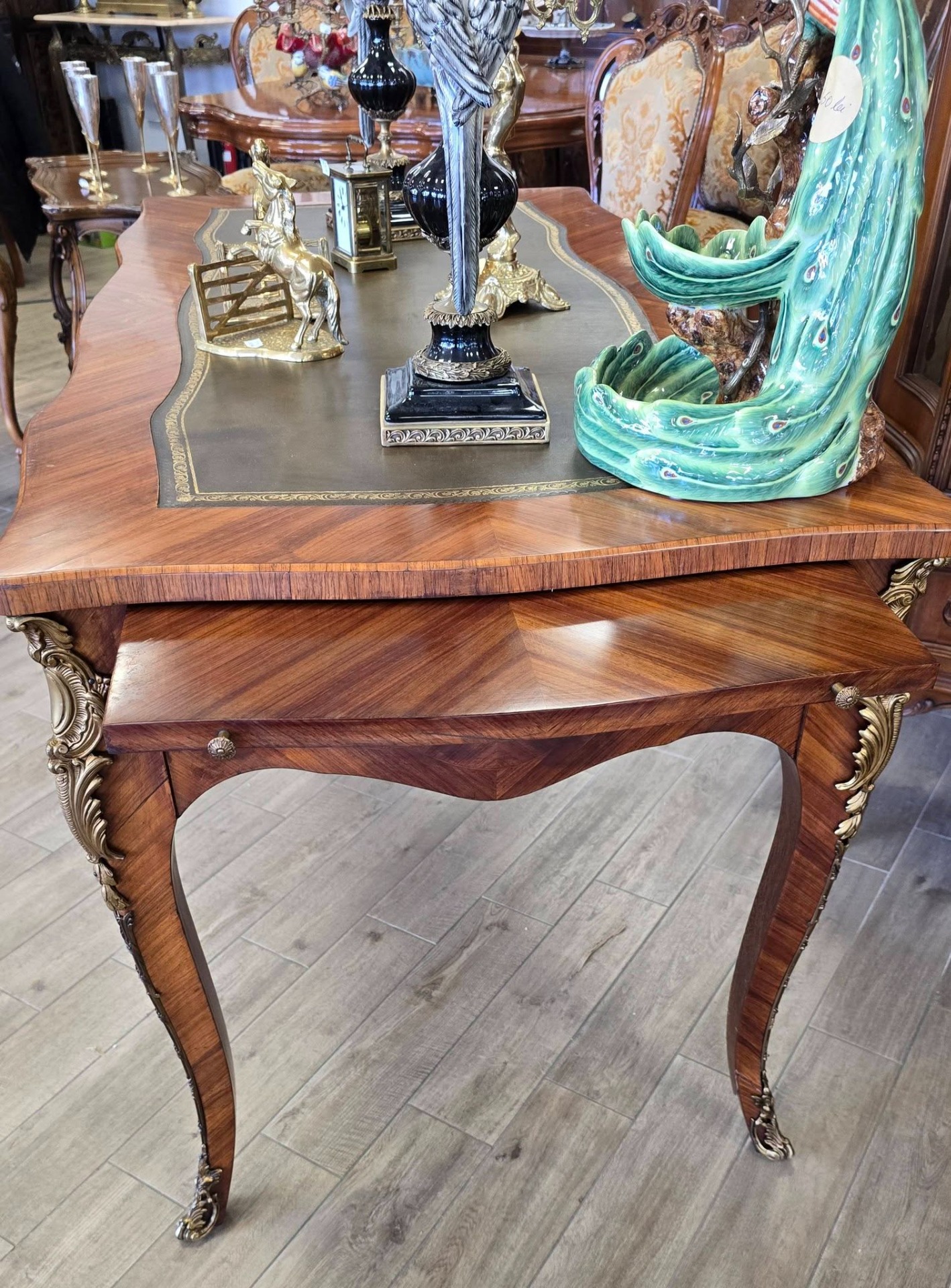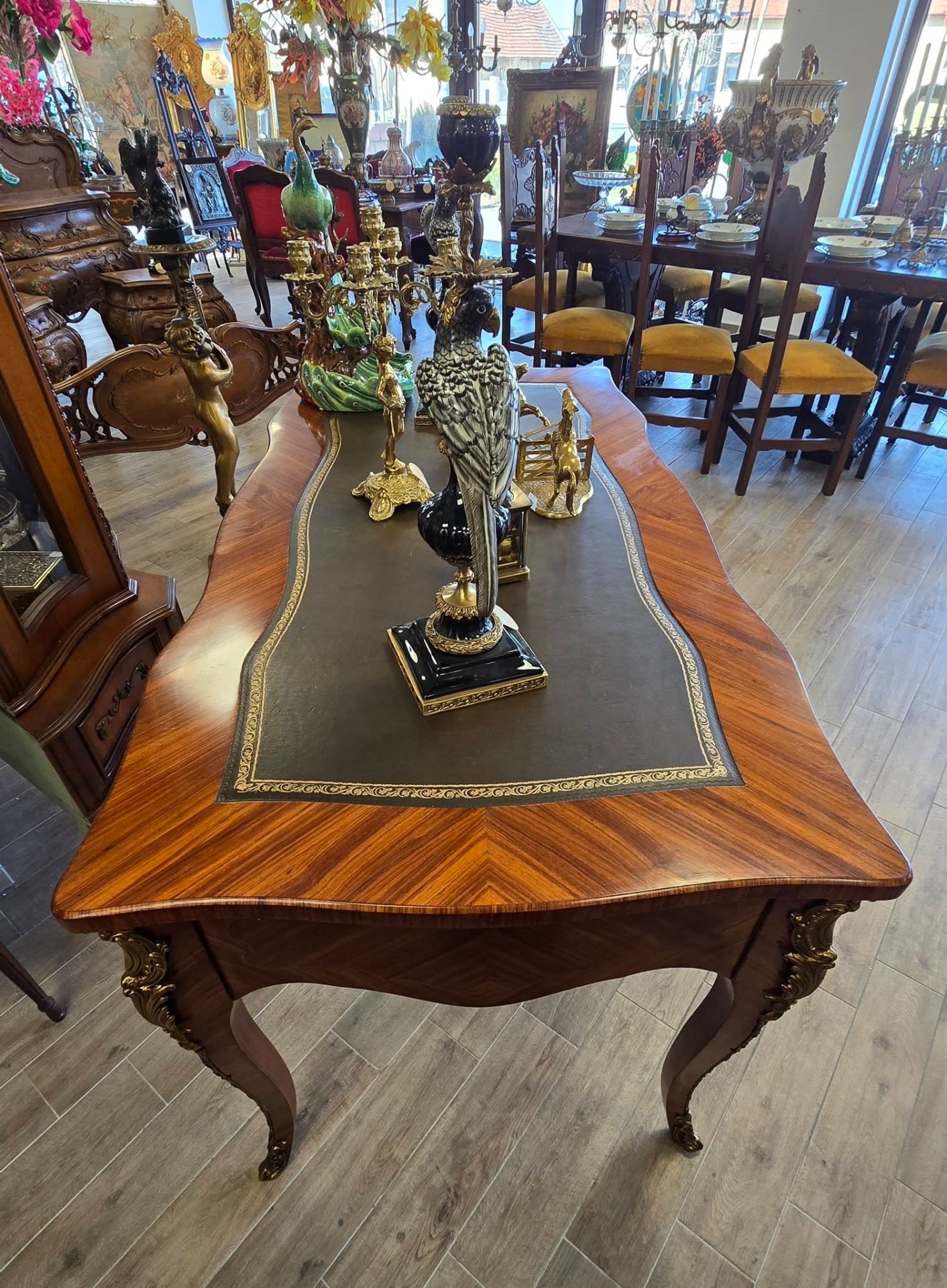 Birou deosebit stil Louis XV (Rococo) cu extensii laterale și marchetărie florală, o piesă de mobilier impunătoare și elegantă, ideală pentru un cabinet de lucru, bibliotecă sau un living rafinat.