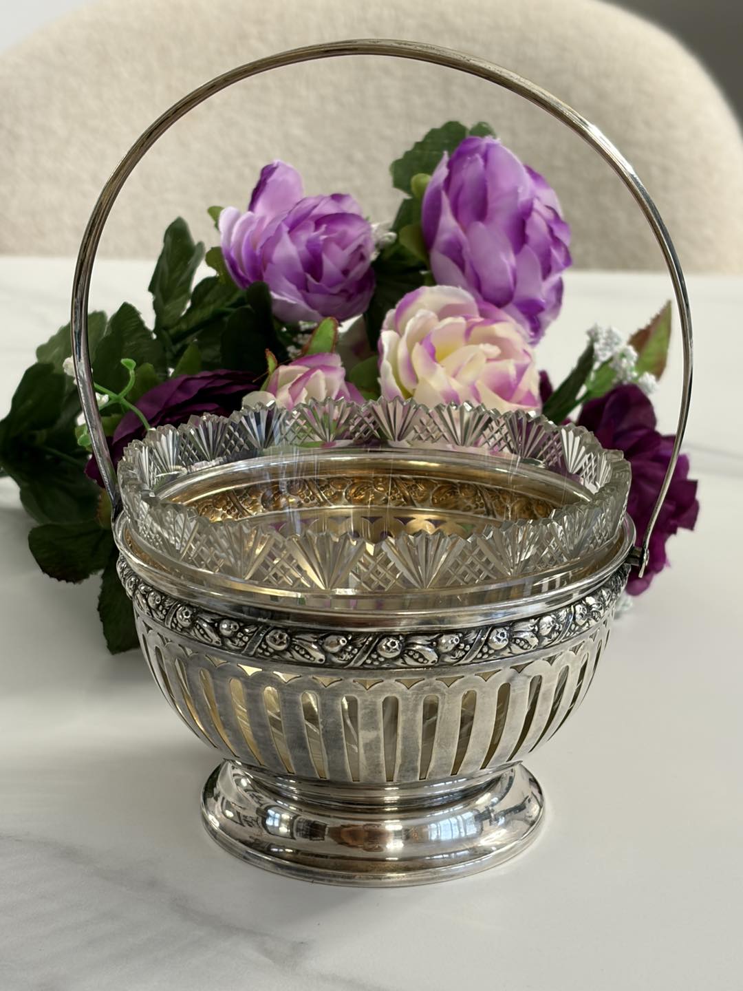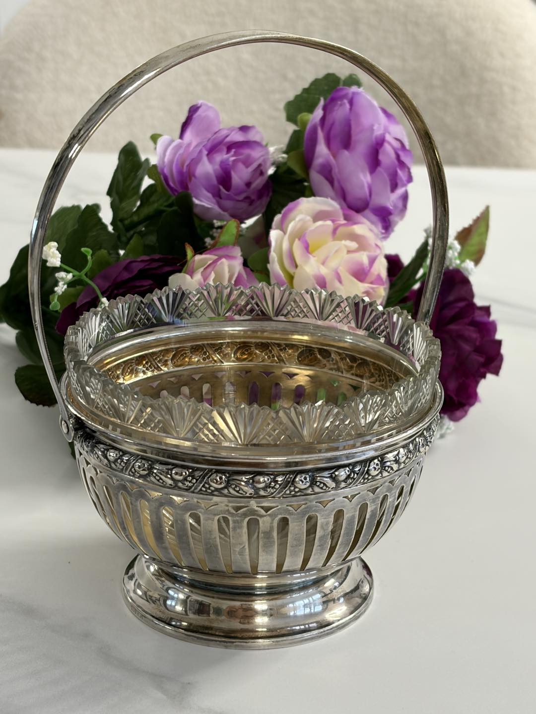 Bombonieră de colecție din Argint Masiv 800 și Cristal – Piesă de Epocă cca 1900 La Belle Époque