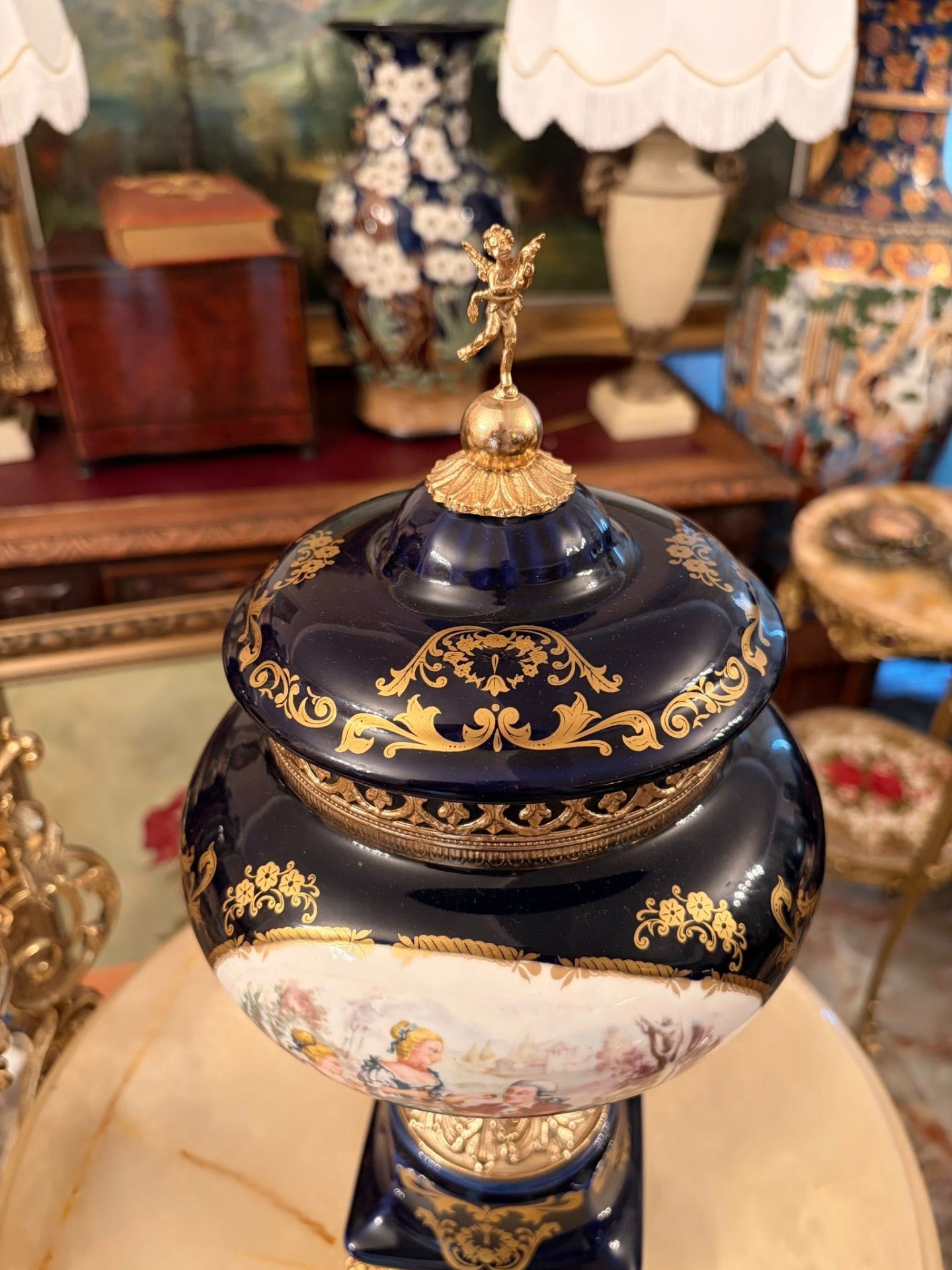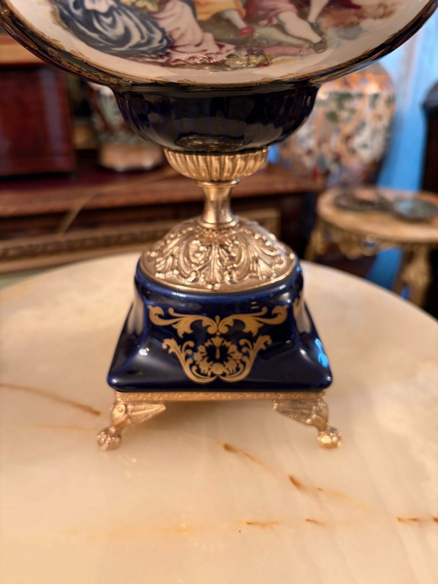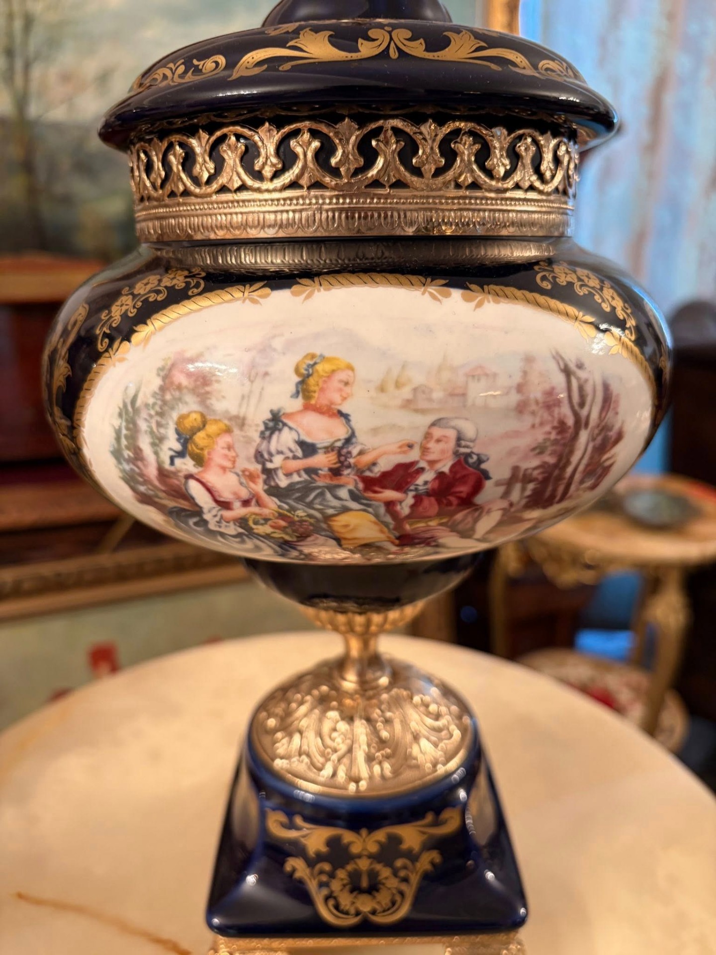 Bonbonieră Monumentală de Lux – Porțelan Cobalt, Bronz și Scenă Galantă