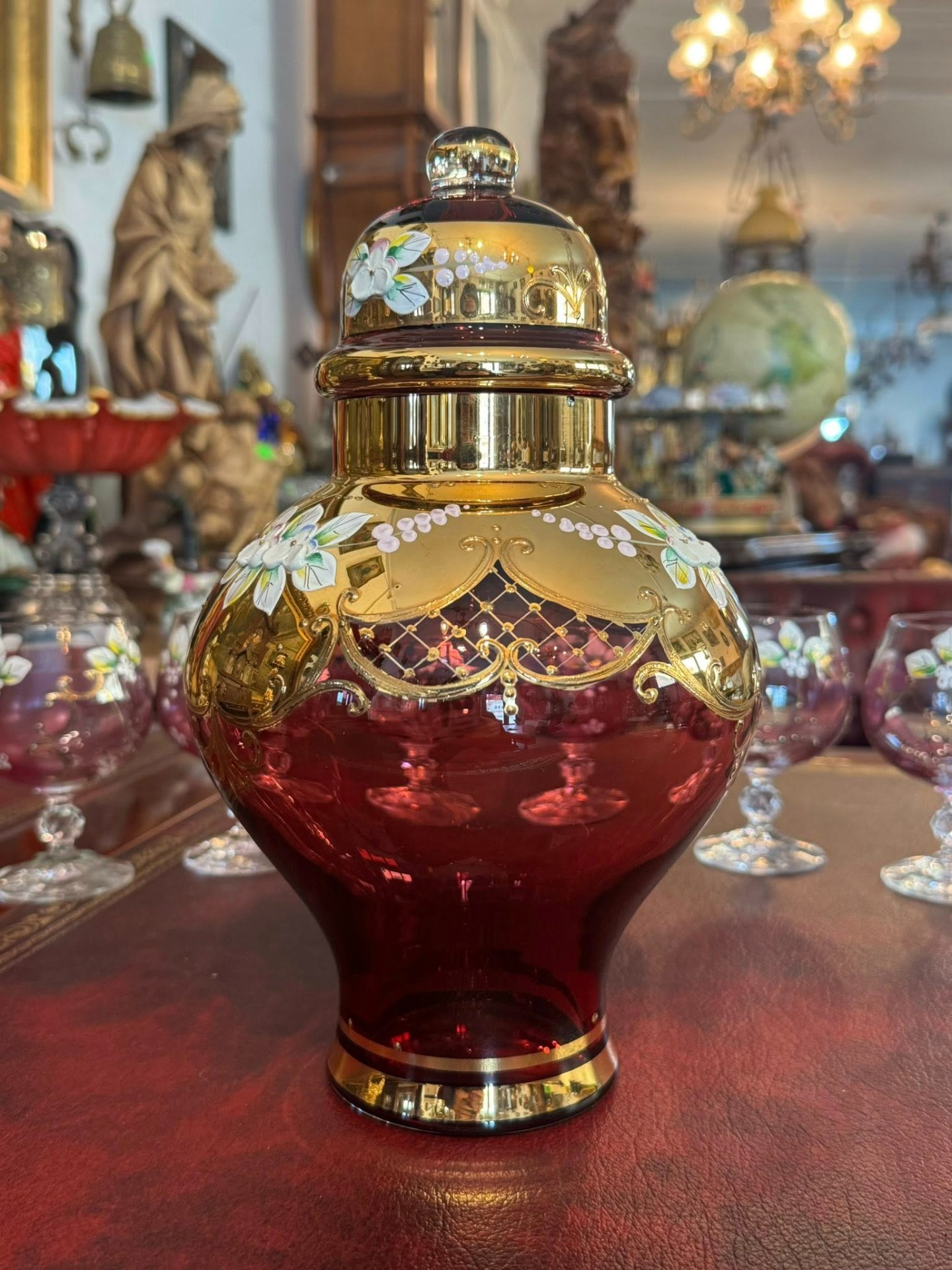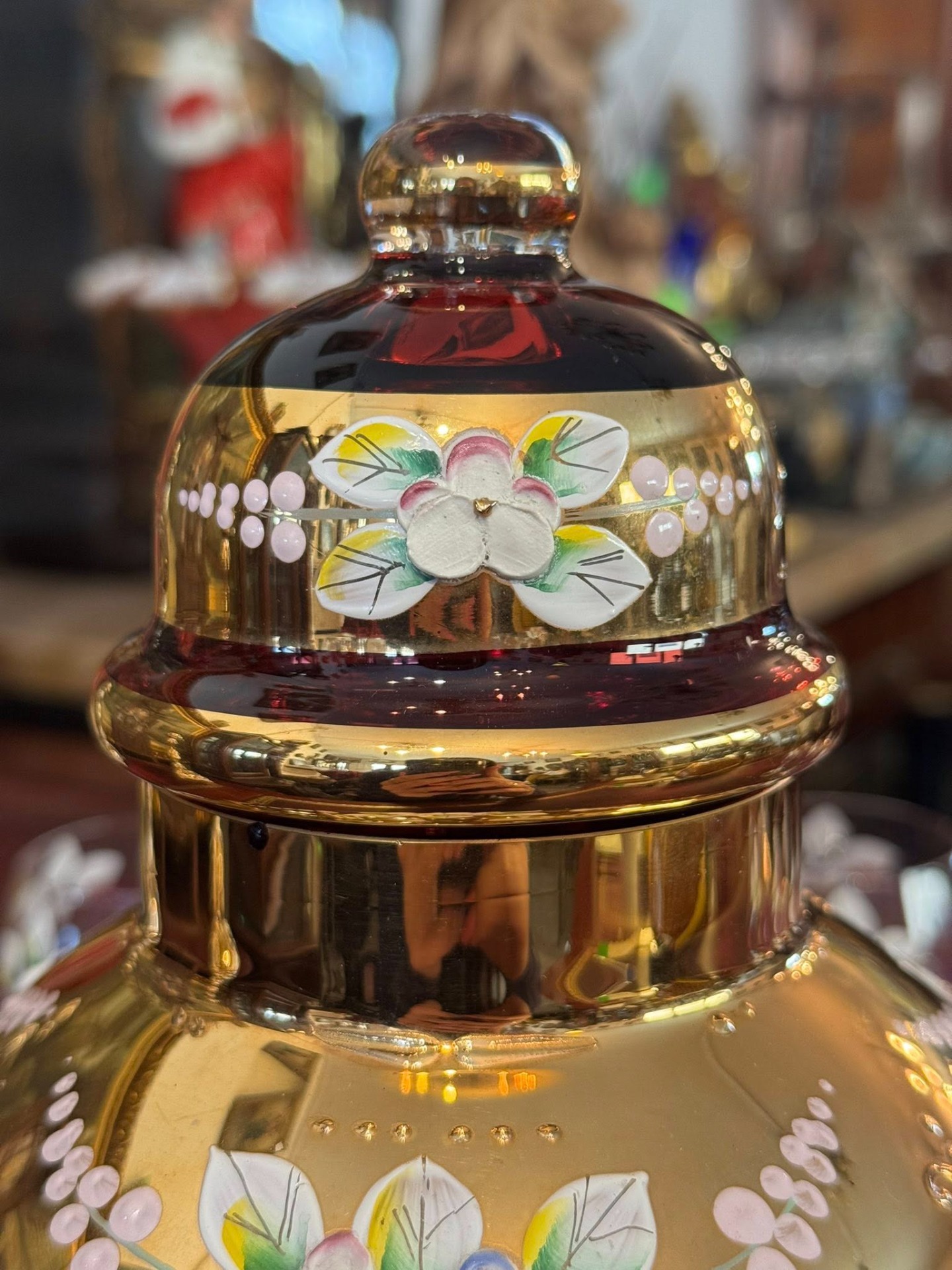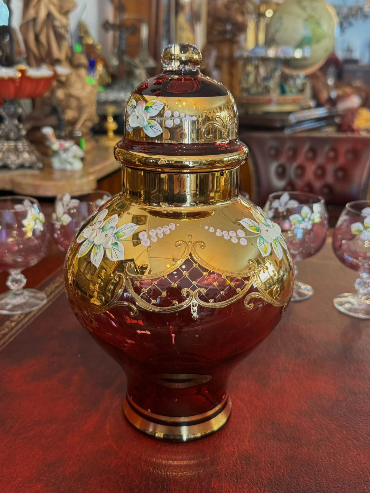 Borcan de bomboane (bonbonnière) sau un decantor decorativ din cristal de Boemia.