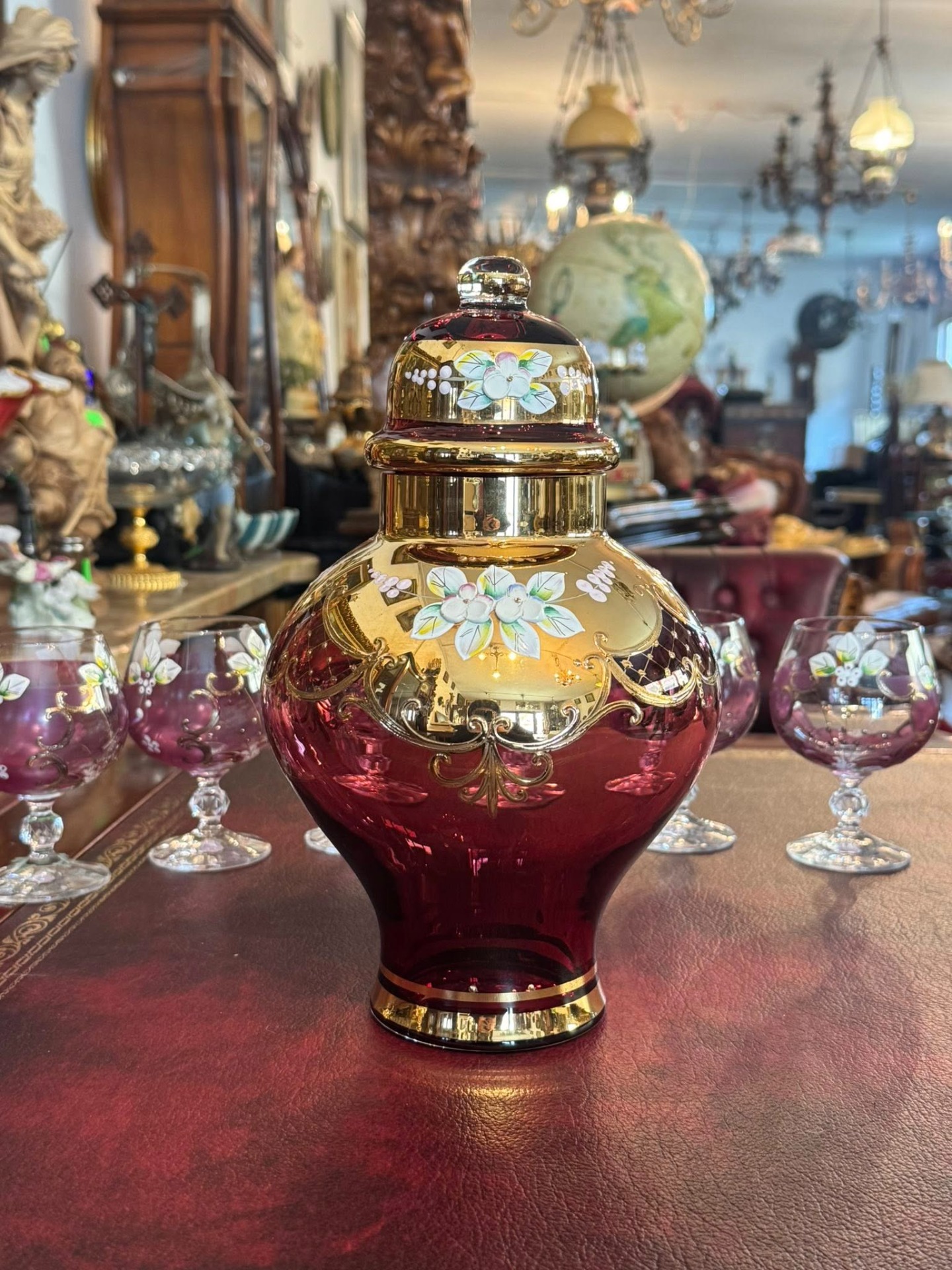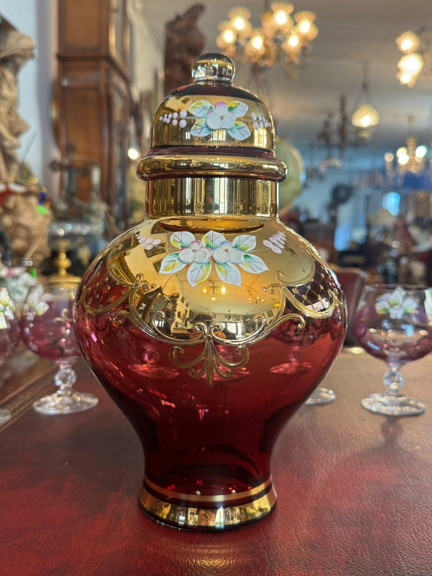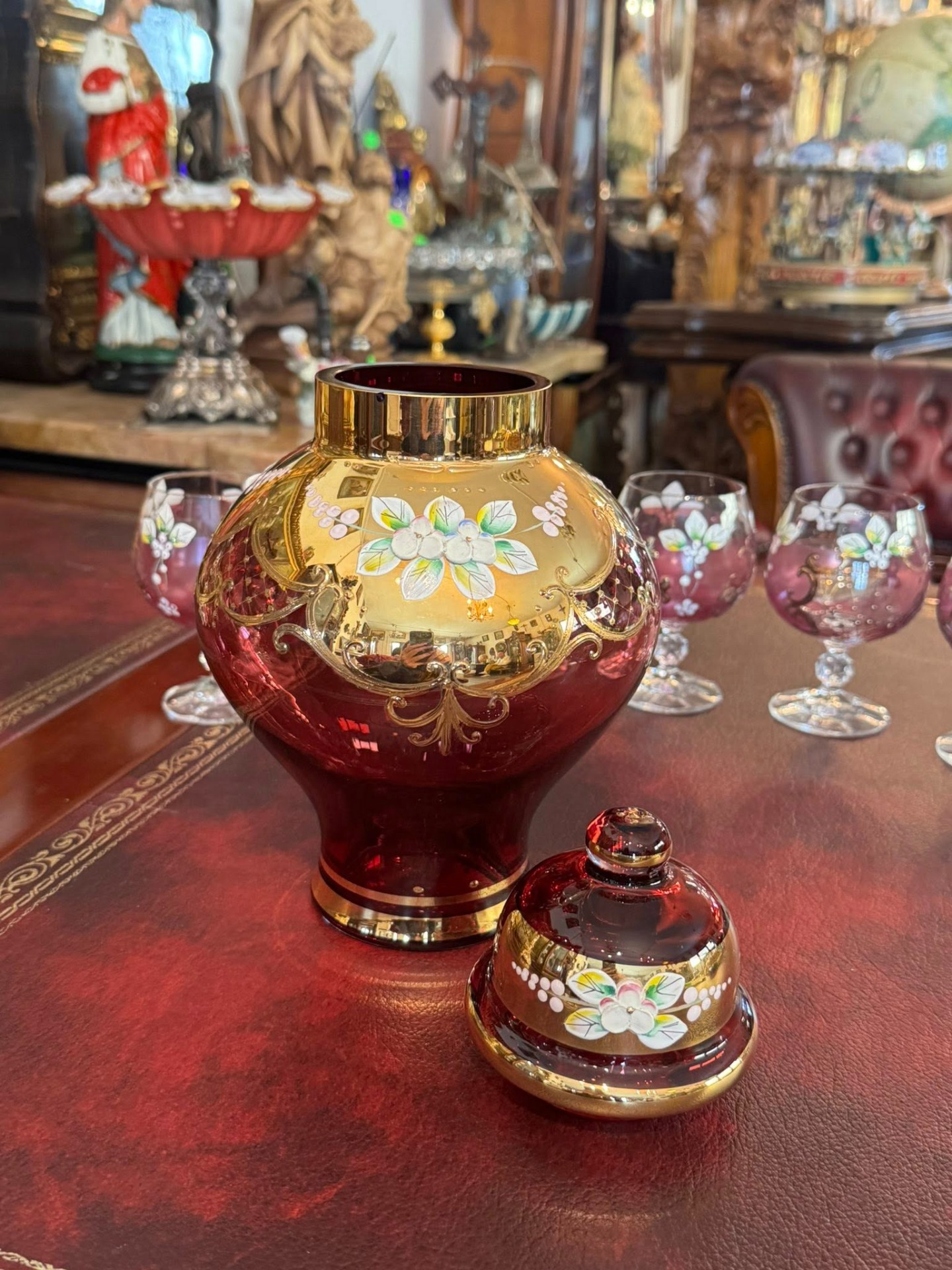 Borcan de bomboane (bonbonnière) sau un decantor decorativ din cristal de Boemia.