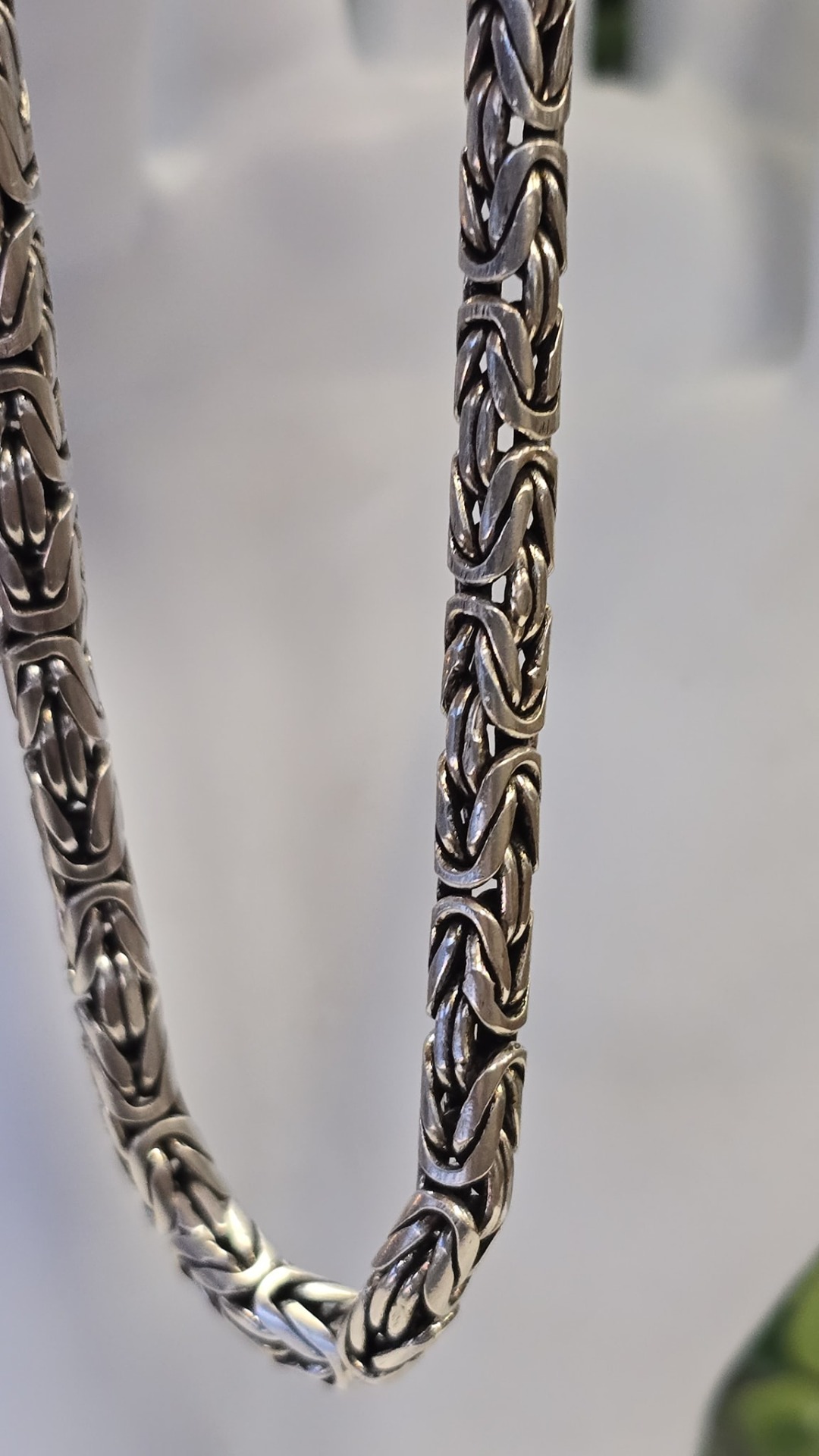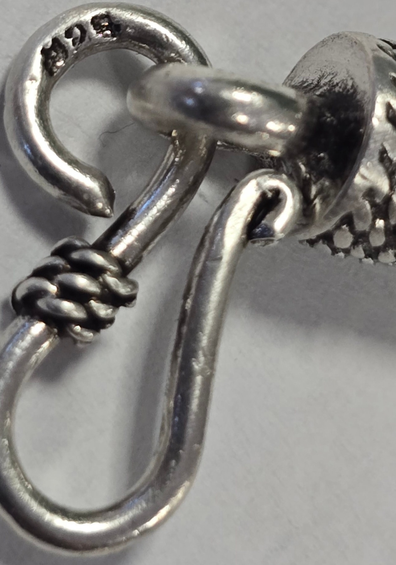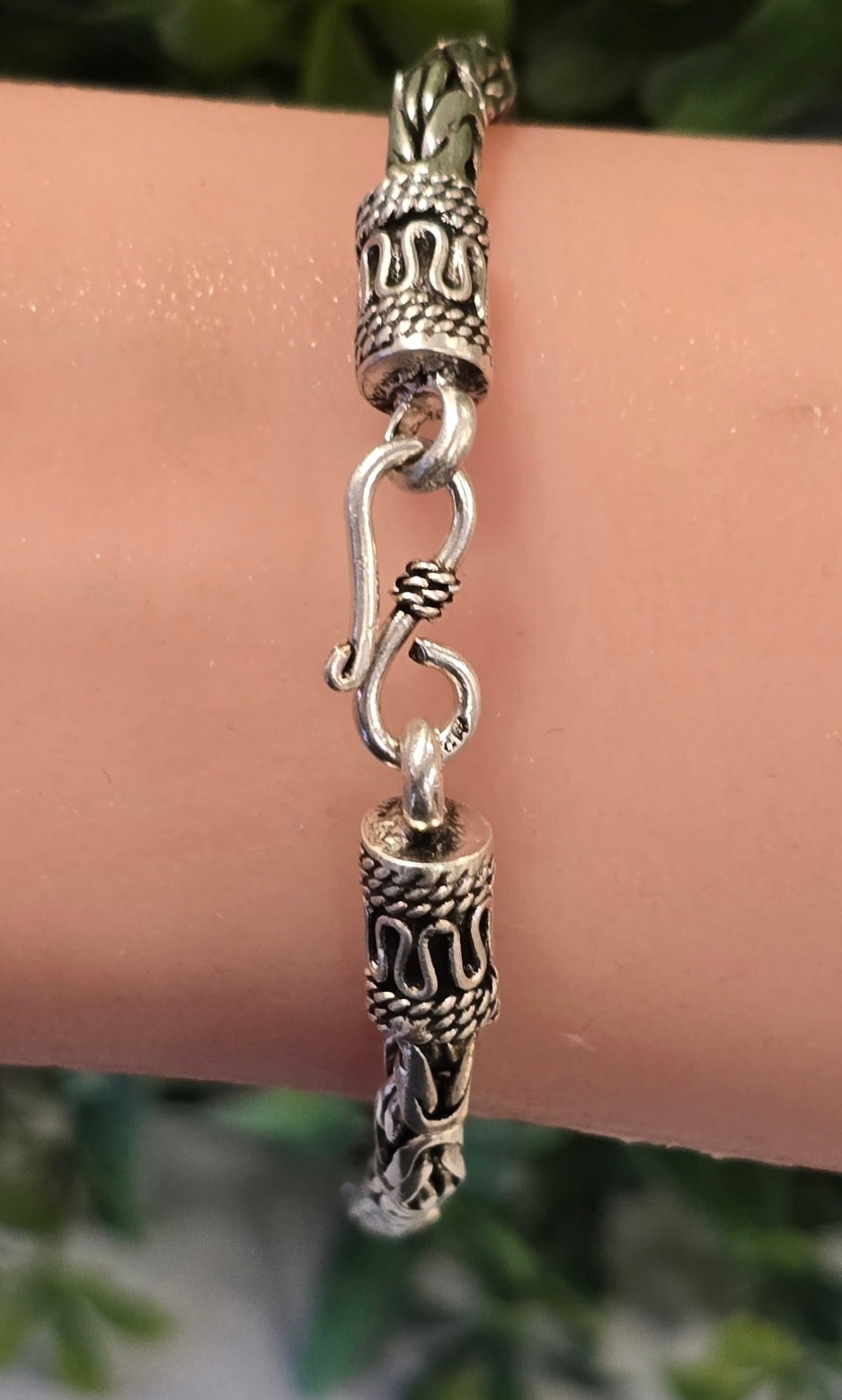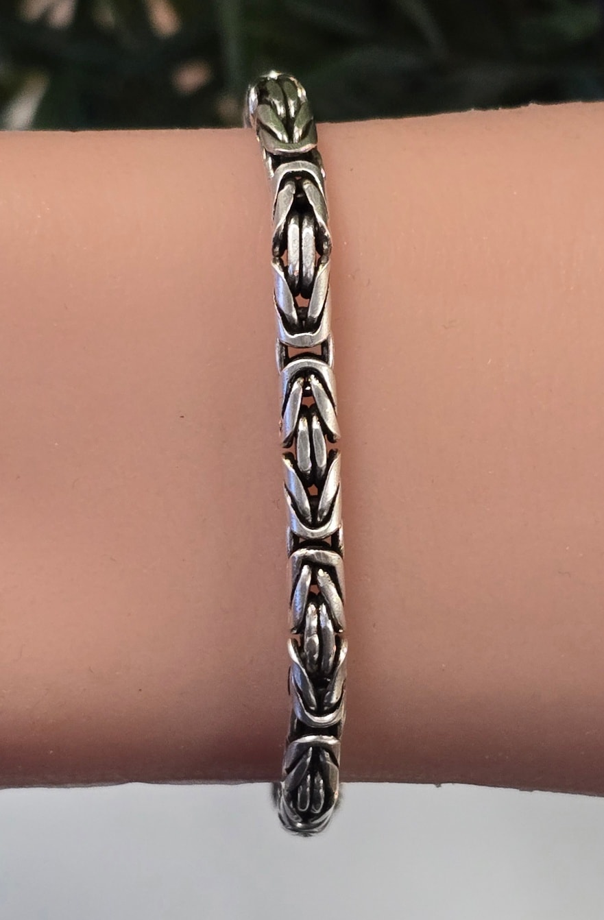 Brățară balineză veche, din argint, cu împletitură în stil bizantin, cunoscută și ca "bird's cage" (colivie de pasăre), cu structură tridimensională asemănătoare
