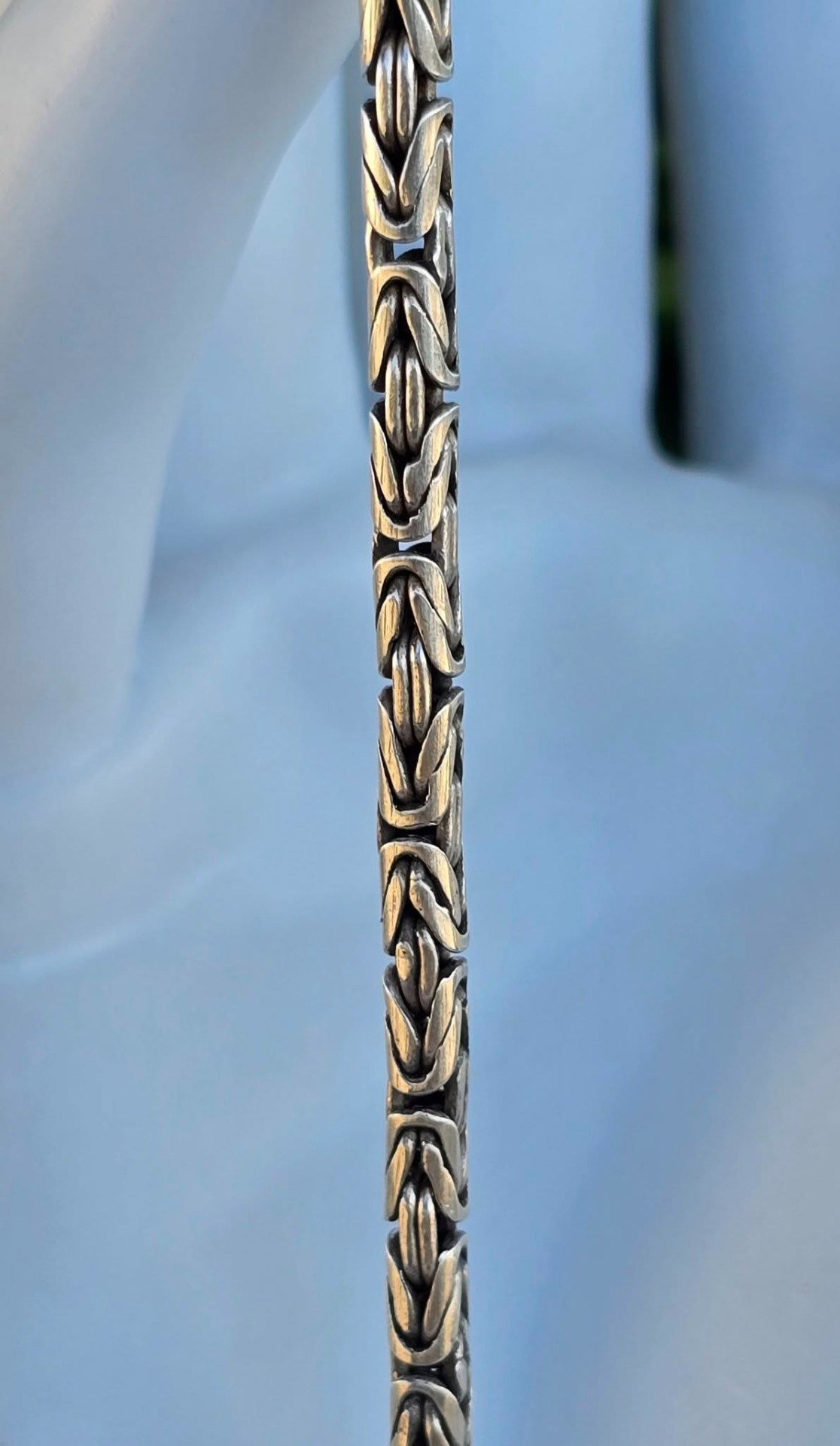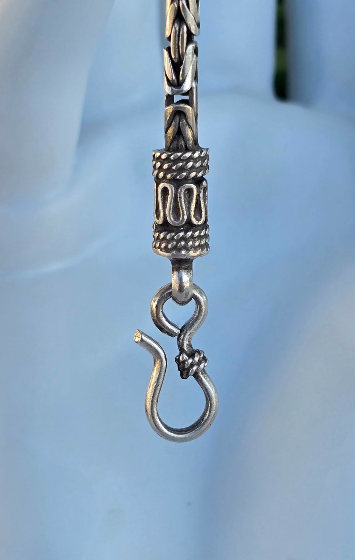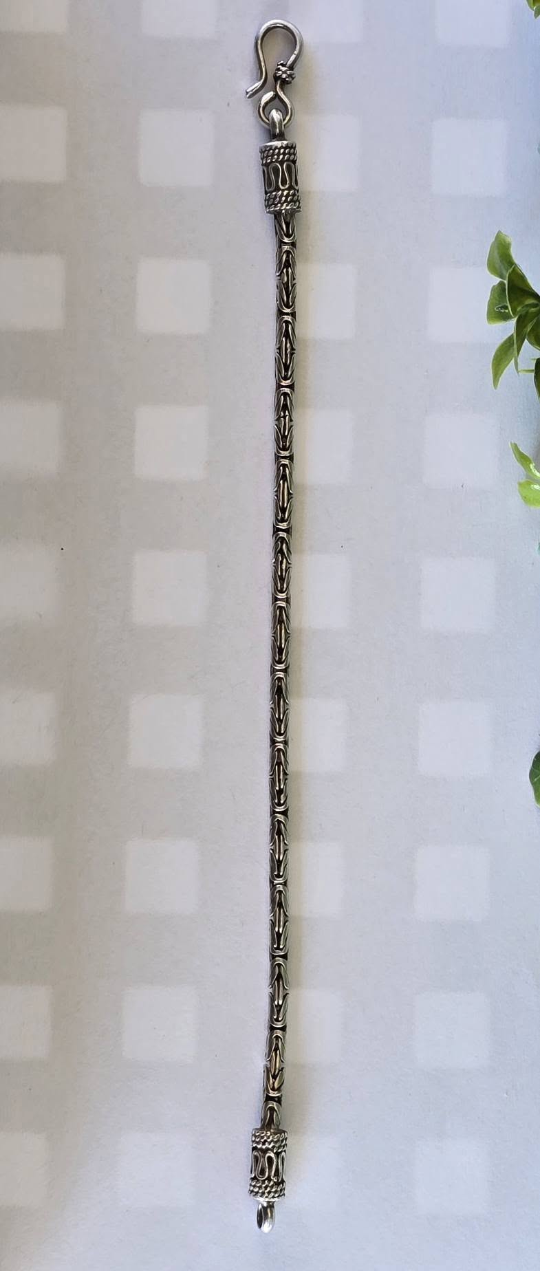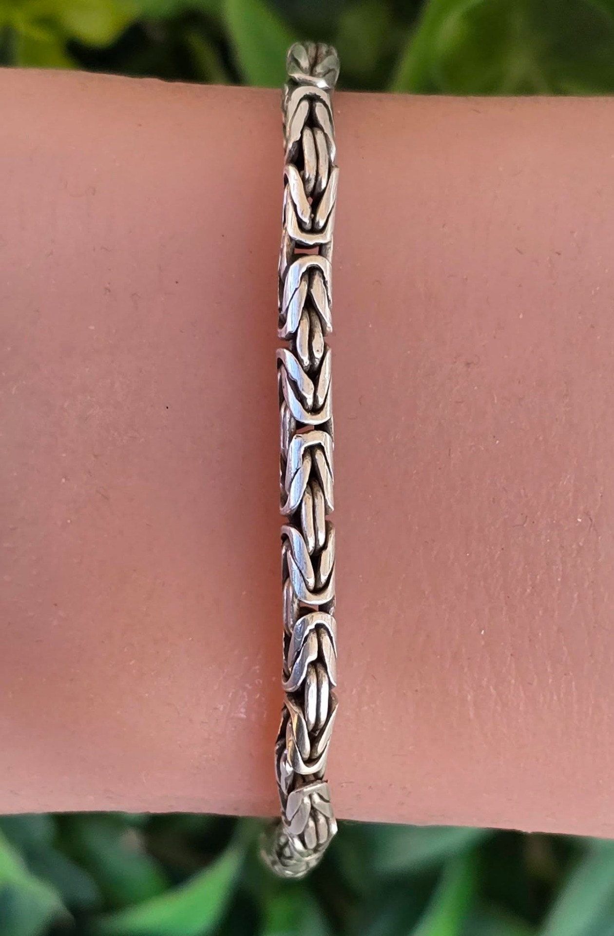Brățară balineză veche, din argint, cu împletitură în stil bizantin, cunoscută și ca "bird's cage" (colivie de pasăre), cu structură tridimensională asemănătoare unei frânghii (anii 1980-1990, Bali, Indonezia).