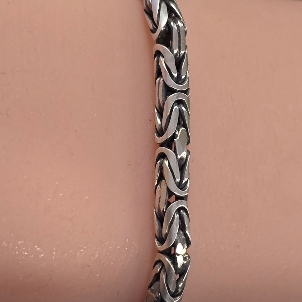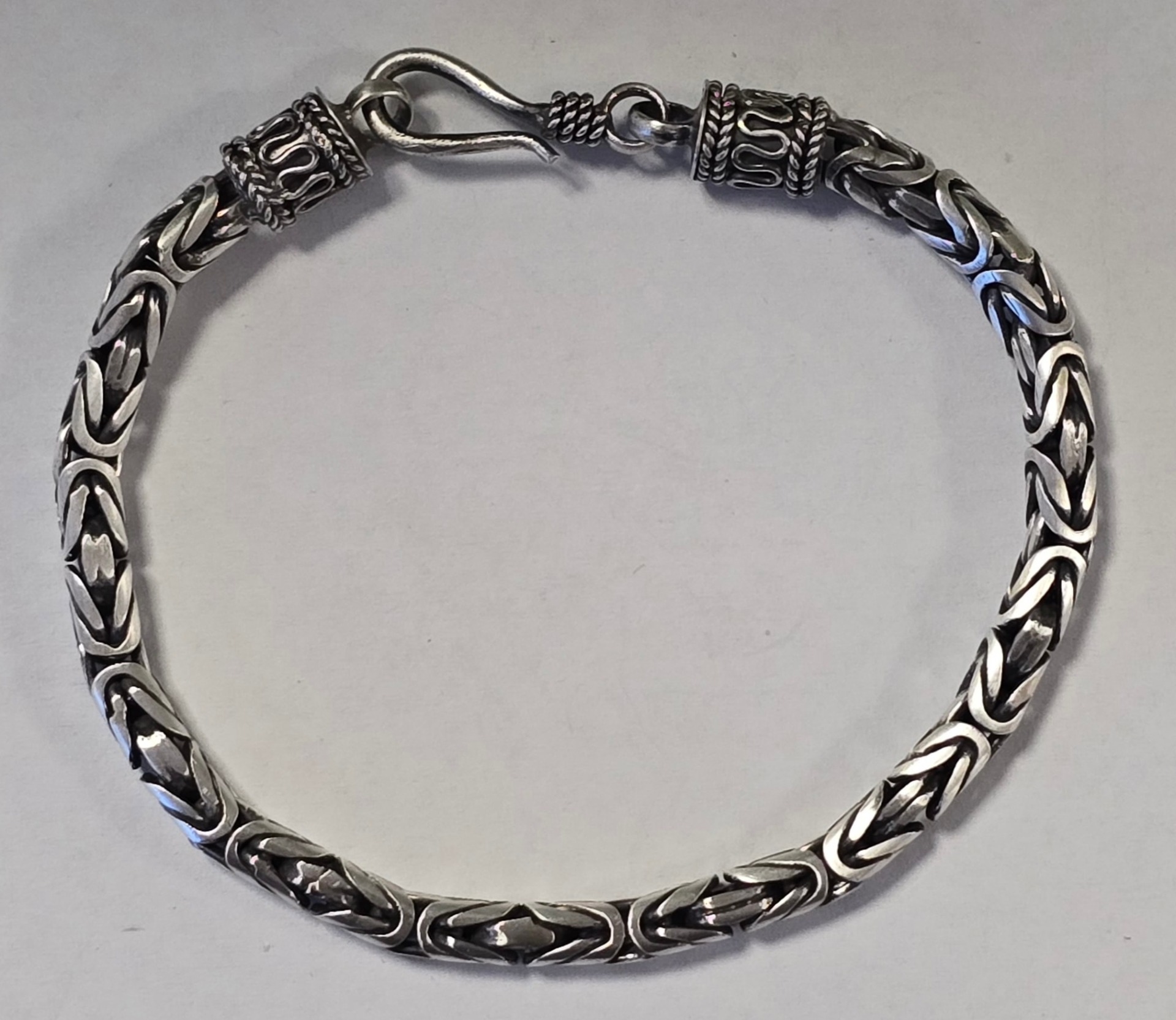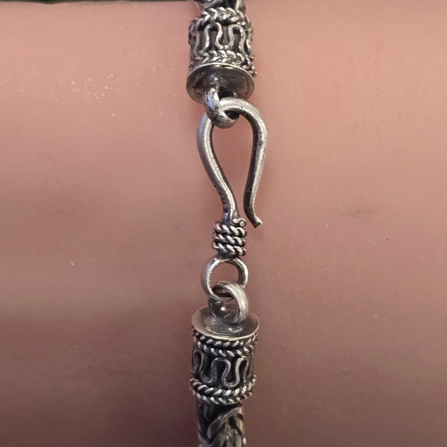 Brățară balineză veche, din argint, cu împletitură în stil bizantin, cunoscută și ca "bird's cage" (colivie de pasăre), cu structură tridimensională asemănătoare