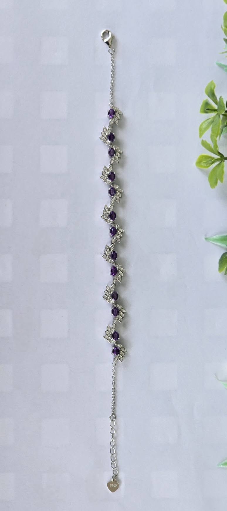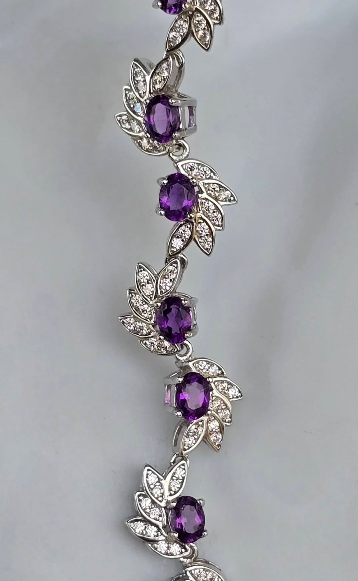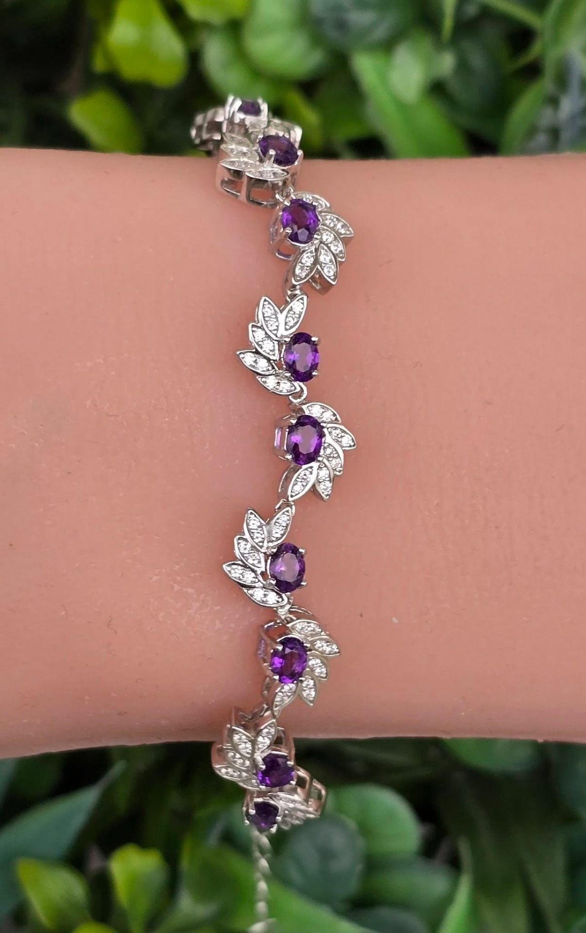 Brățară contemporană din argint platinat, cu ametiste naturale și pietre cubic zirconia.