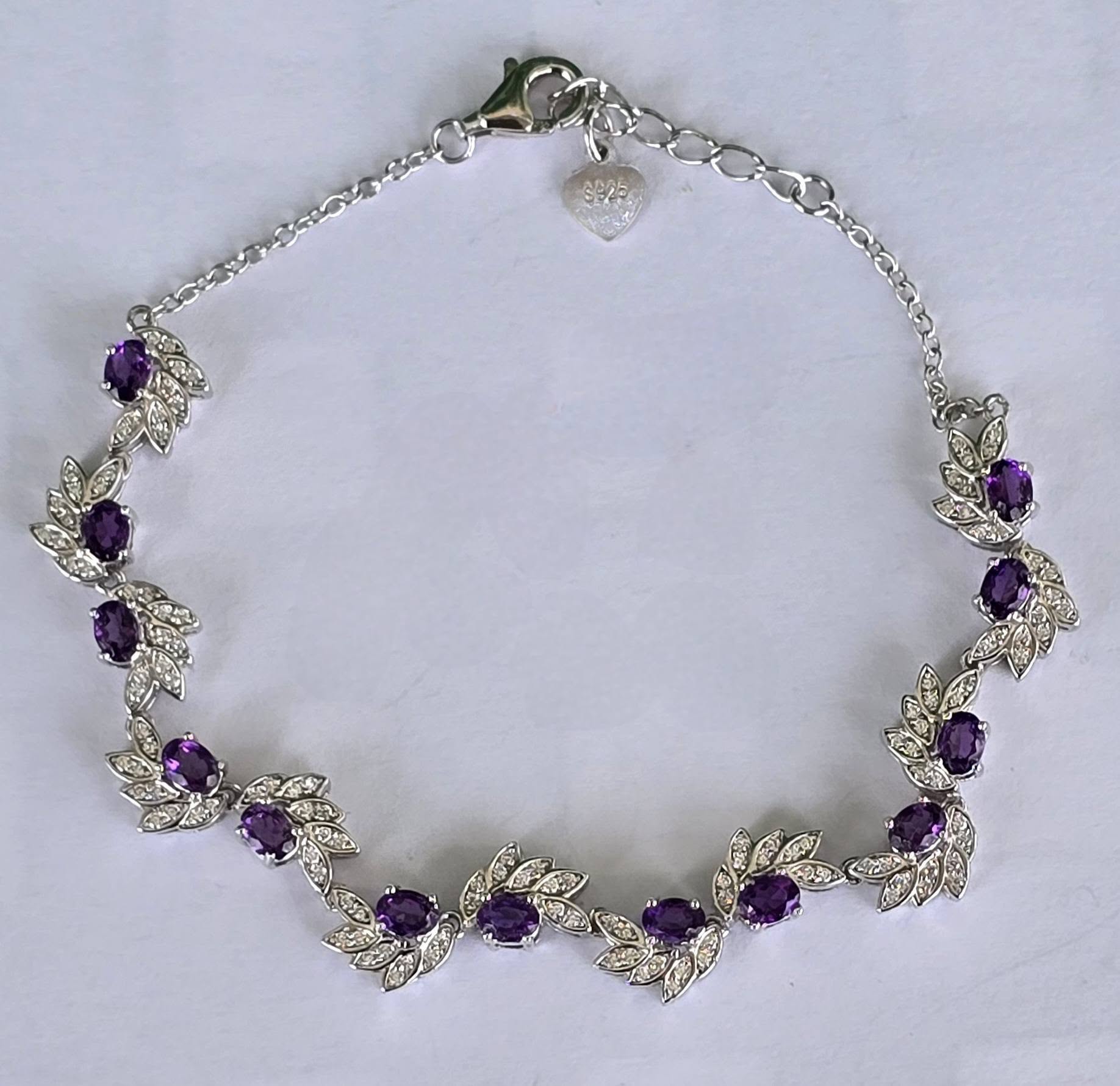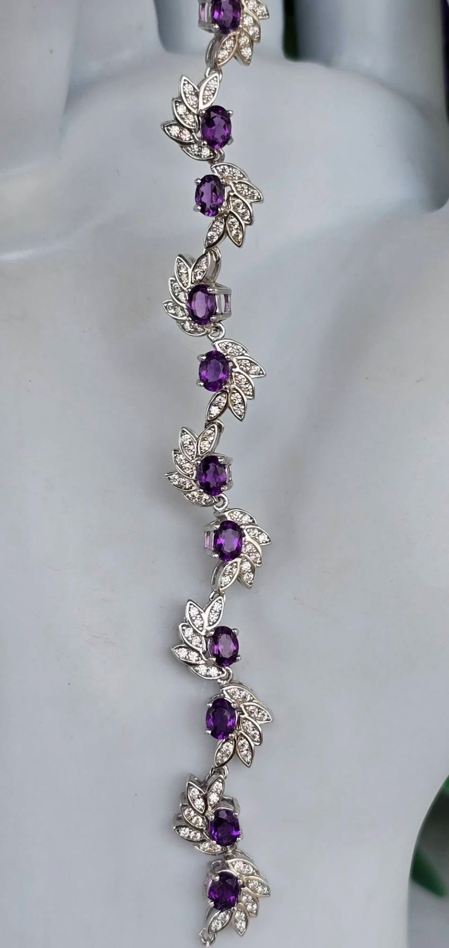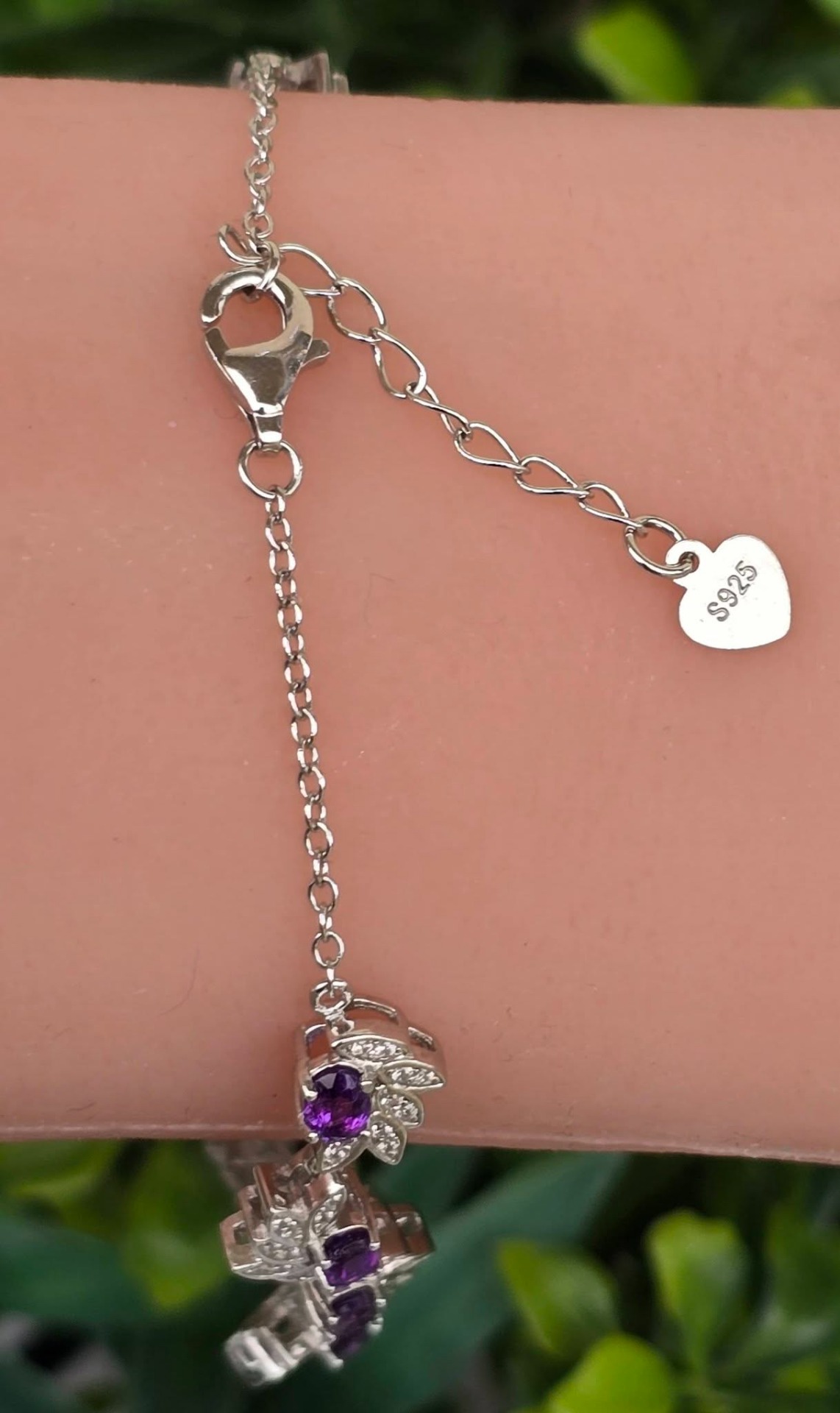 Brățară contemporană din argint platinat, cu ametiste naturale și pietre cubic zirconia.
