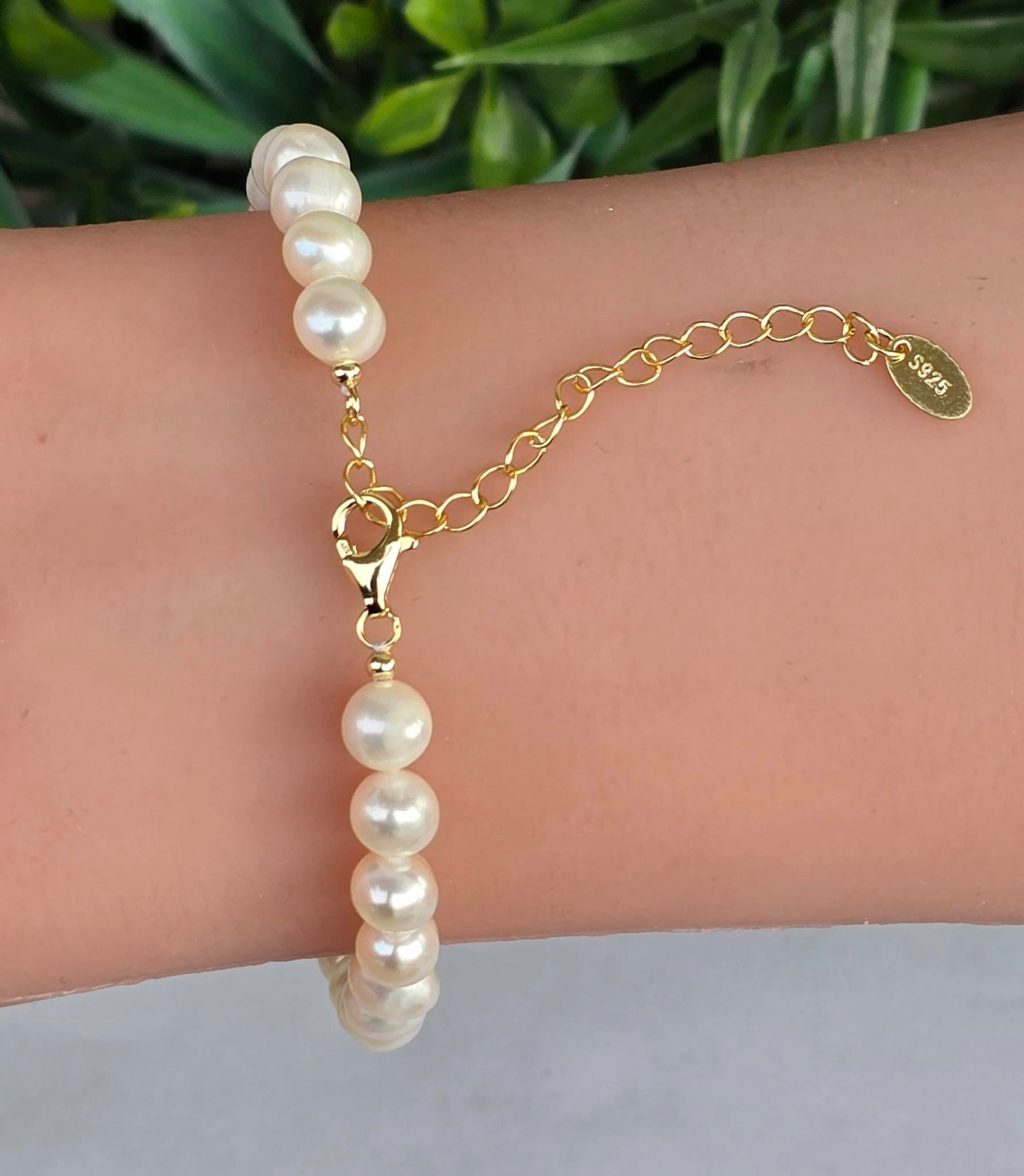 Brățară contemporană superbă, din argint aurit și perle naturale de cultură.