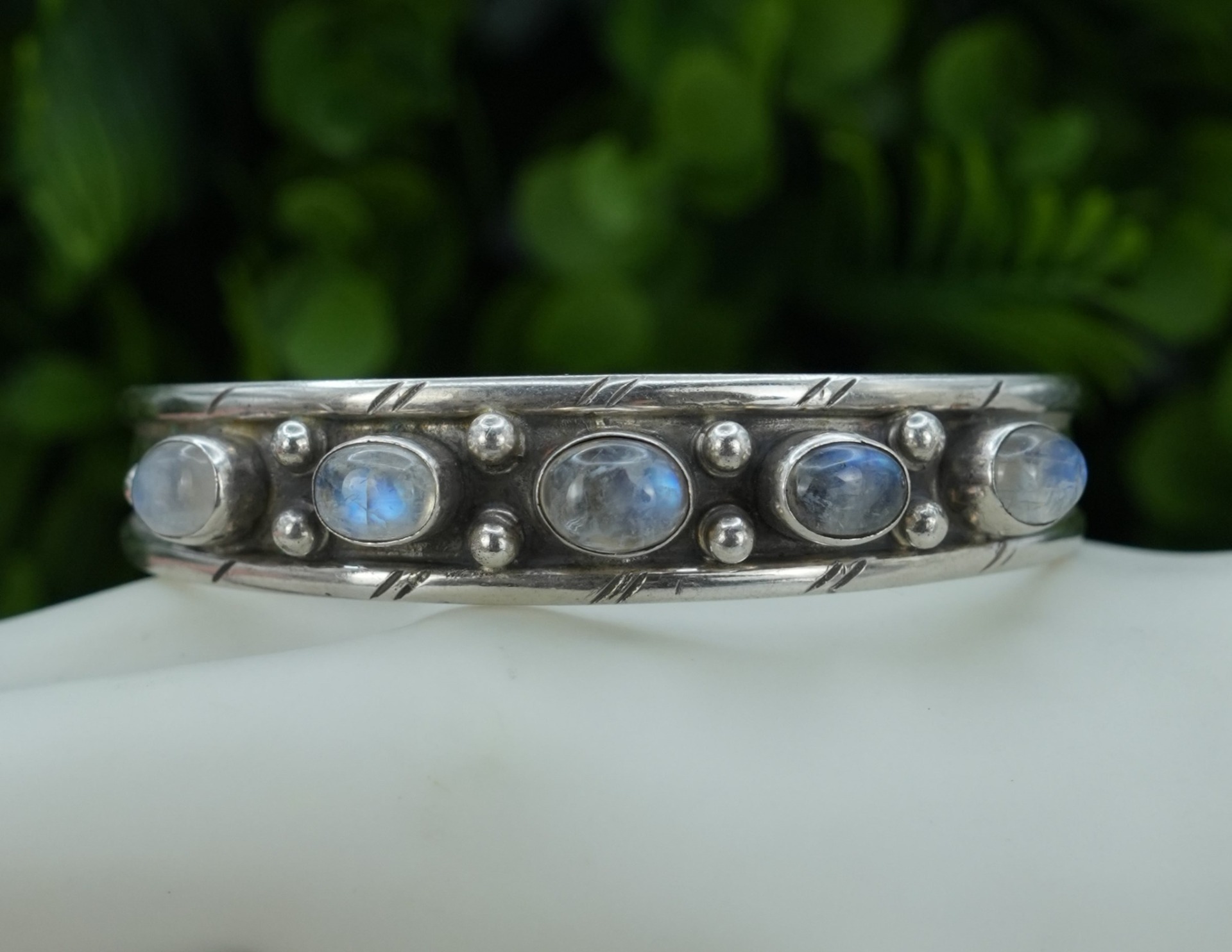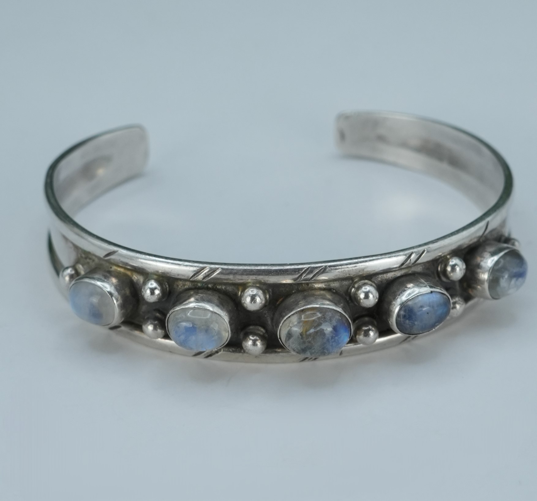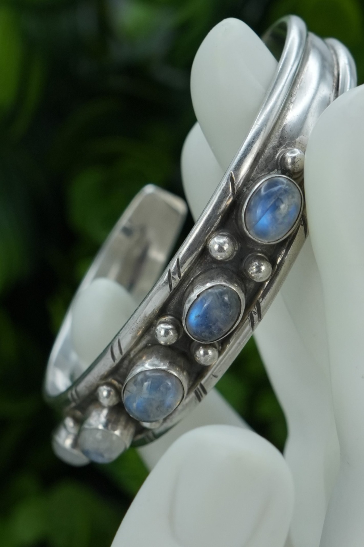 Brățară "cuff" veche, din argint, cu piatra lunii naturală.