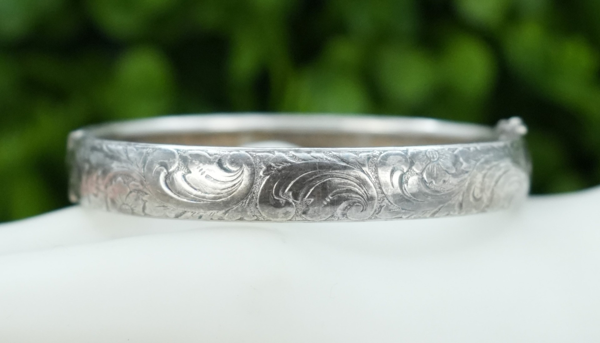 Brățară "cuff" veche, din argint, manufactură deosebită.