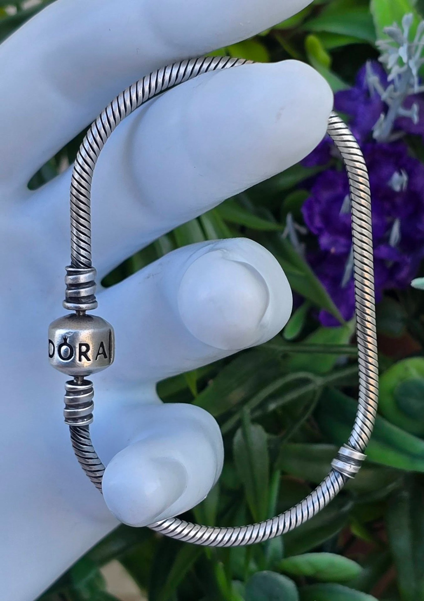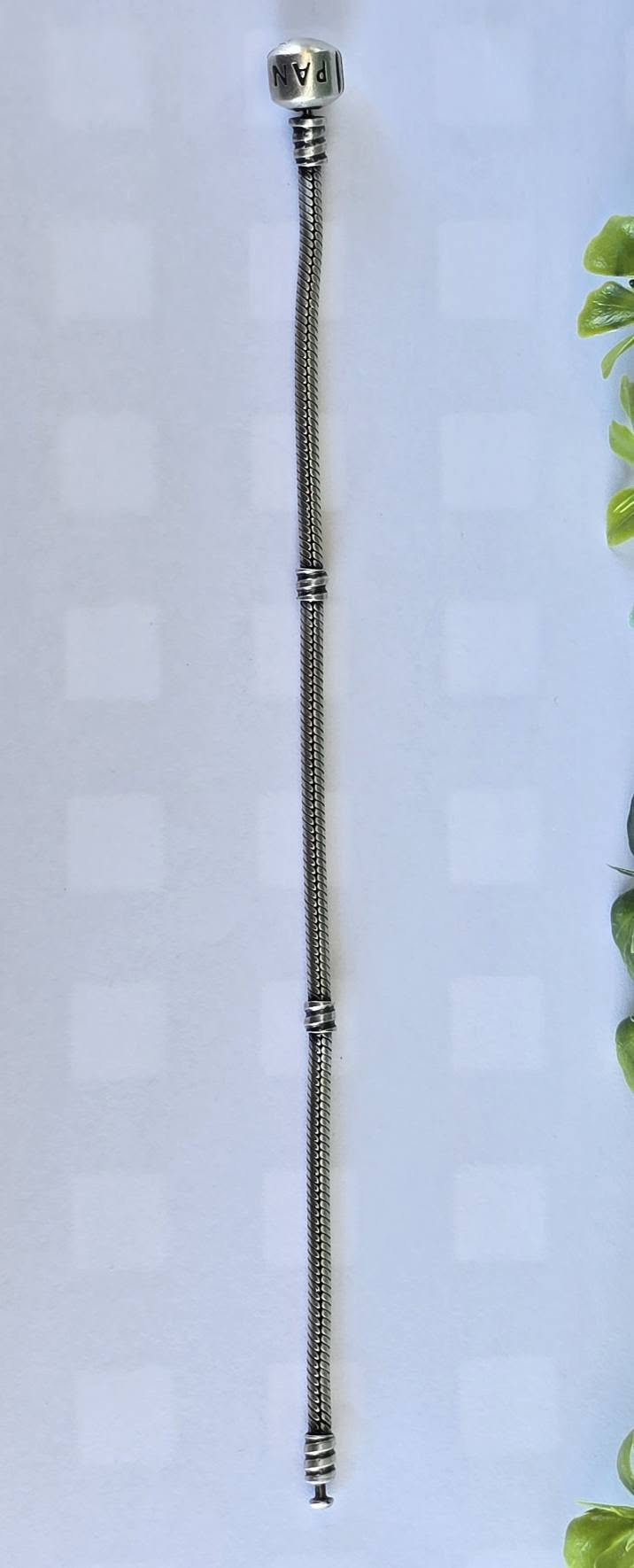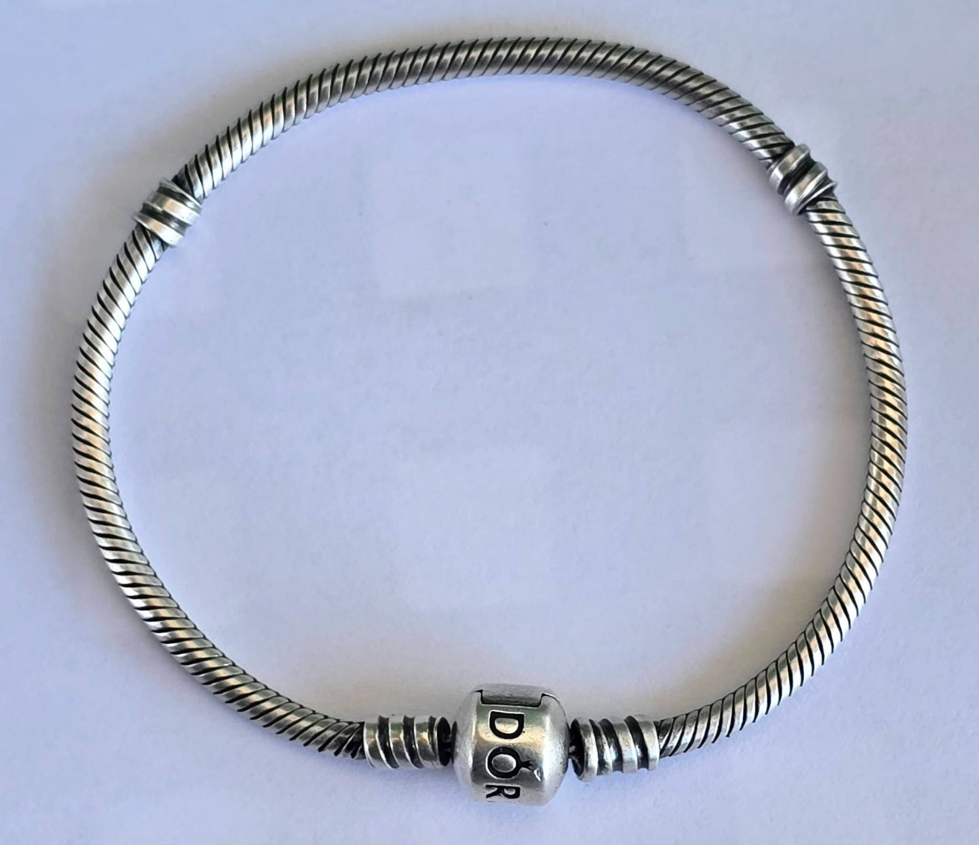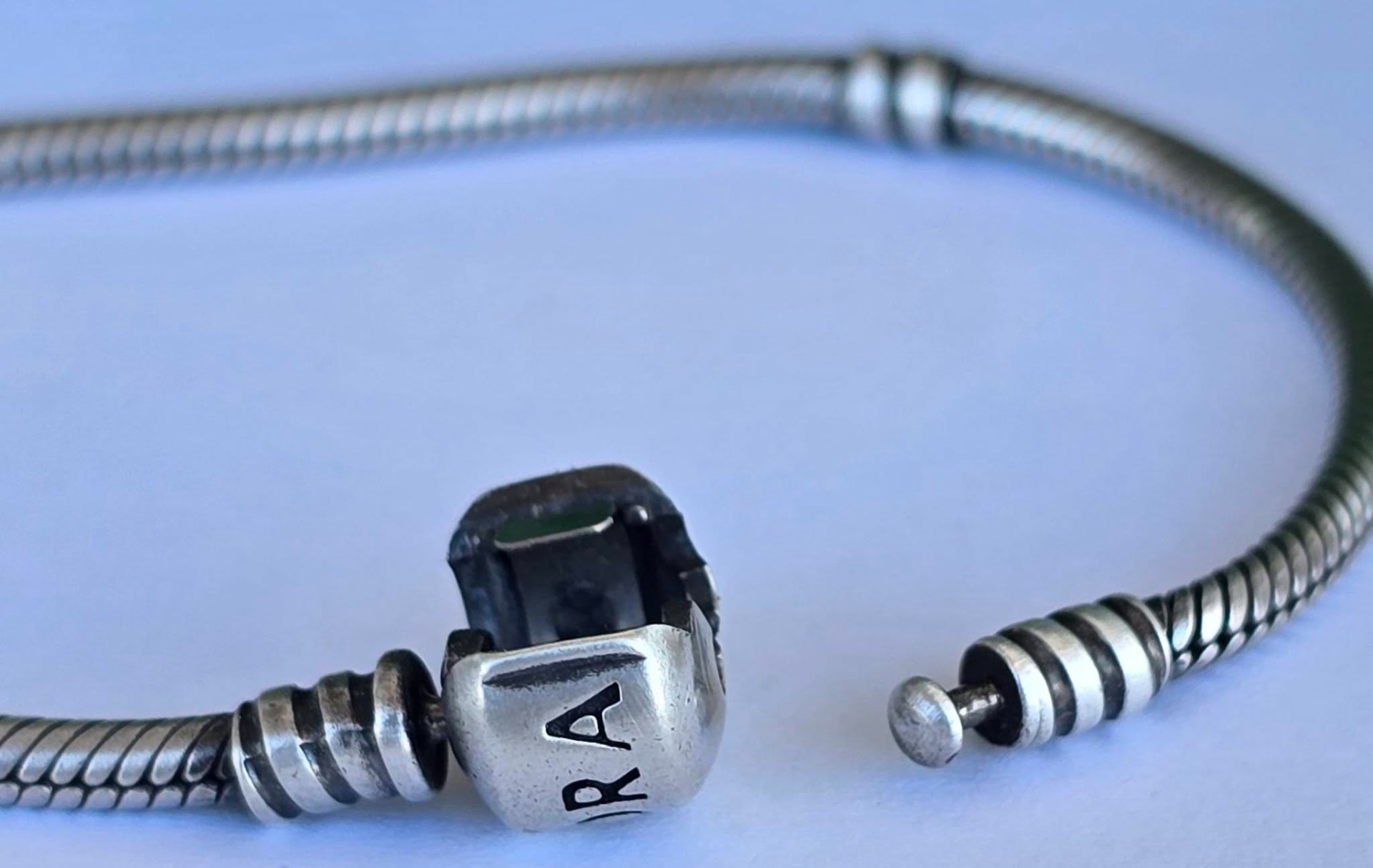 Brățară Pandora originală, din argint, cu lanț tip șarpe și închizătoare rotundă.