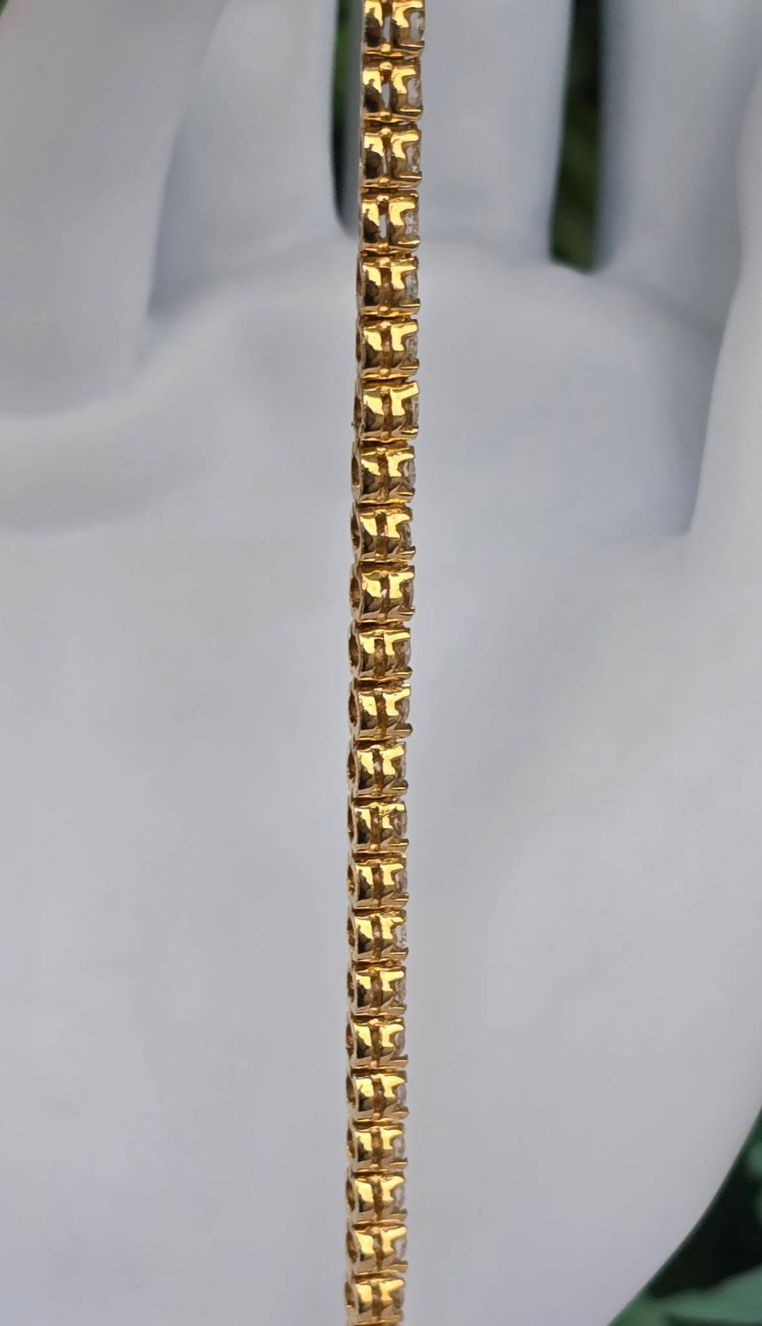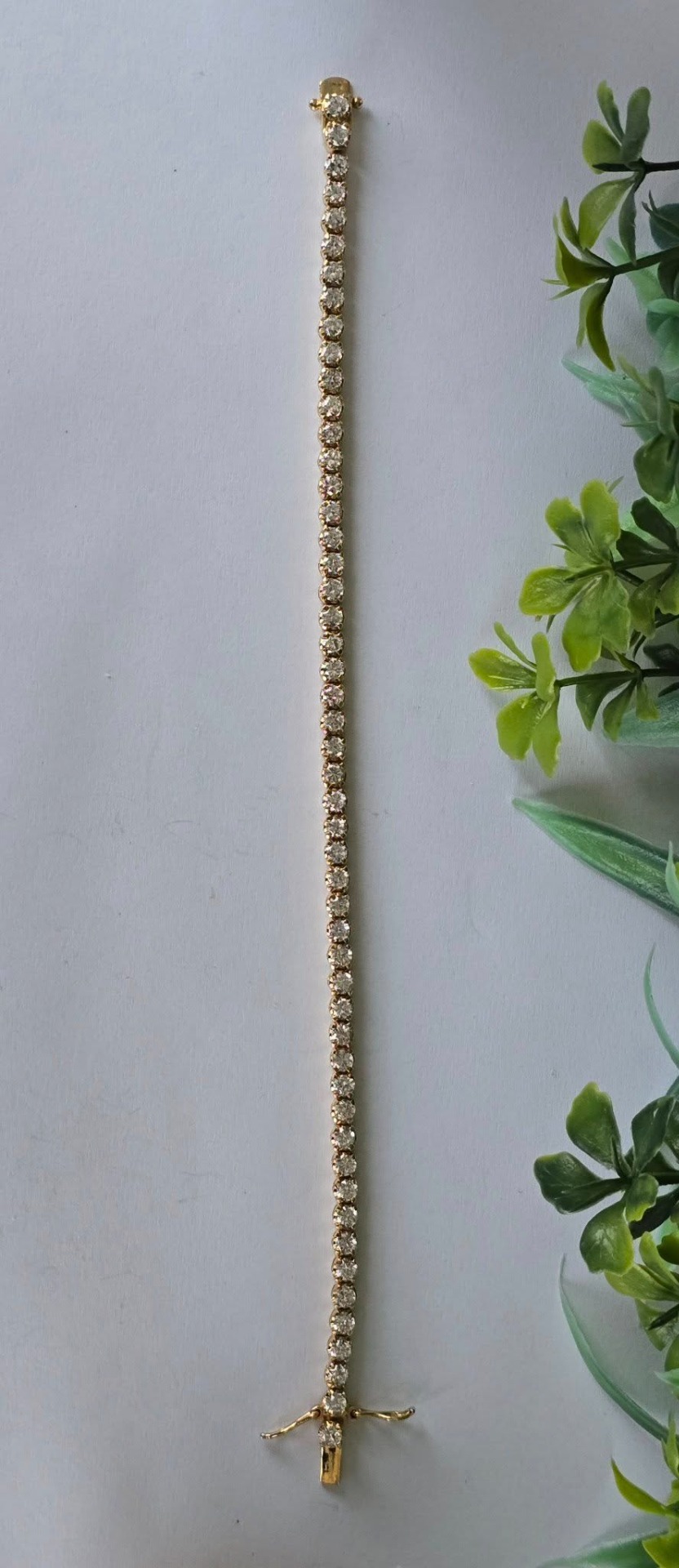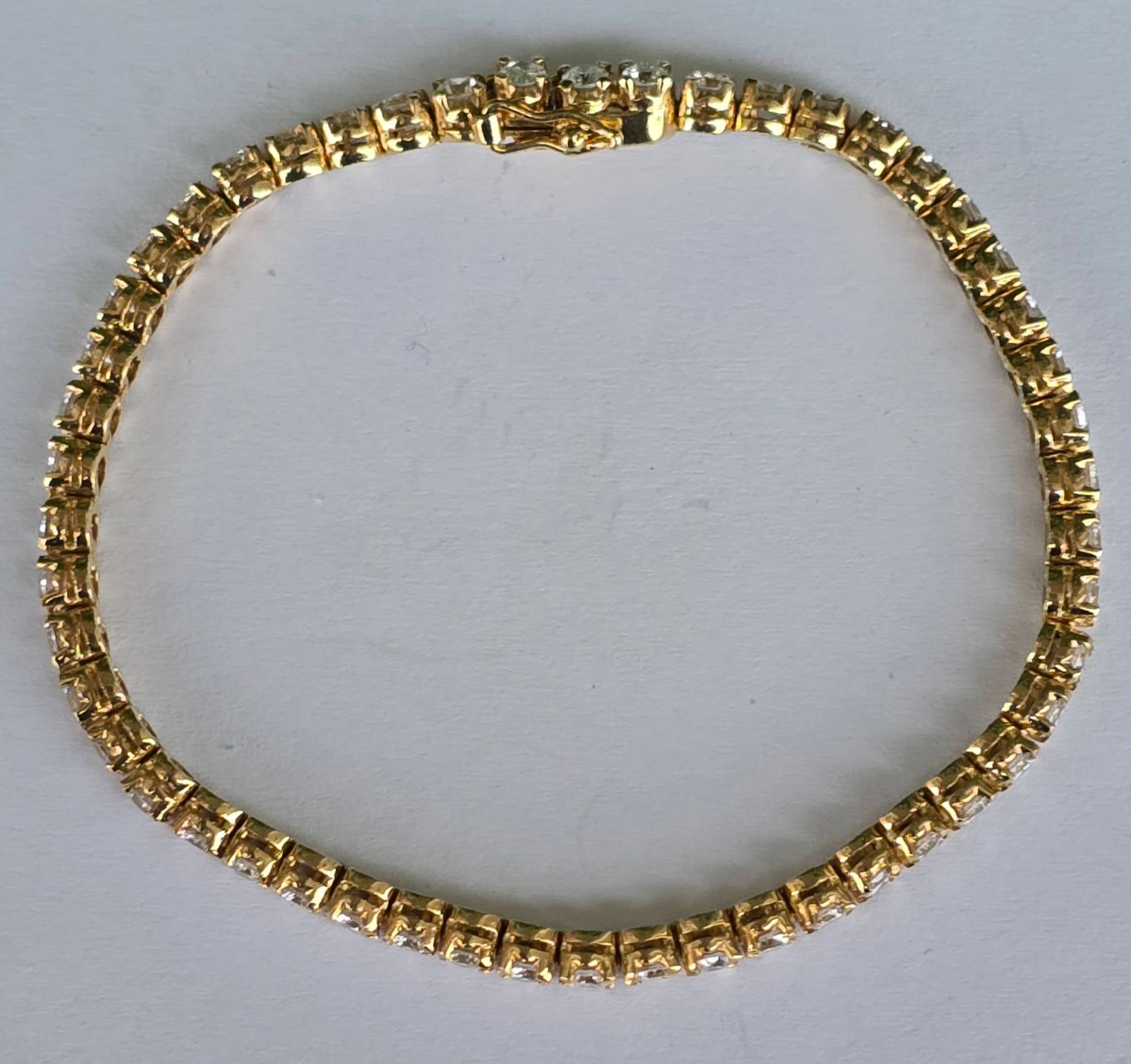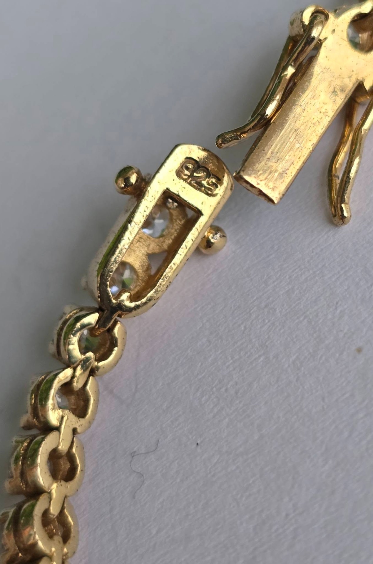 Brățară tennis veche, din argint aurit, cu pietre cubic zirconia.