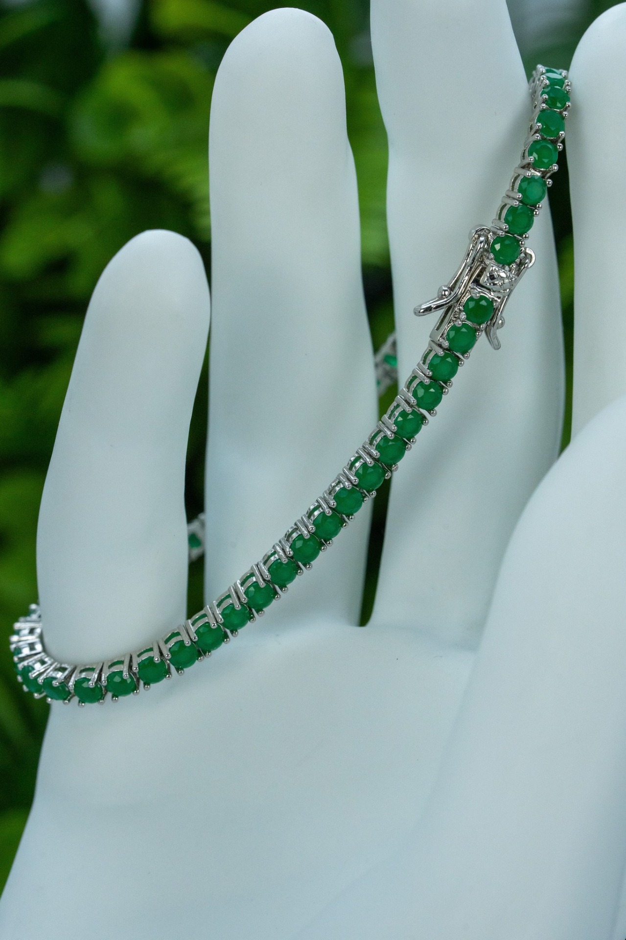 Brățară tennis veche din argint, cu calcedonii naturale.