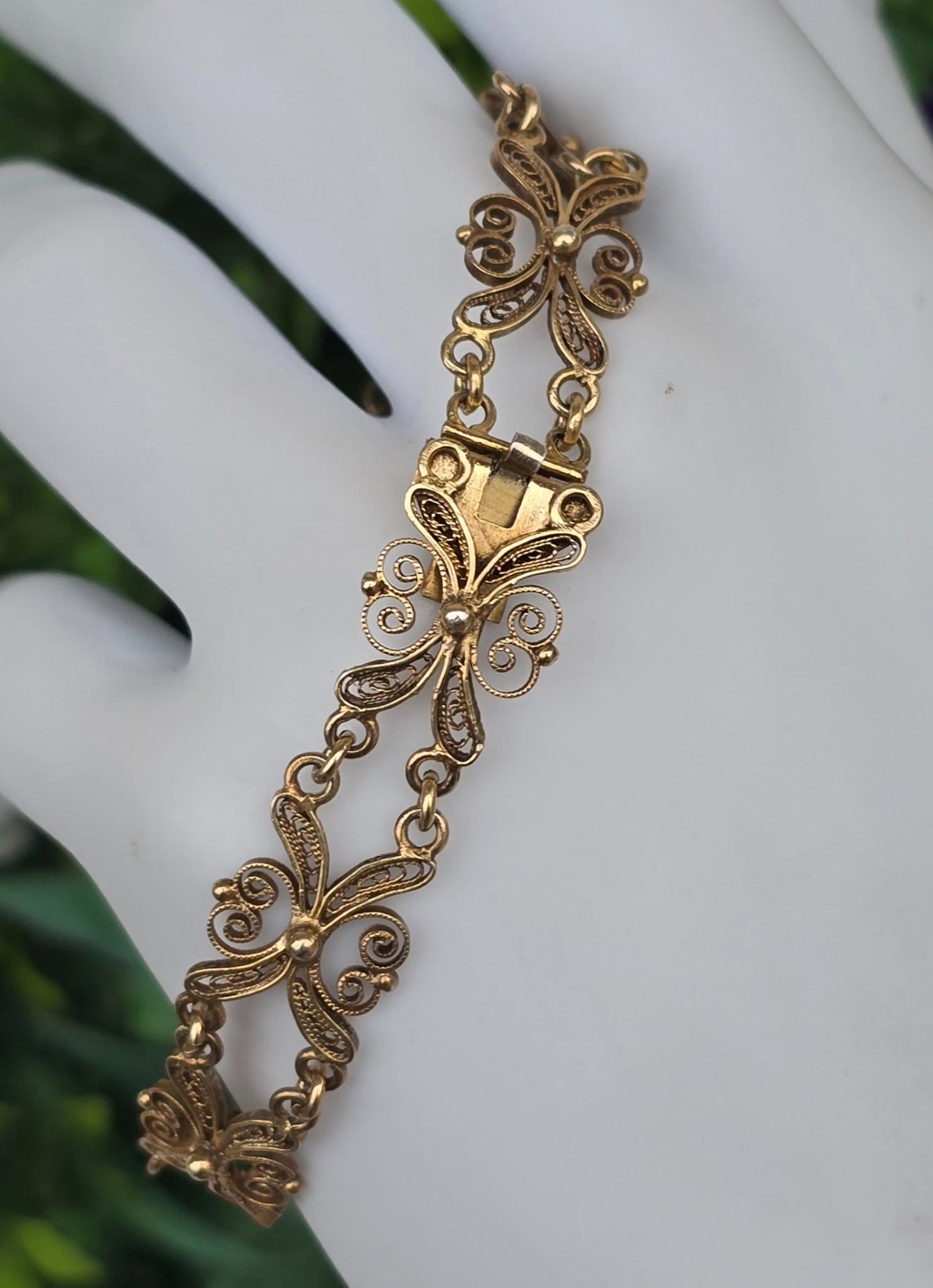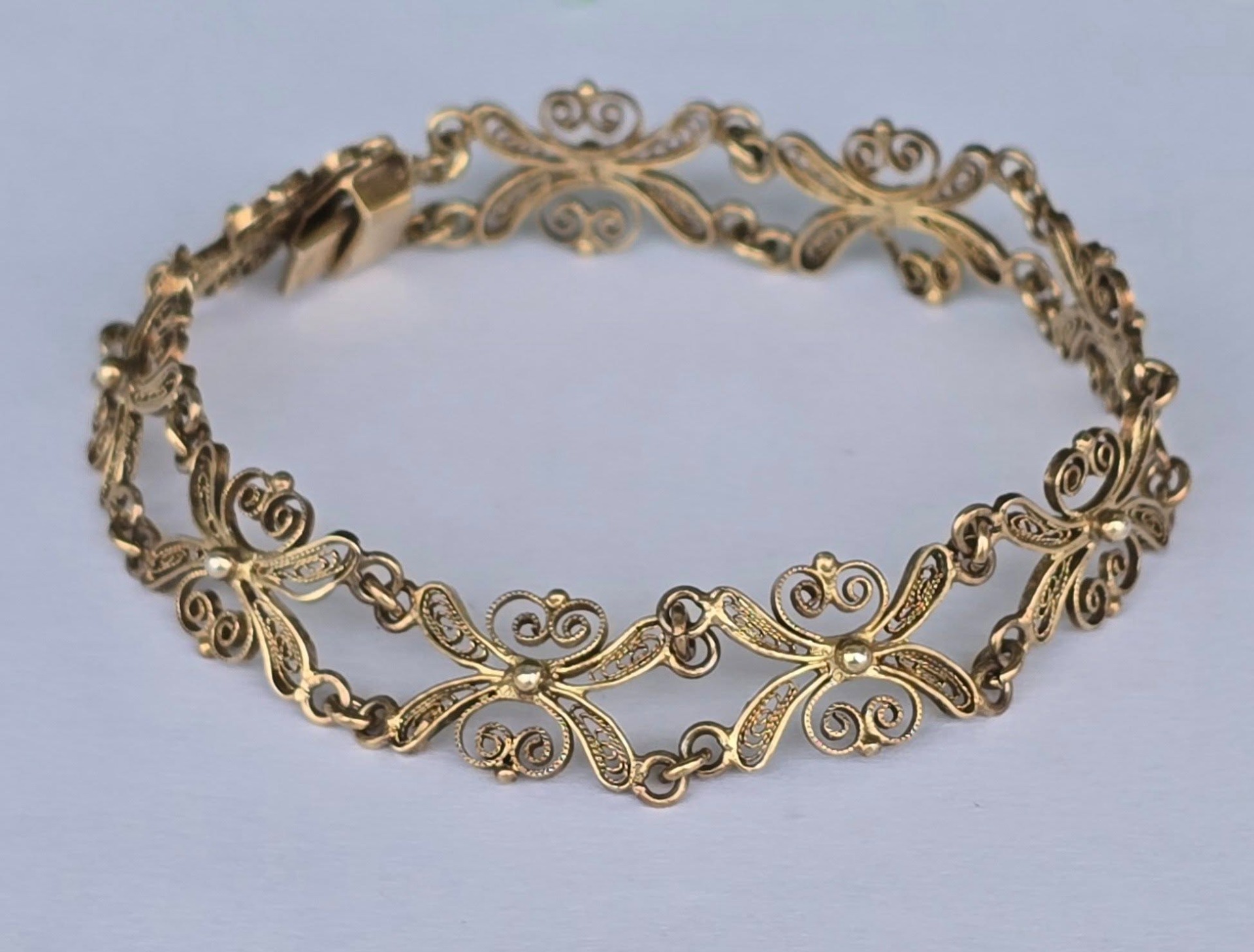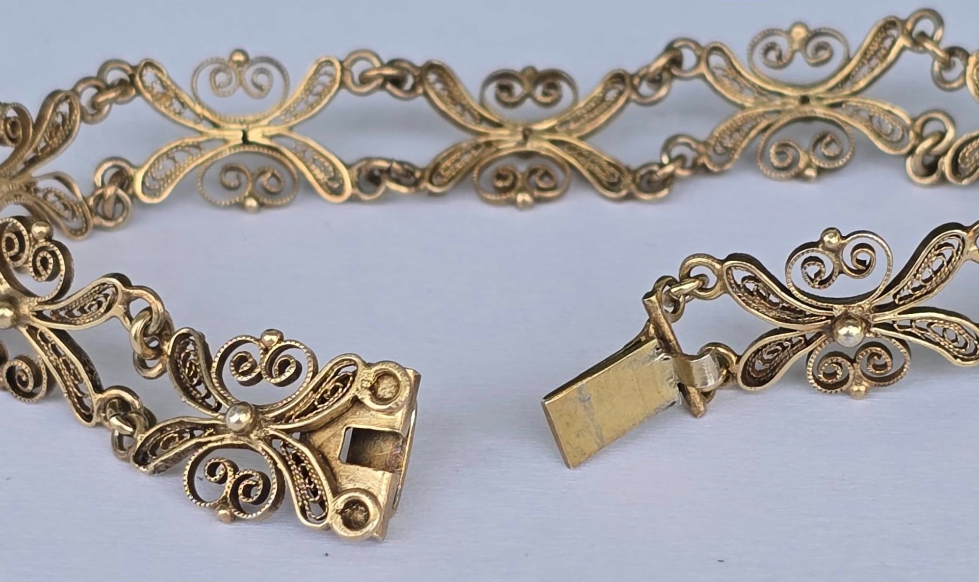 Brățară veche delicată, din argint aurit, manufactură excepțională în filigran.
