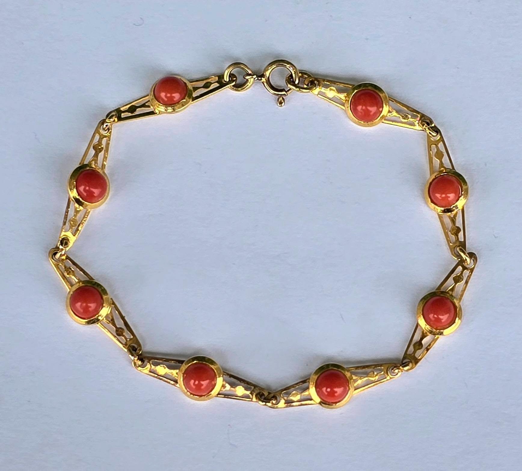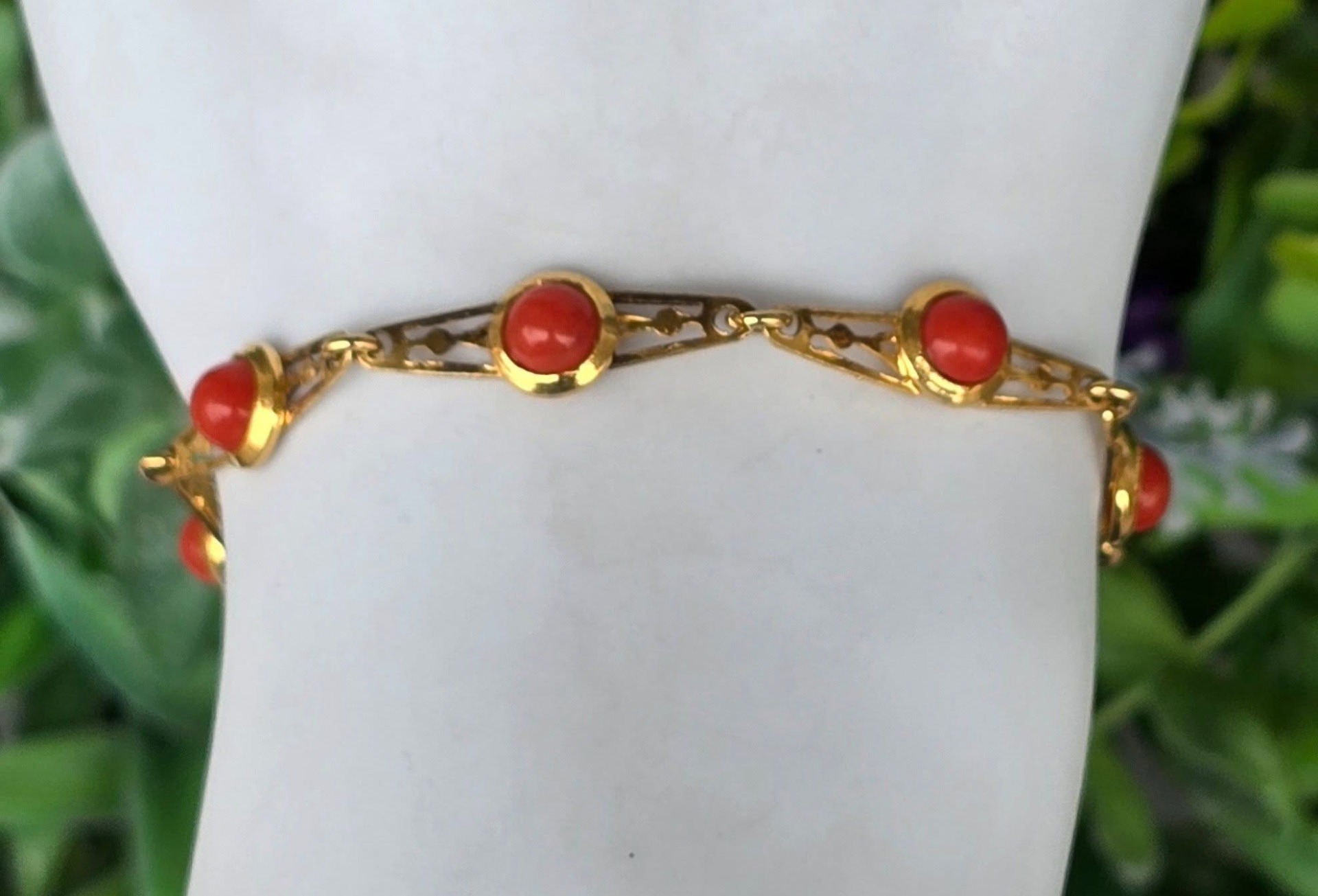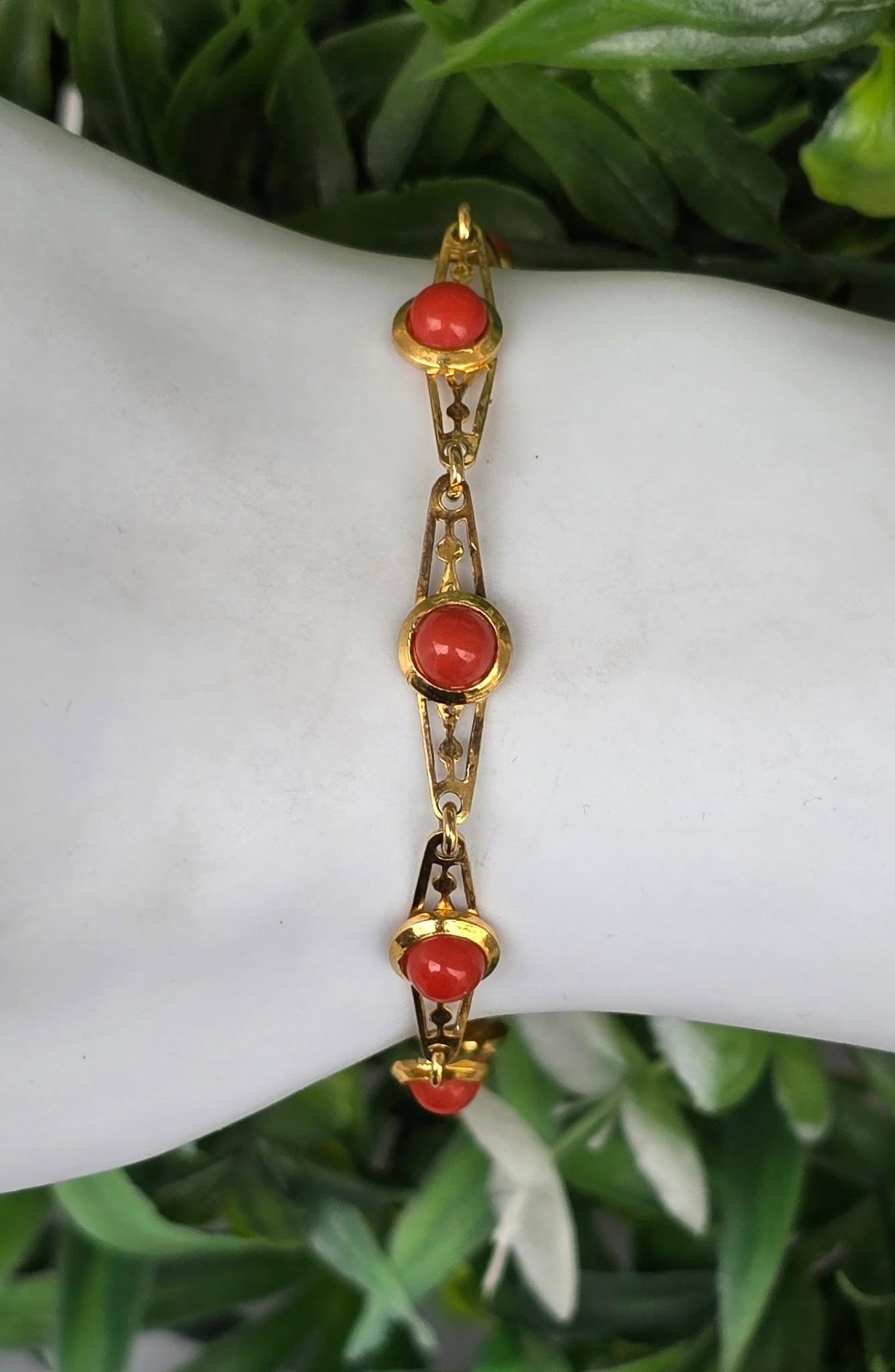 Brățară veche din argint aurit, cu coral natural.