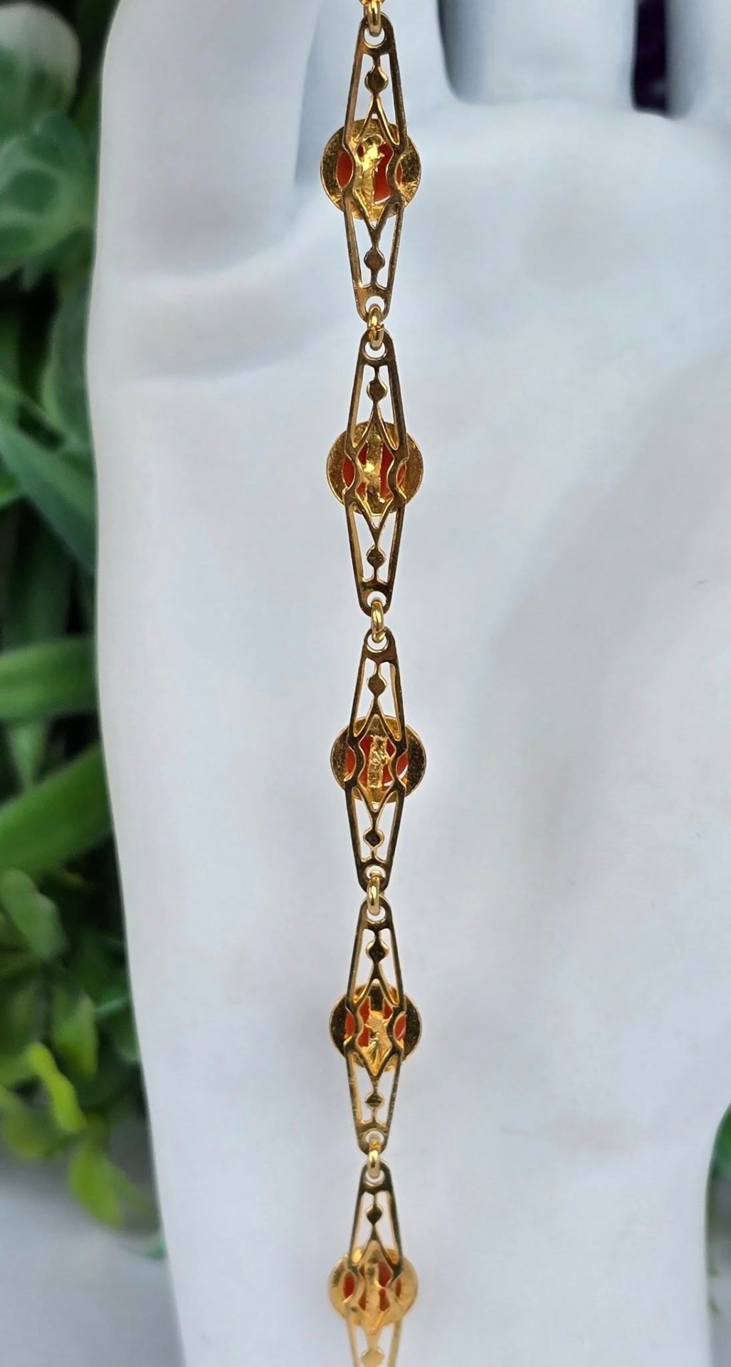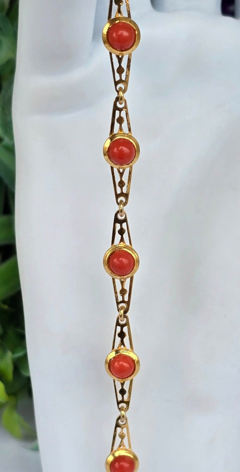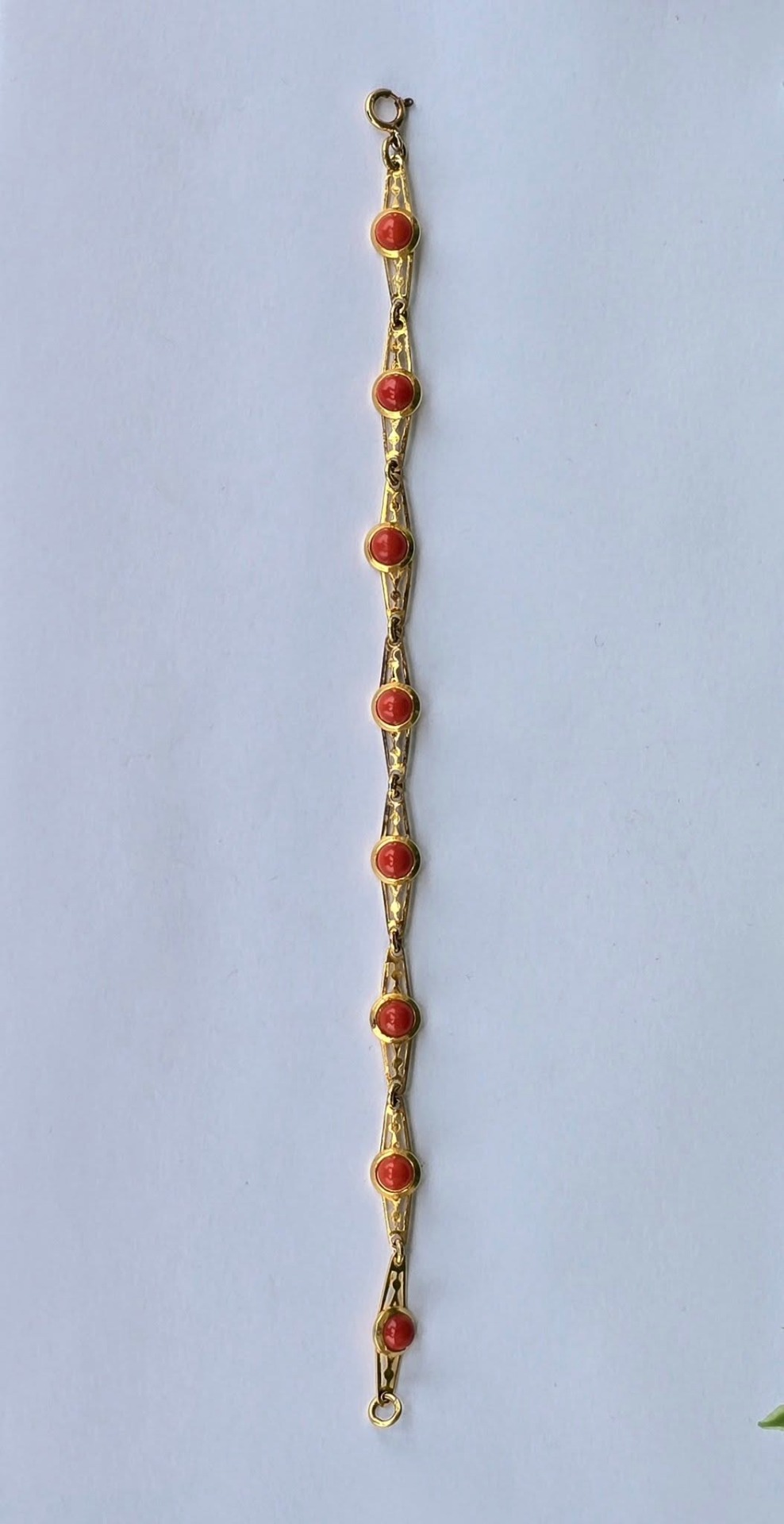Brățară veche din argint aurit, cu coral natural.
