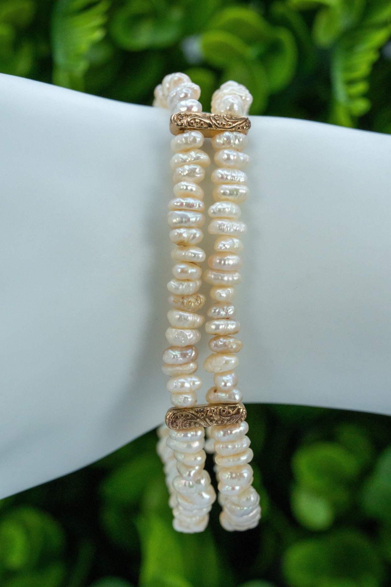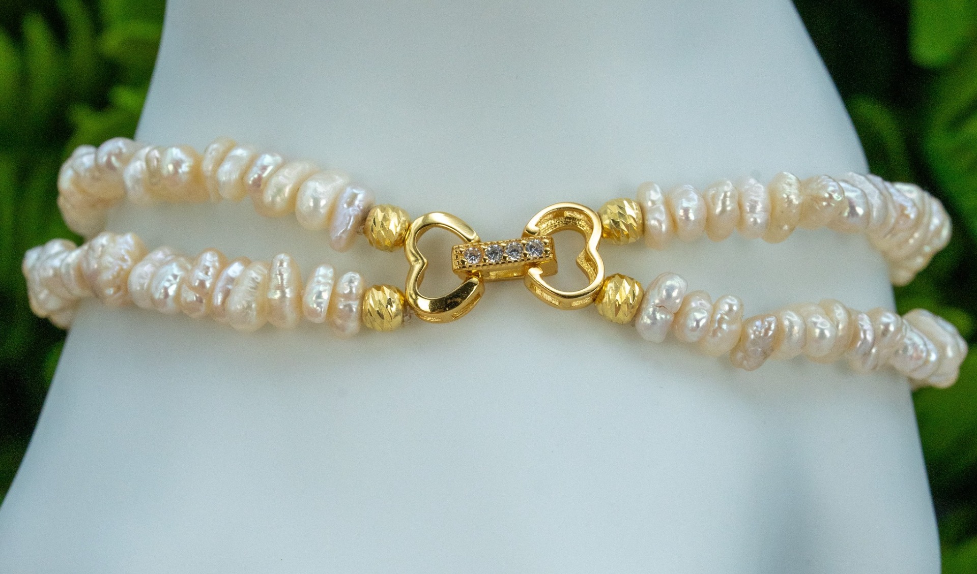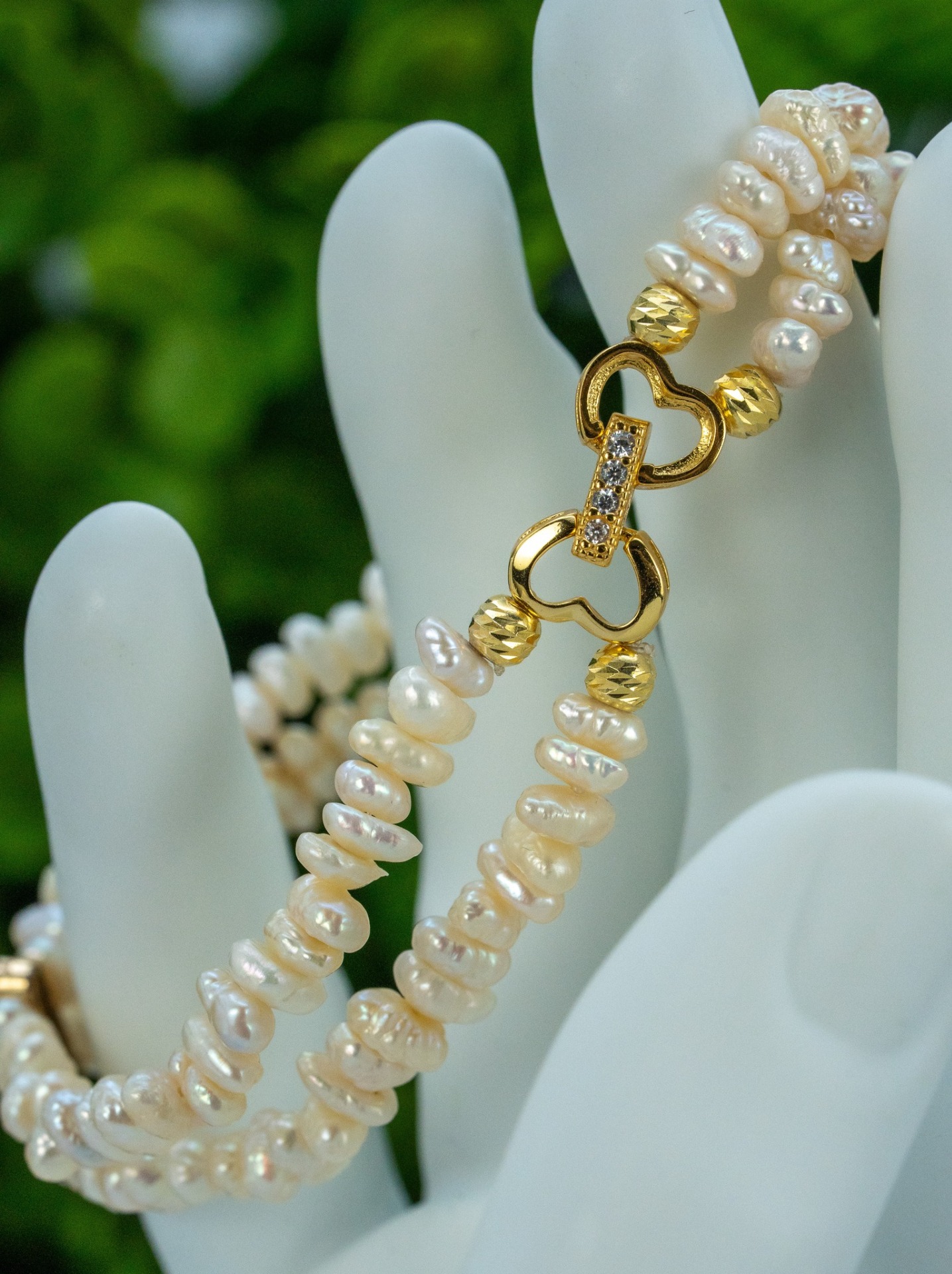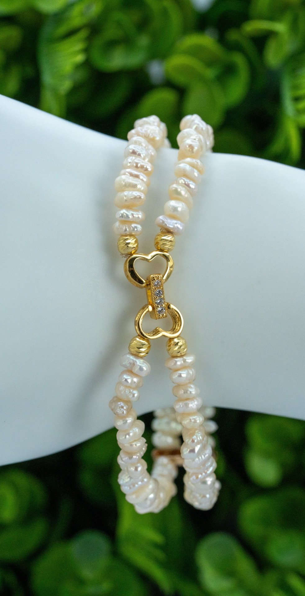 Brățară veche din argint aurit, cu perle naturale de cultură și pietre cubic zirconia.