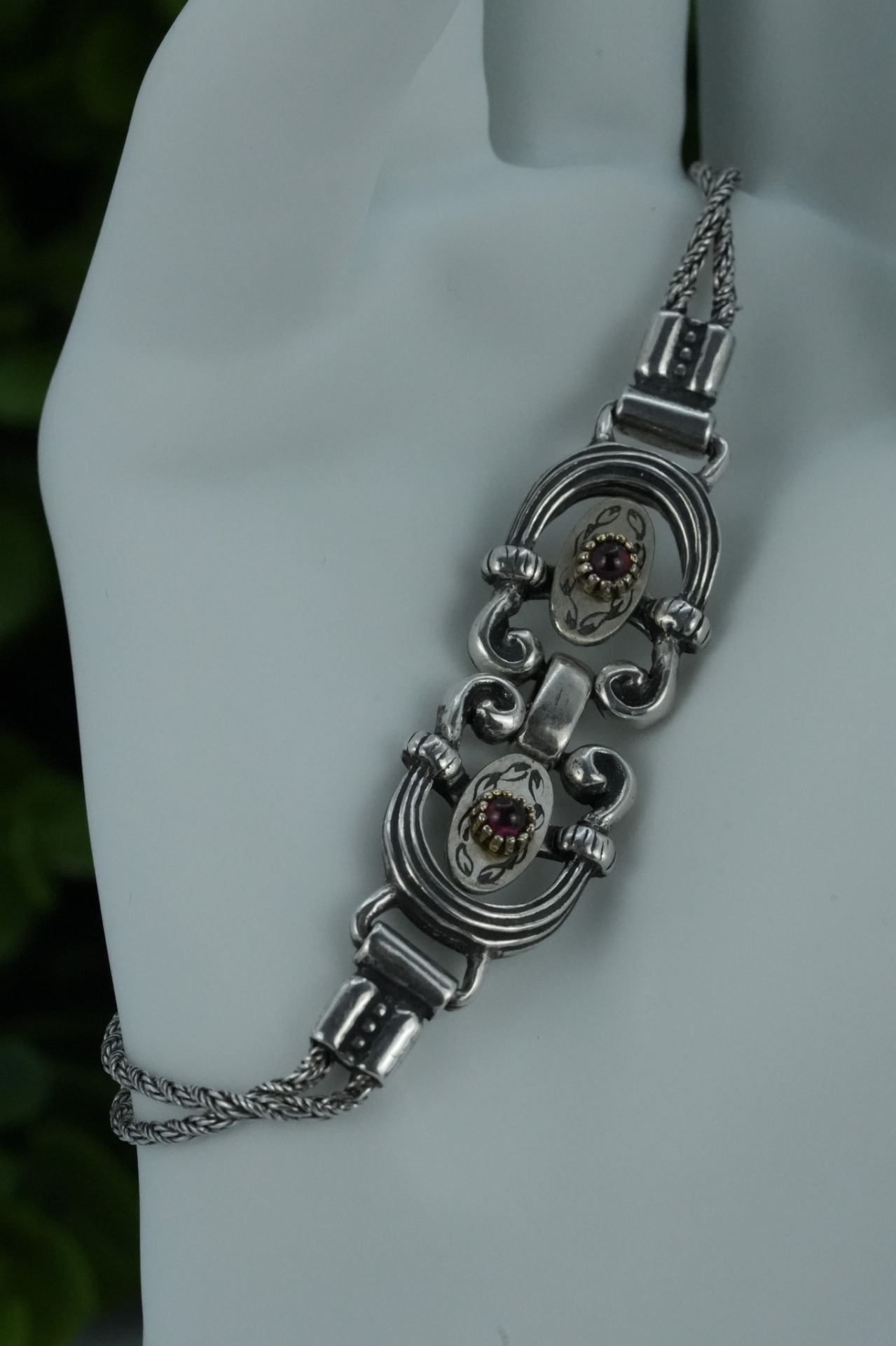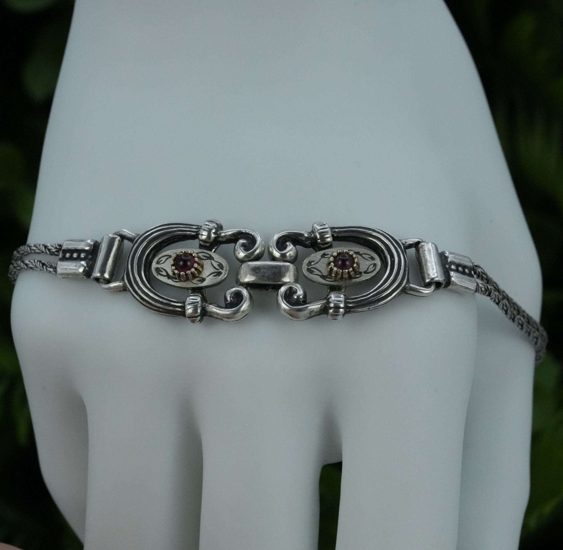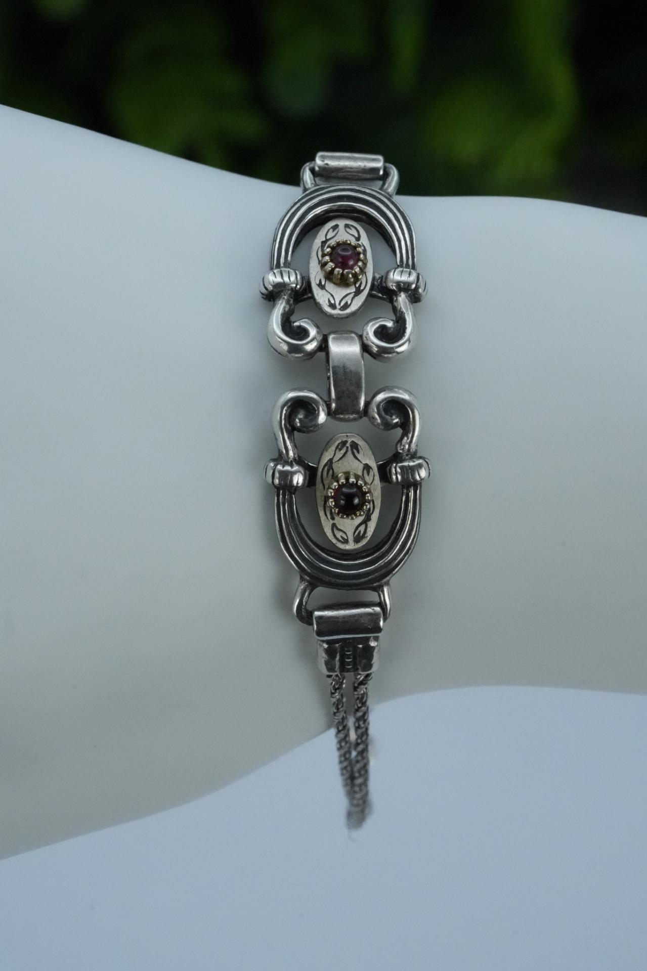 Brățară veche din argint, cu granate naturale.