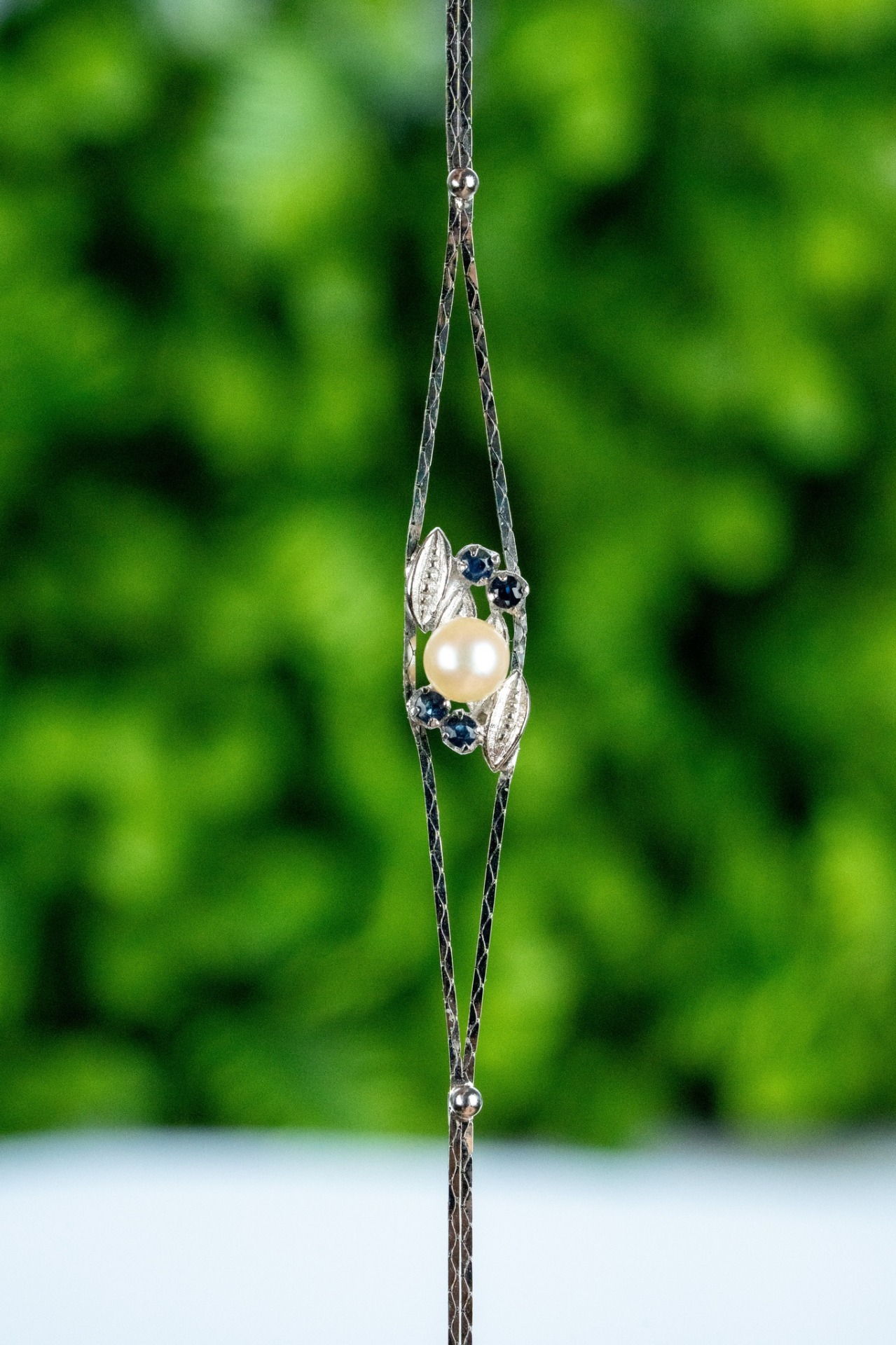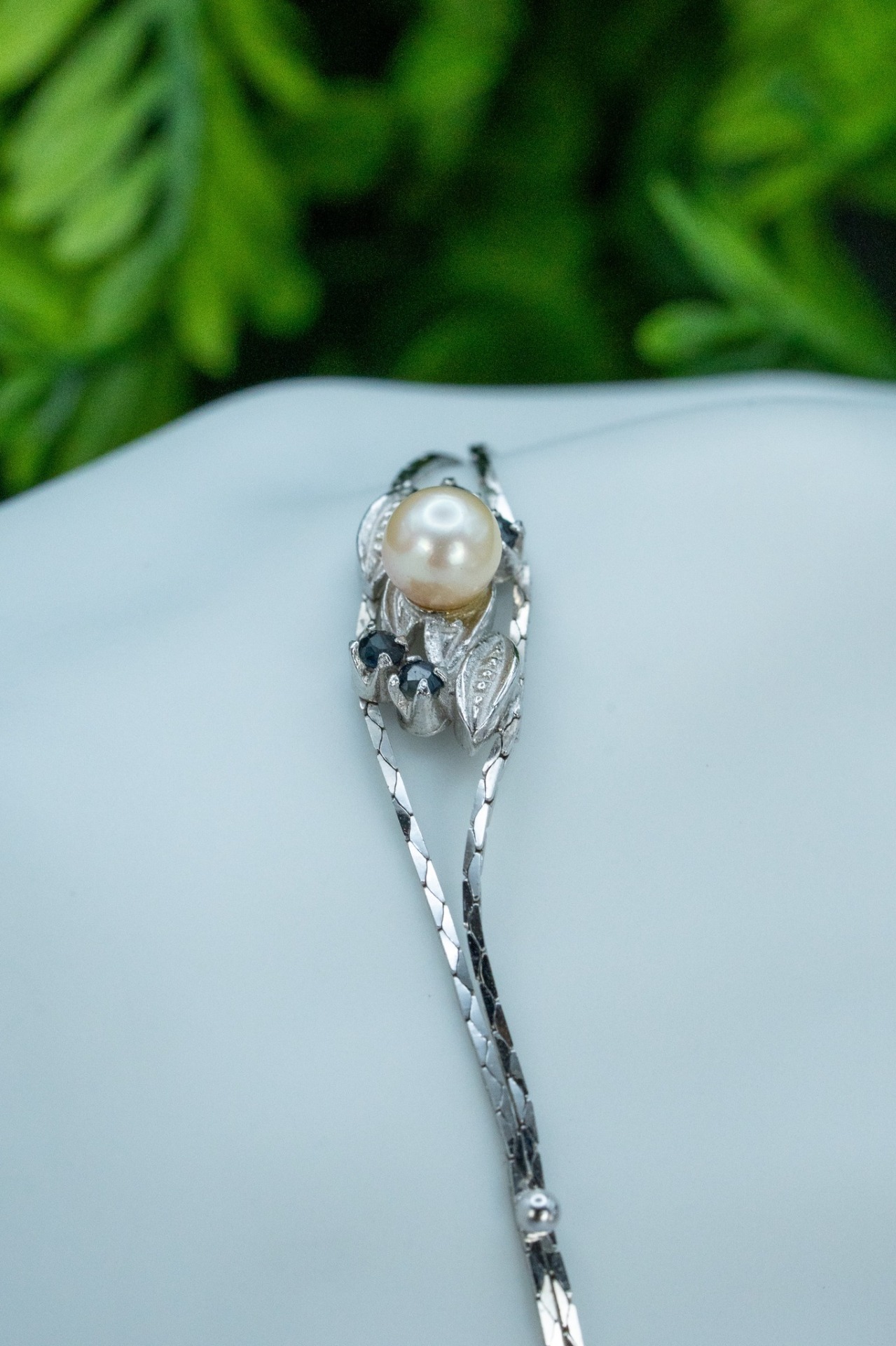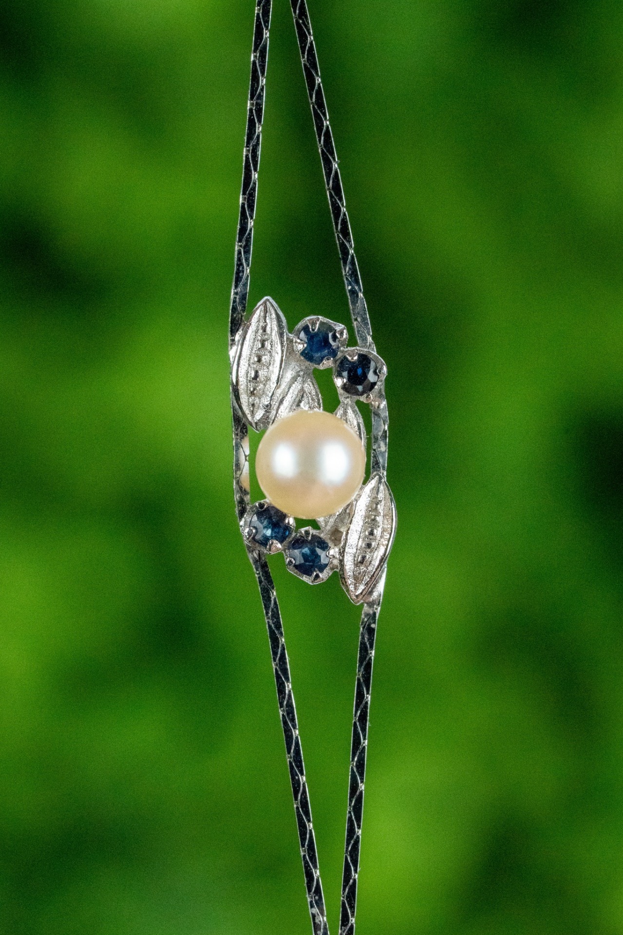 Brățară veche din argint, cu safire naturale și perlă naturală de cultură.