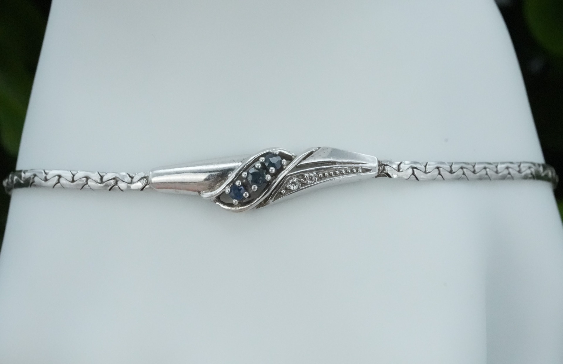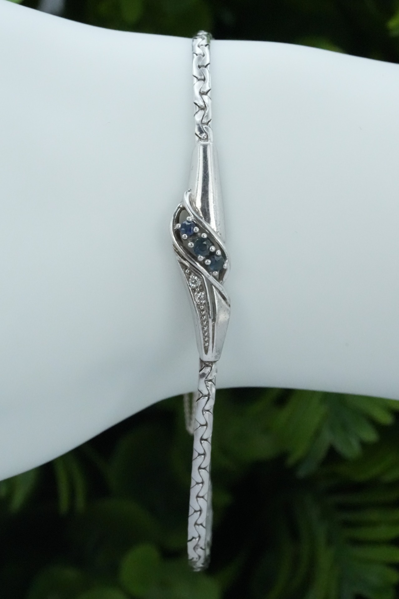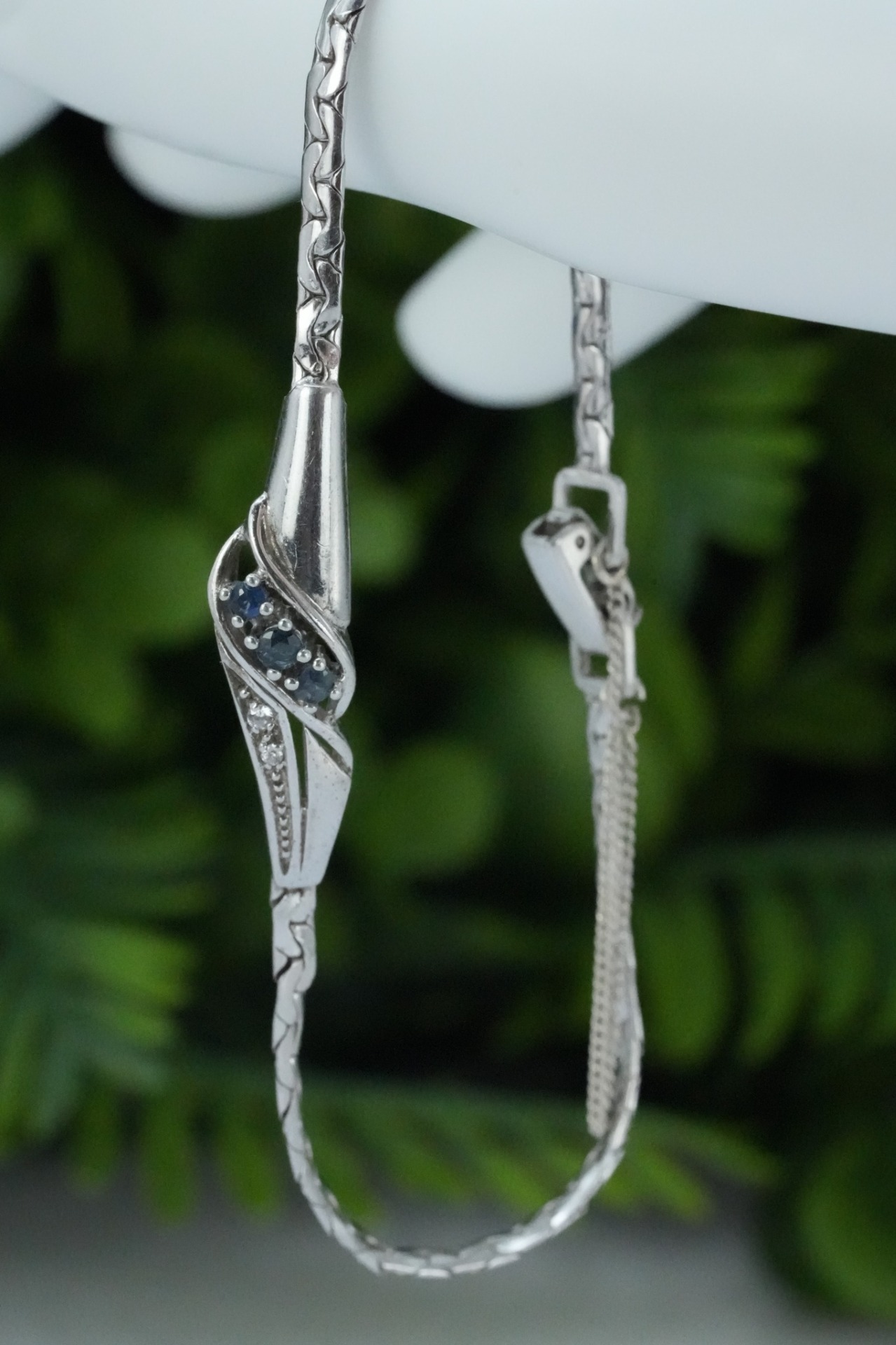Brățară veche din argint, cu safire naturale și pietre cubic zirconia.