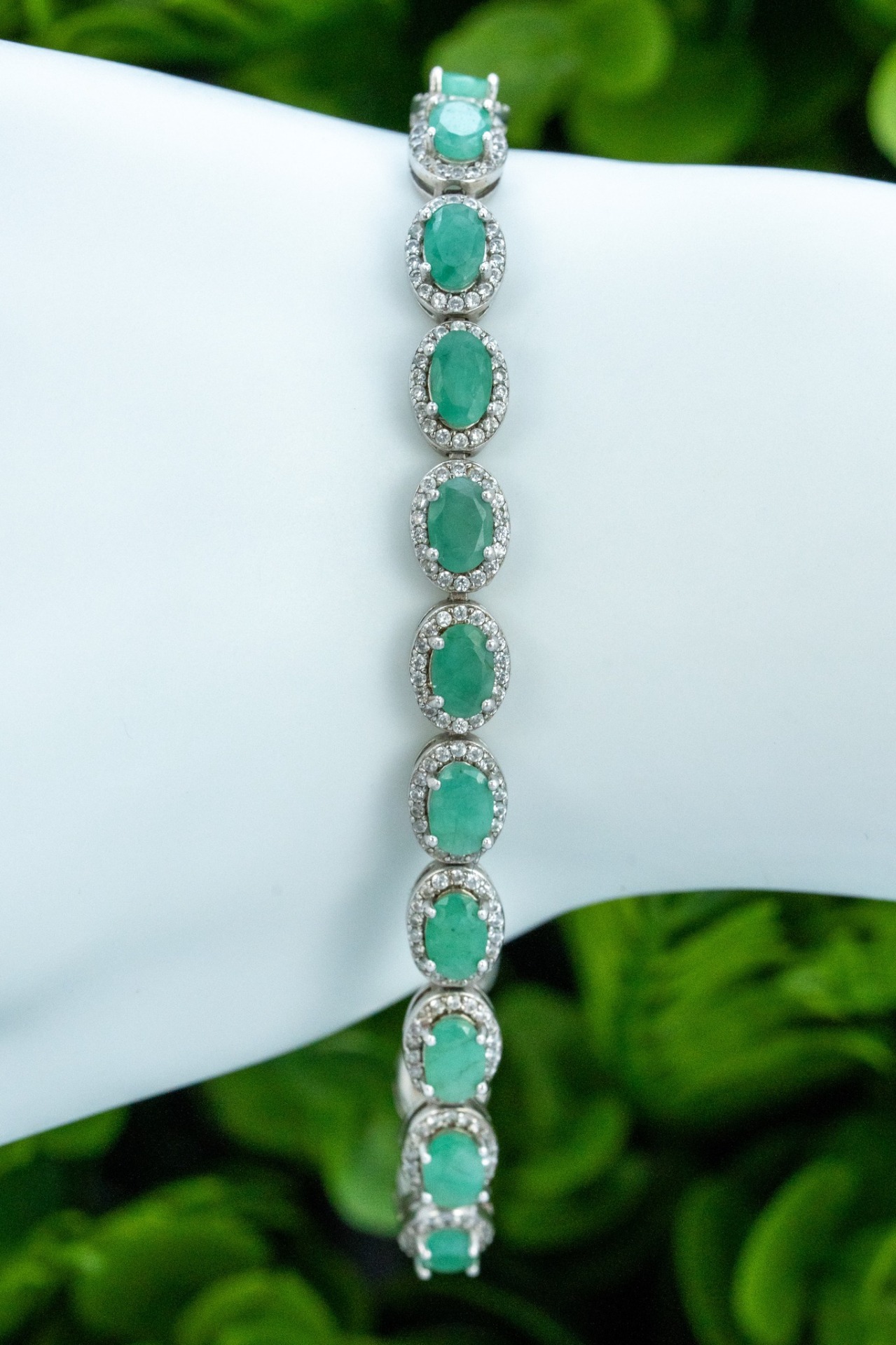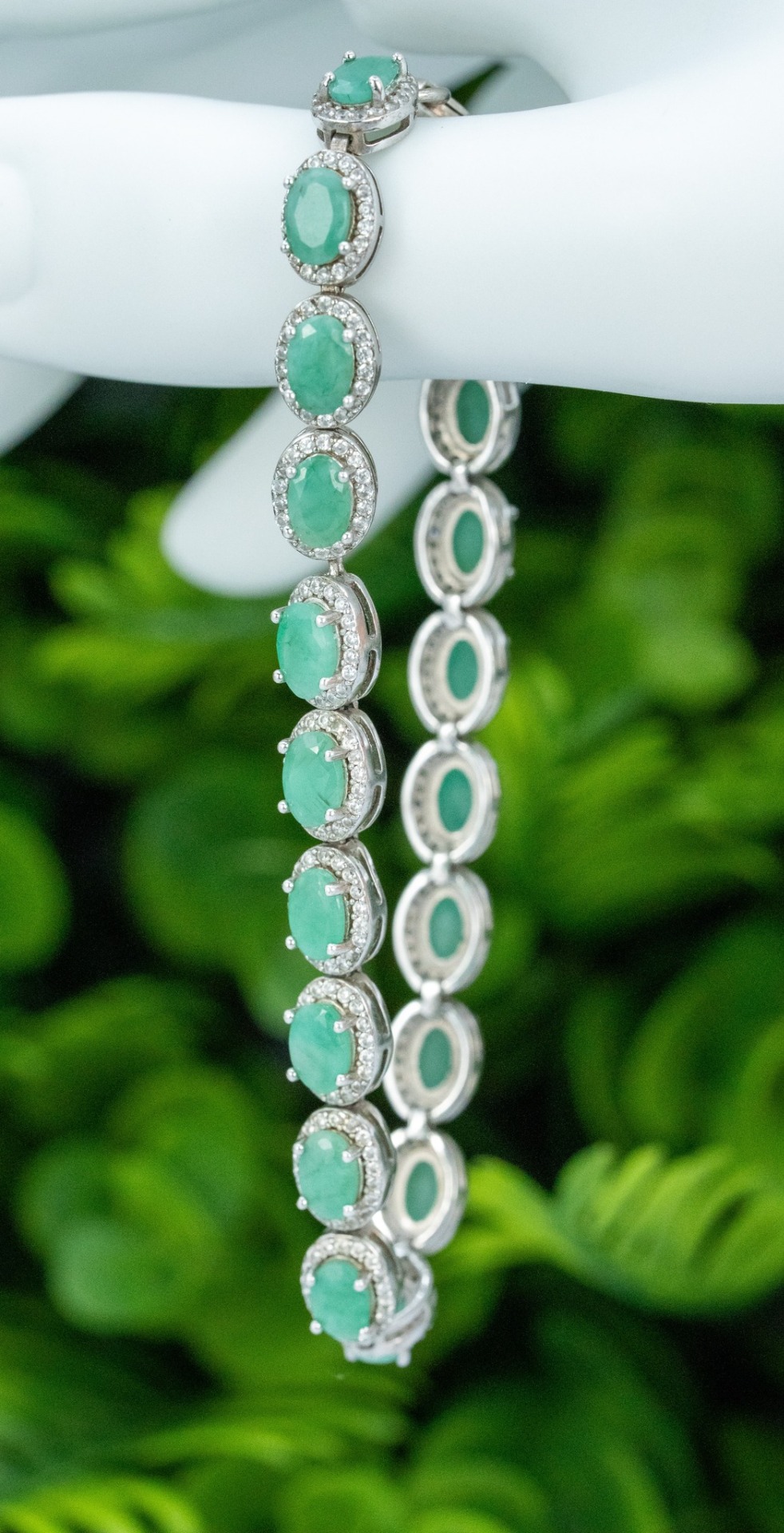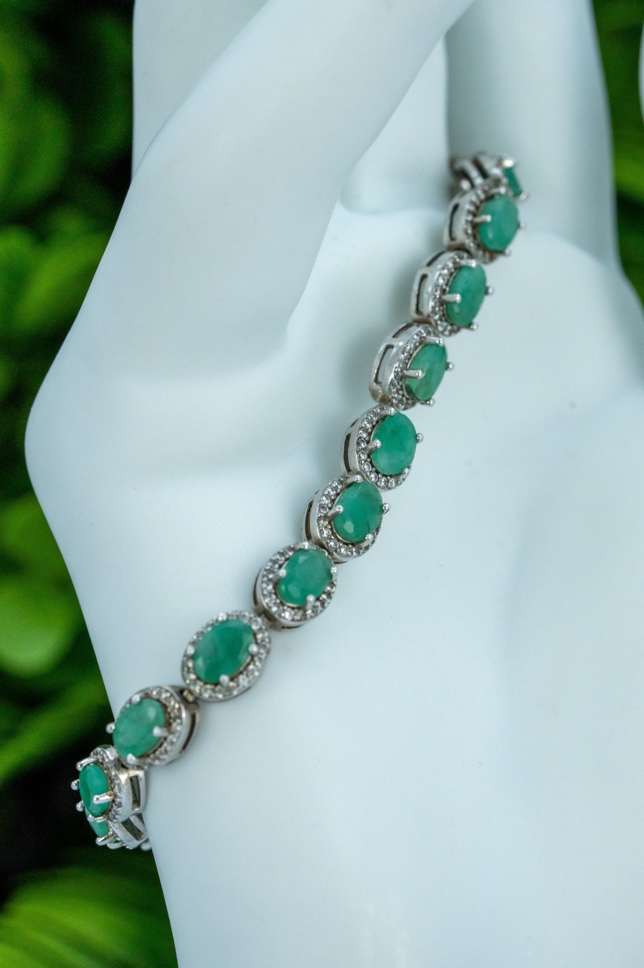 Brățară veche din argint, cu smaralde naturale și pietre cubic zirconia.