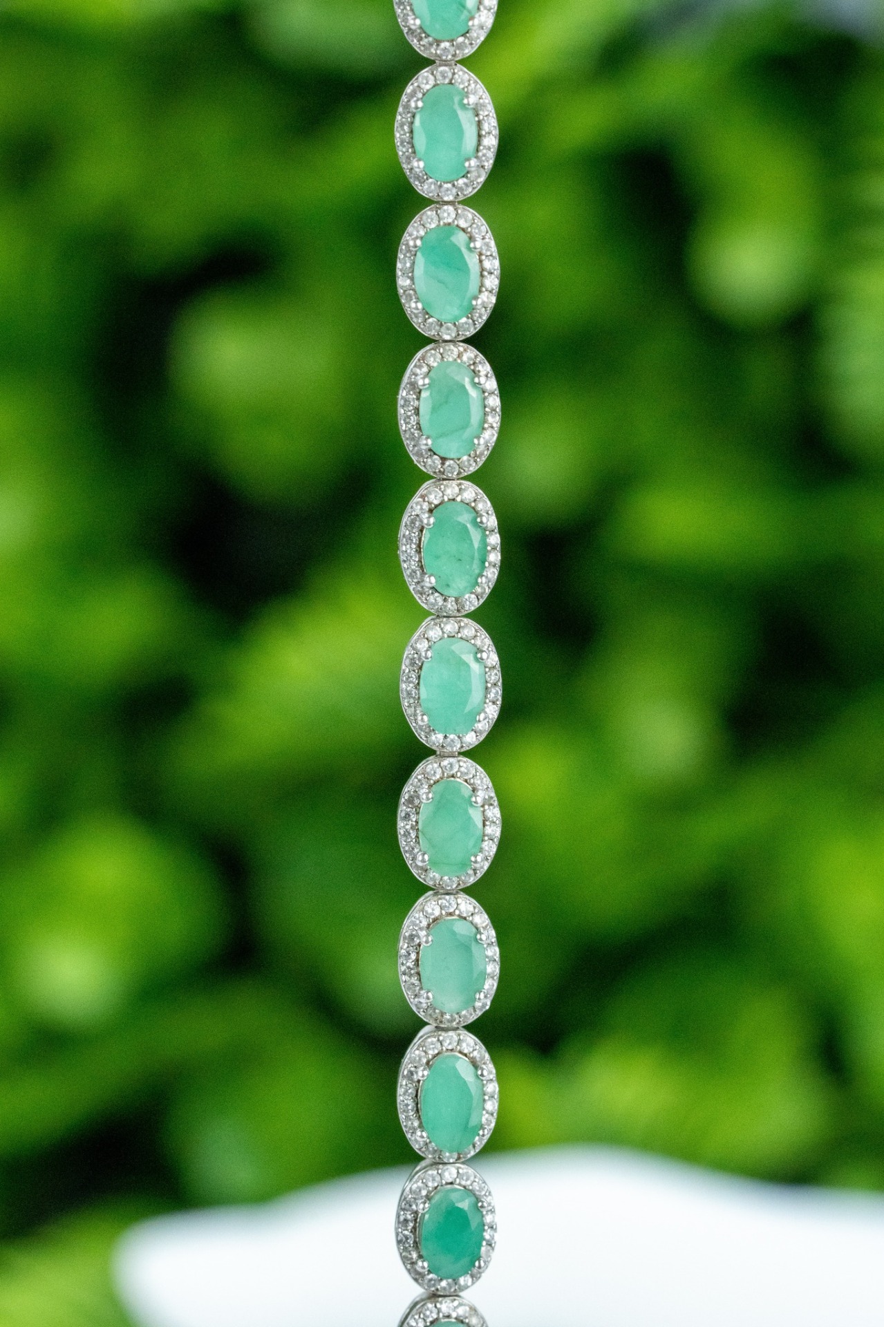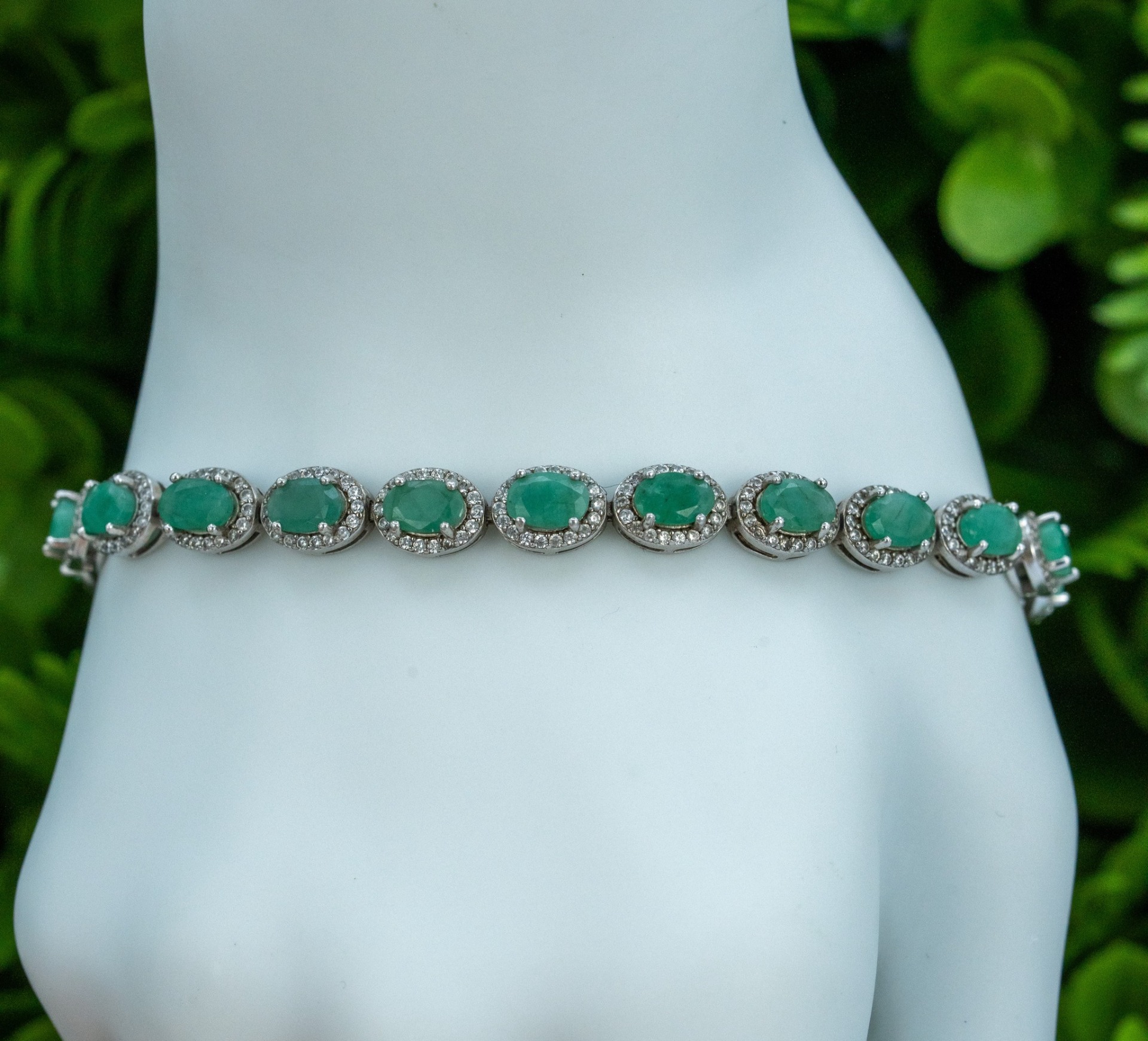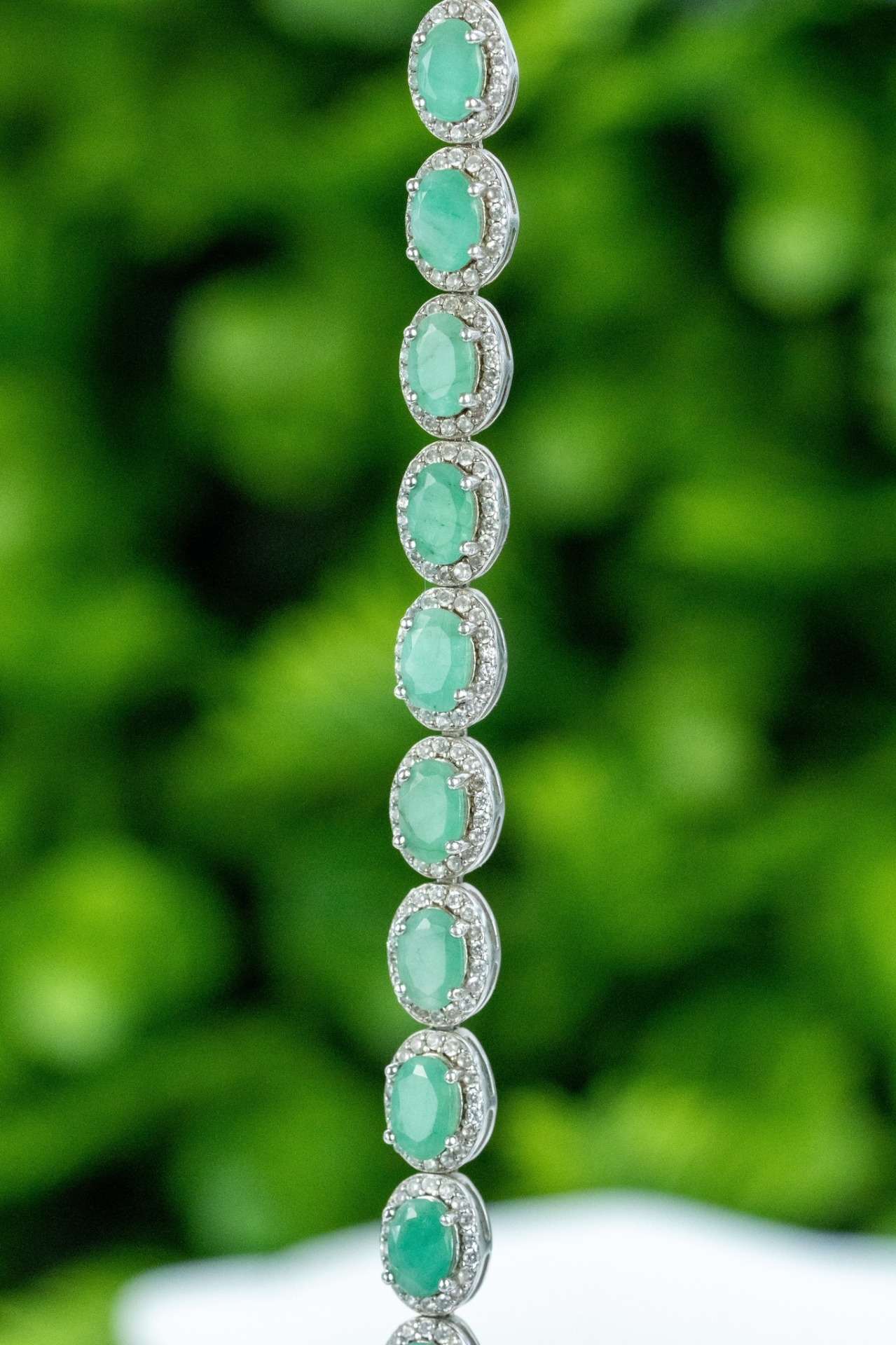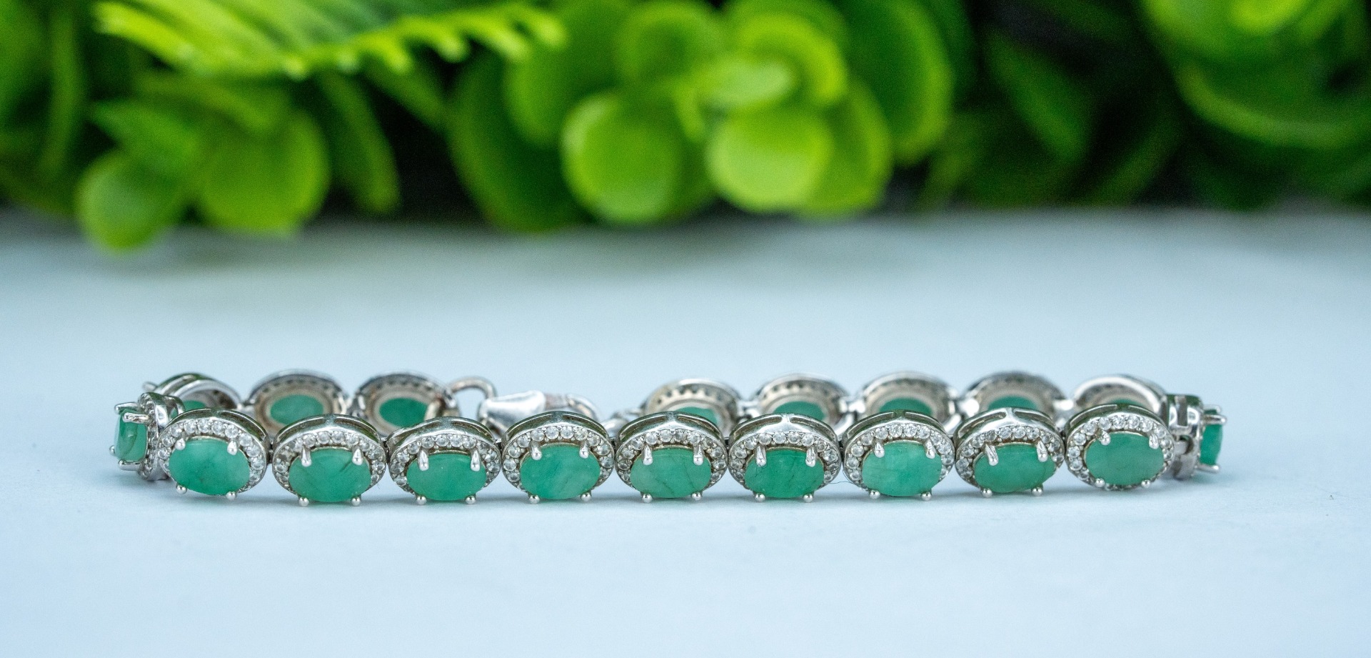 Brățară veche din argint, cu smaralde naturale și pietre cubic zirconia.