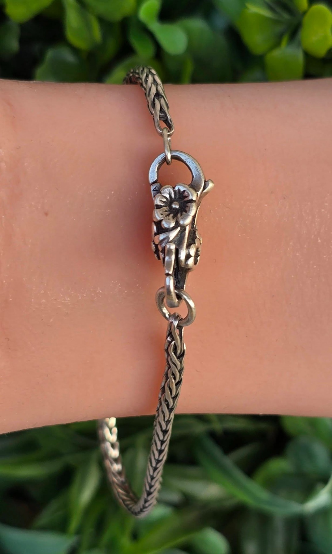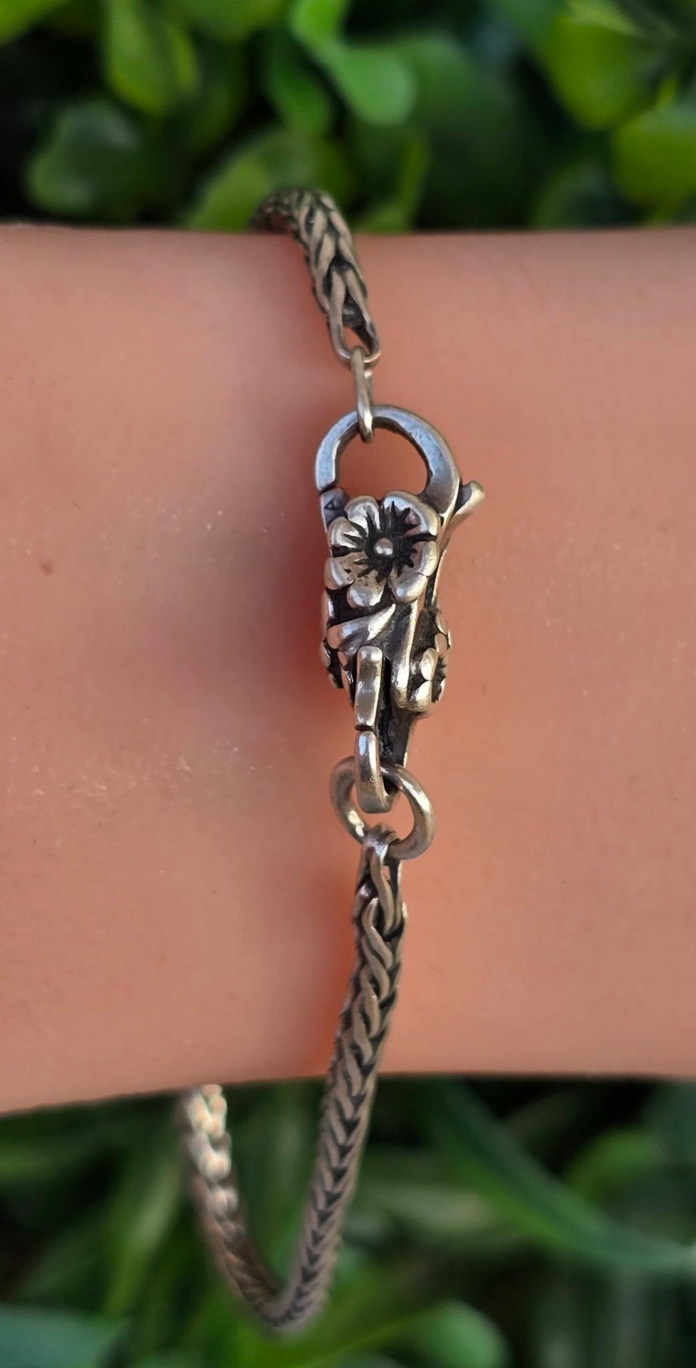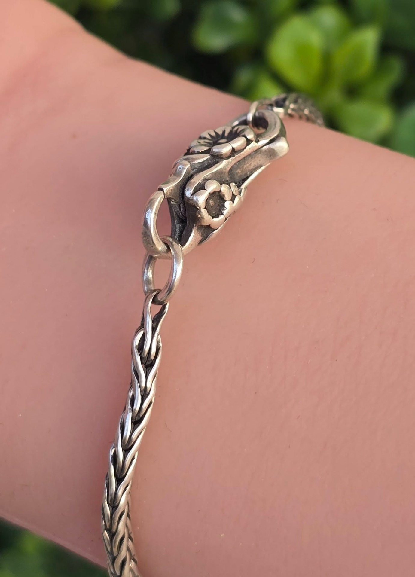 Brățară veche din argint, de tip "fox-tail" (coadă de vulpe), cu închizătoare superbă în motiv floral.