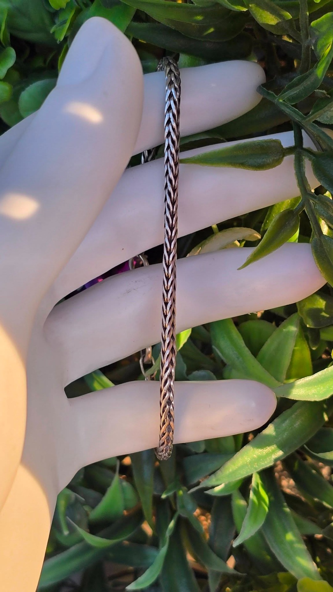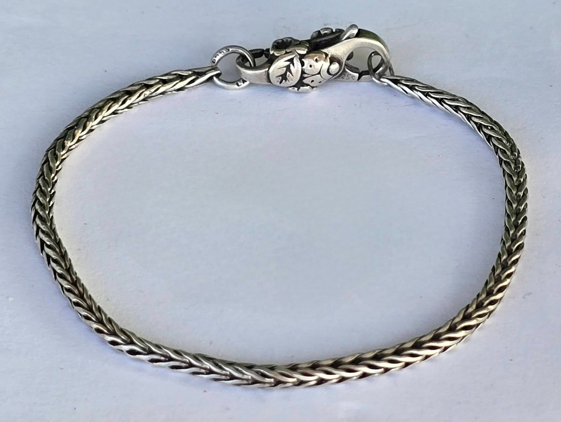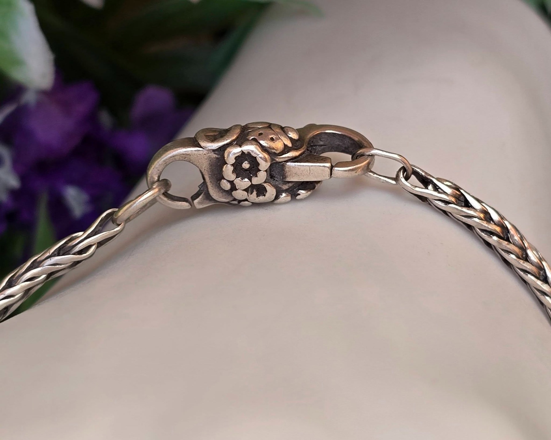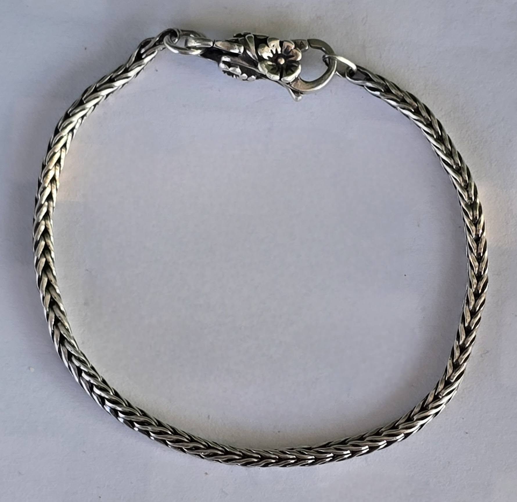 Brățară veche din argint, de tip "fox-tail" (coadă de vulpe), cu închizătoare superbă în motiv floral.