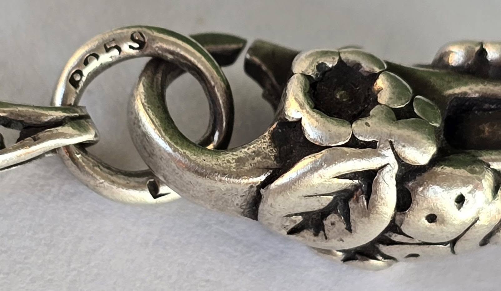 Prezintă marcaj de argint 925 și marcaj de meșter.
