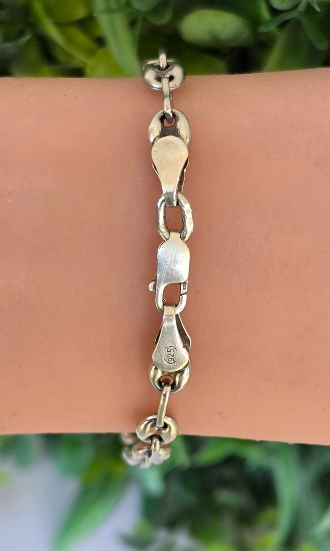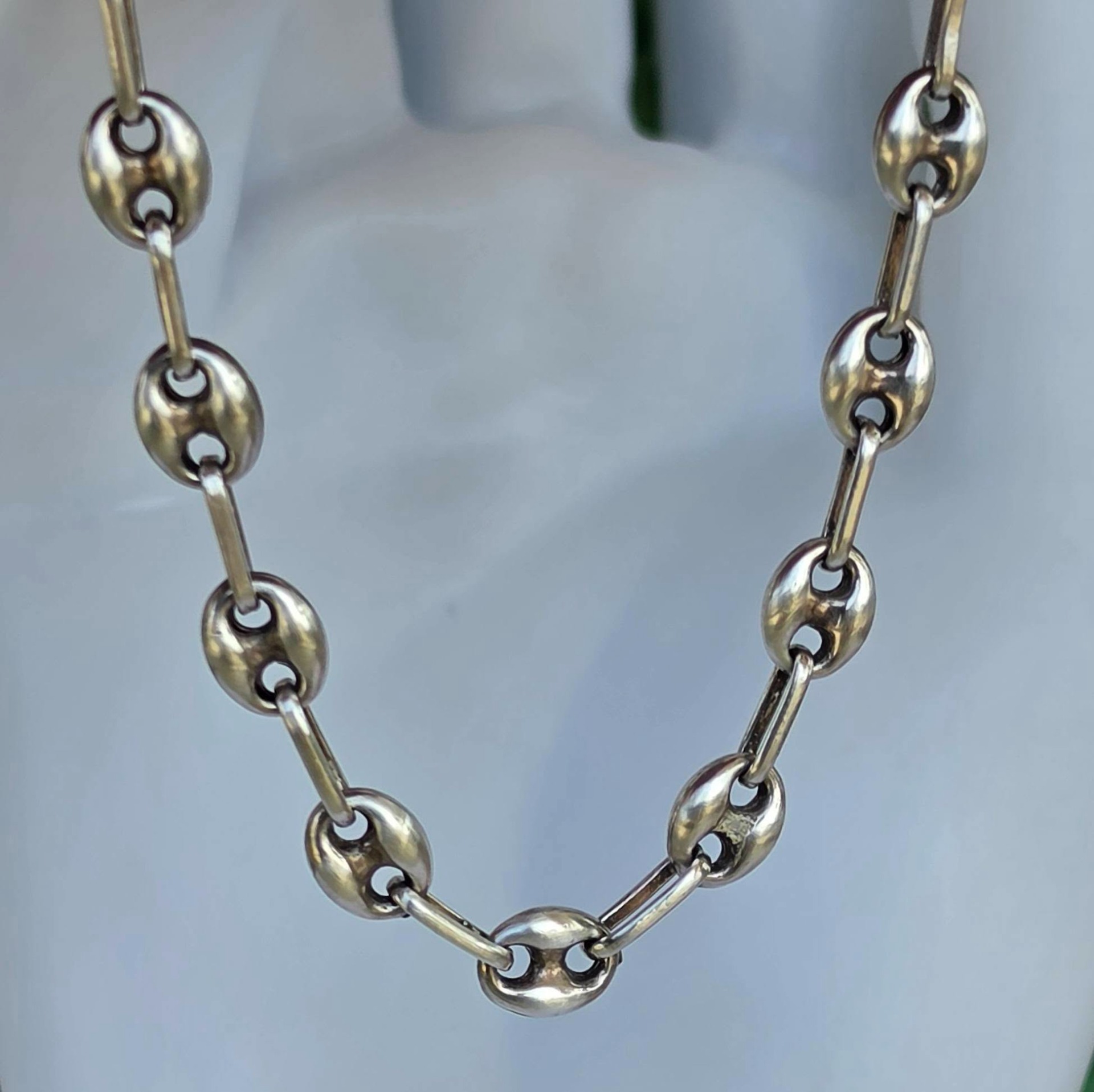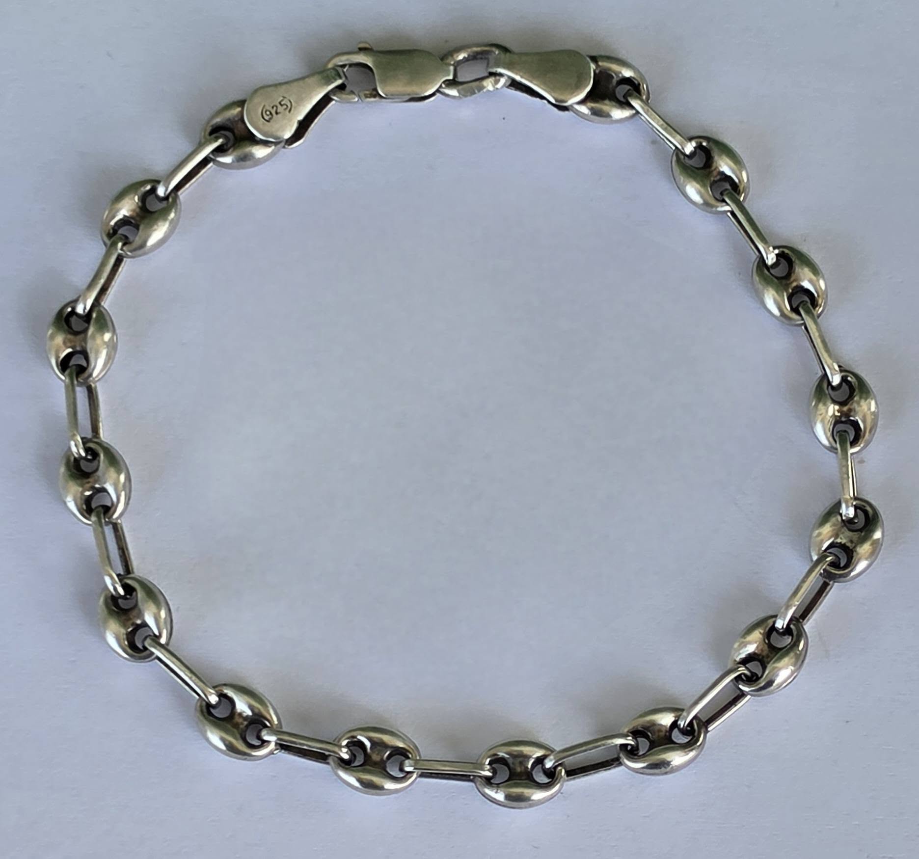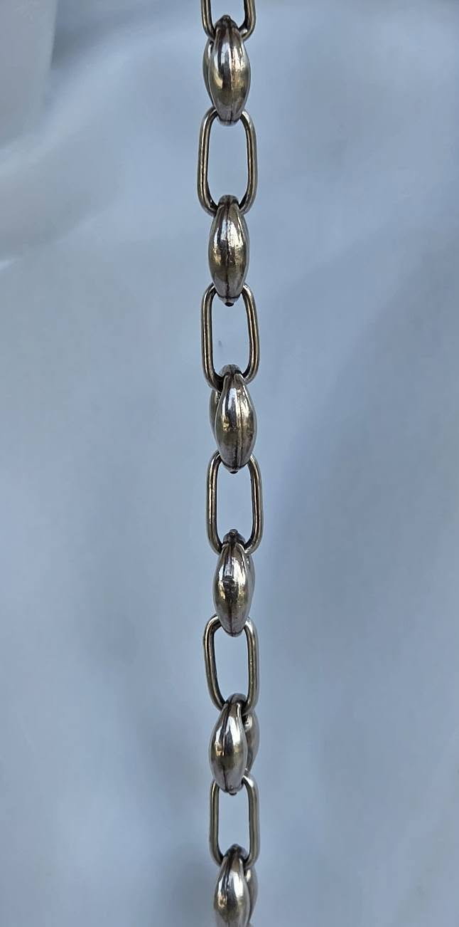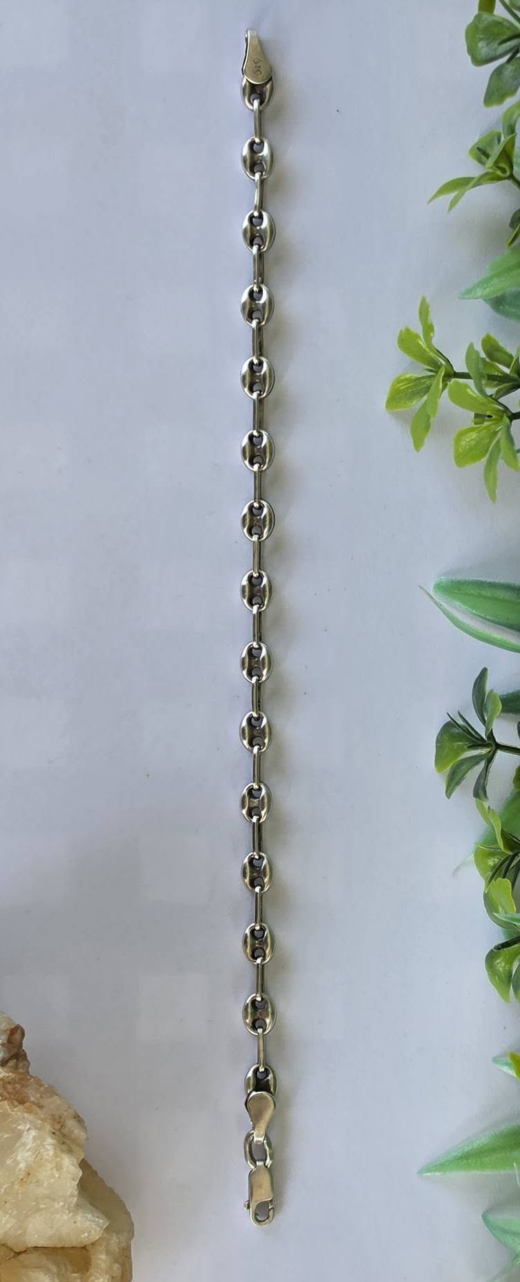 Brățară veche din argint, manufactură cunoscută ca "Gucci link", cu verigi "puff coffee beans" (boabe de cafea bombate).