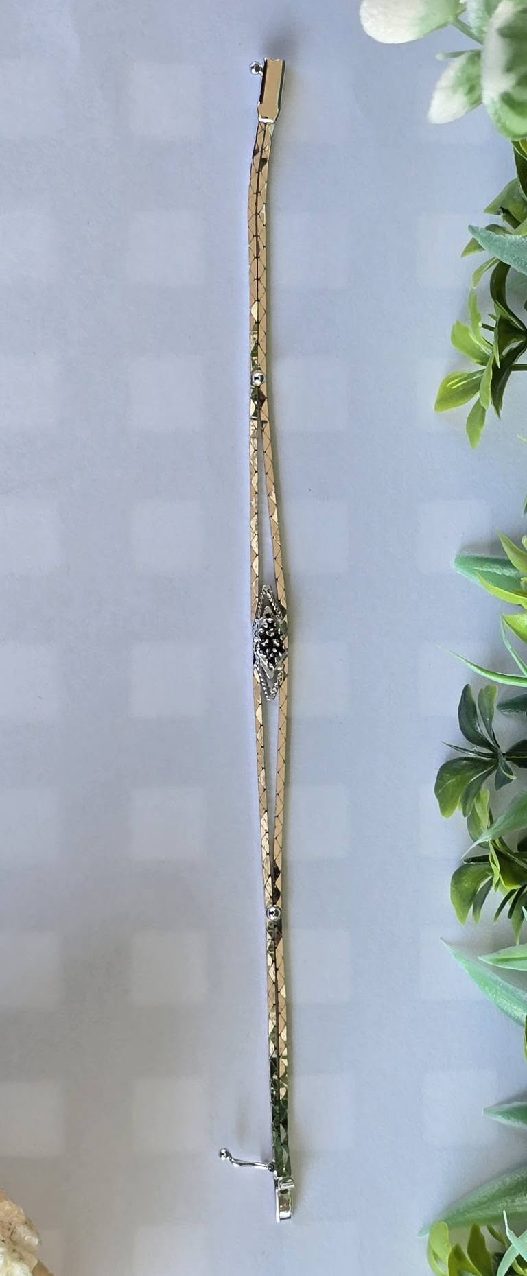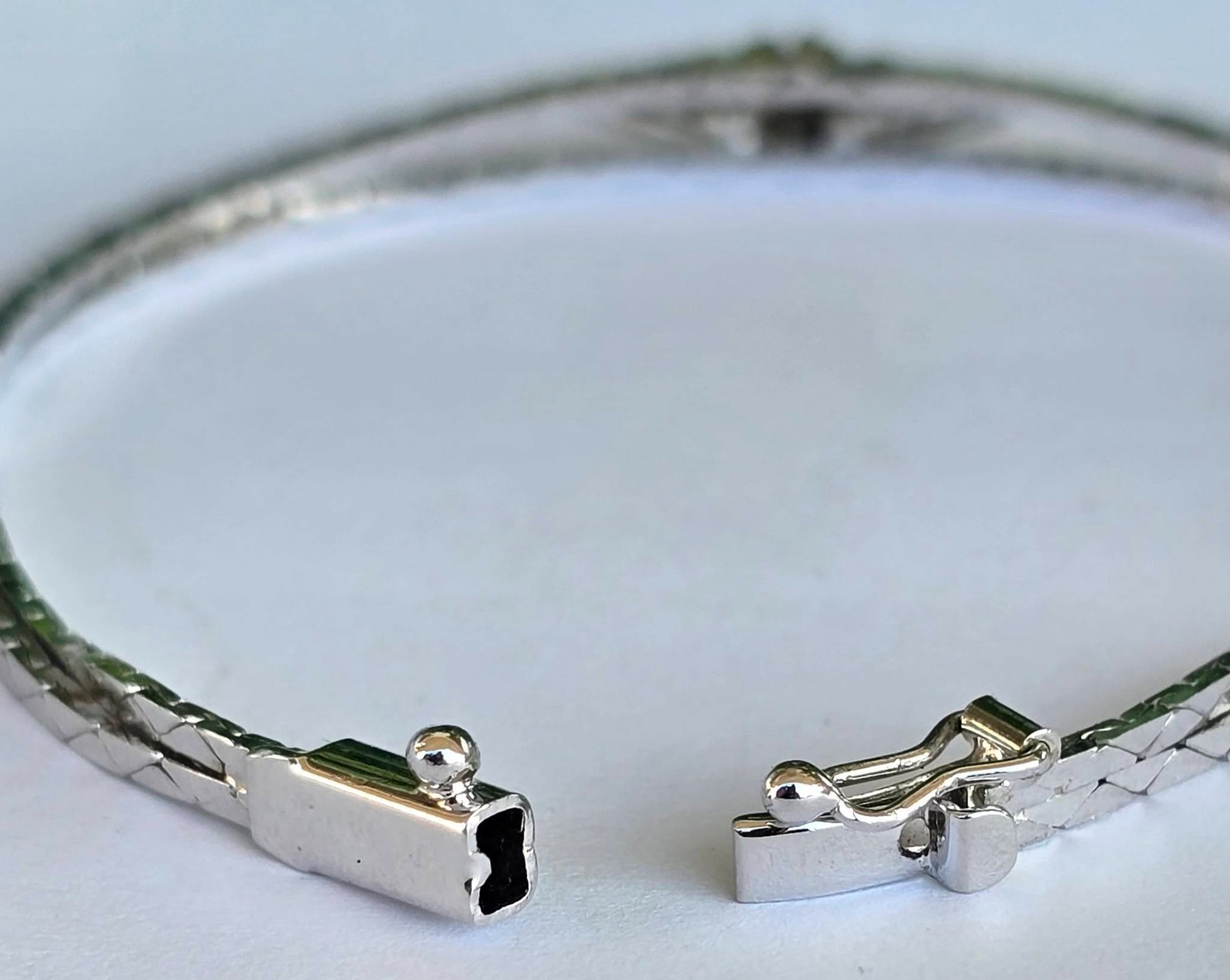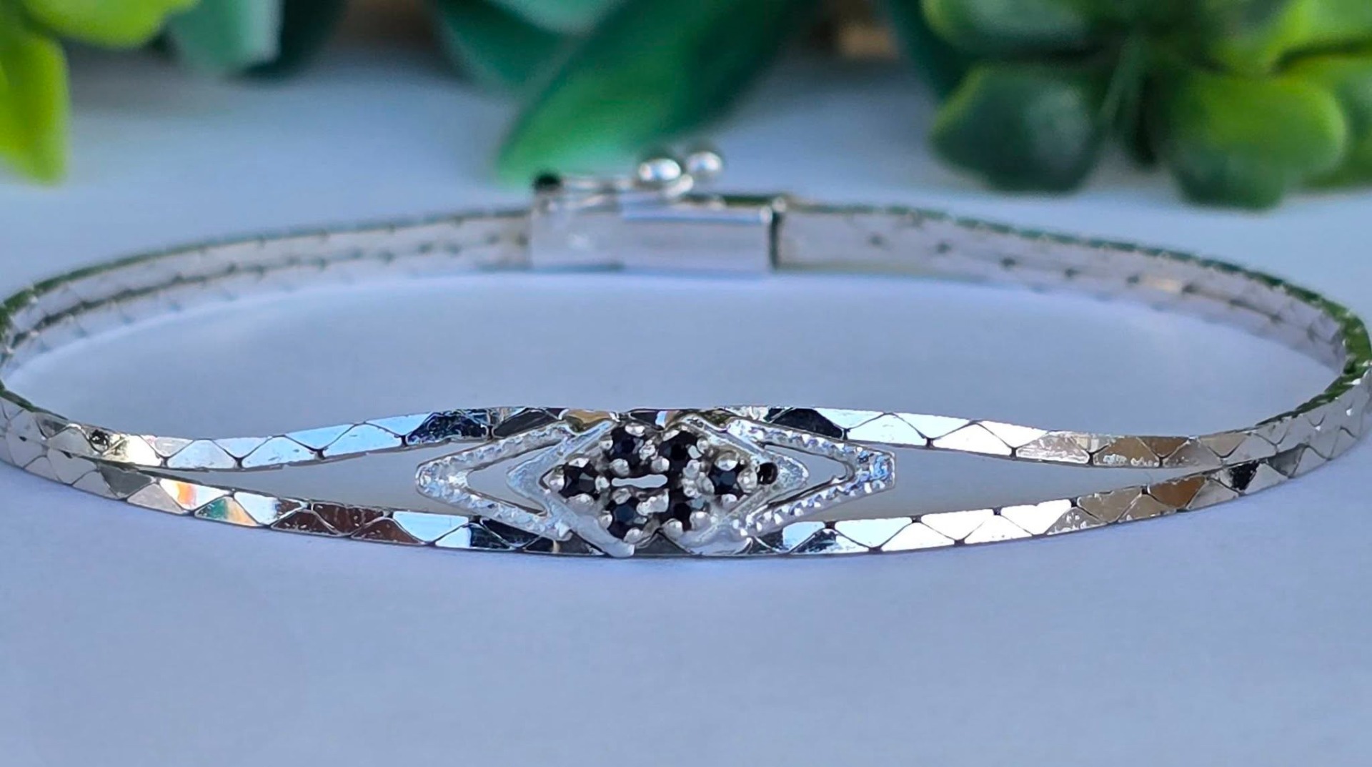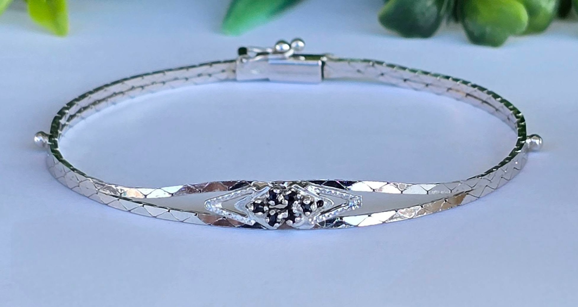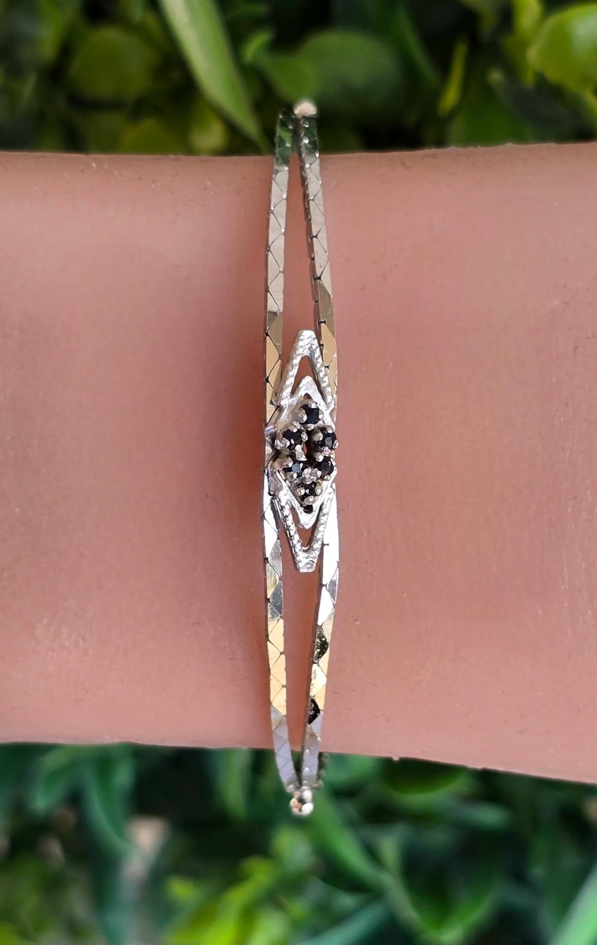 Brățară veche din argint rodiat, cu 6 safire naturale.