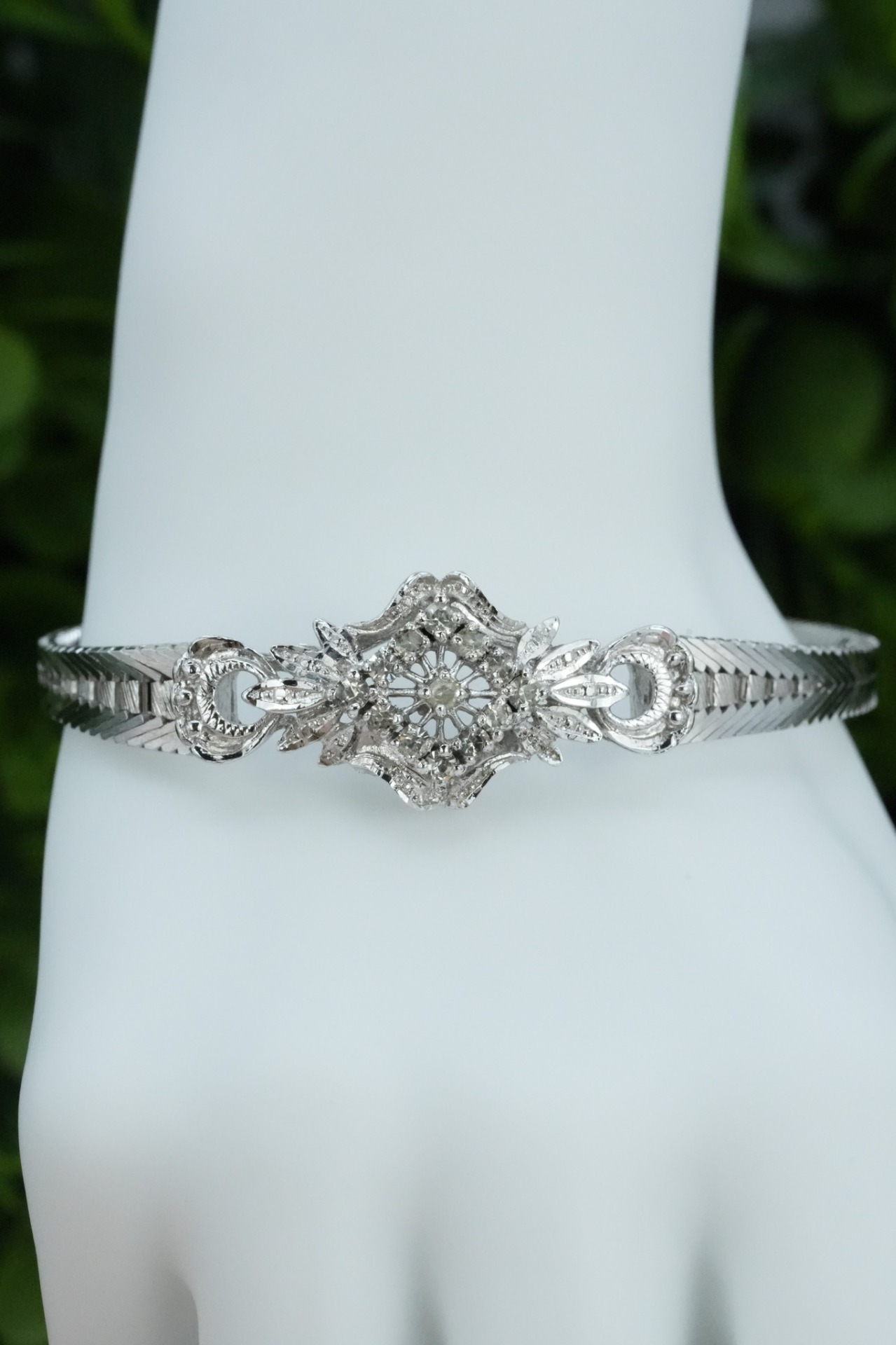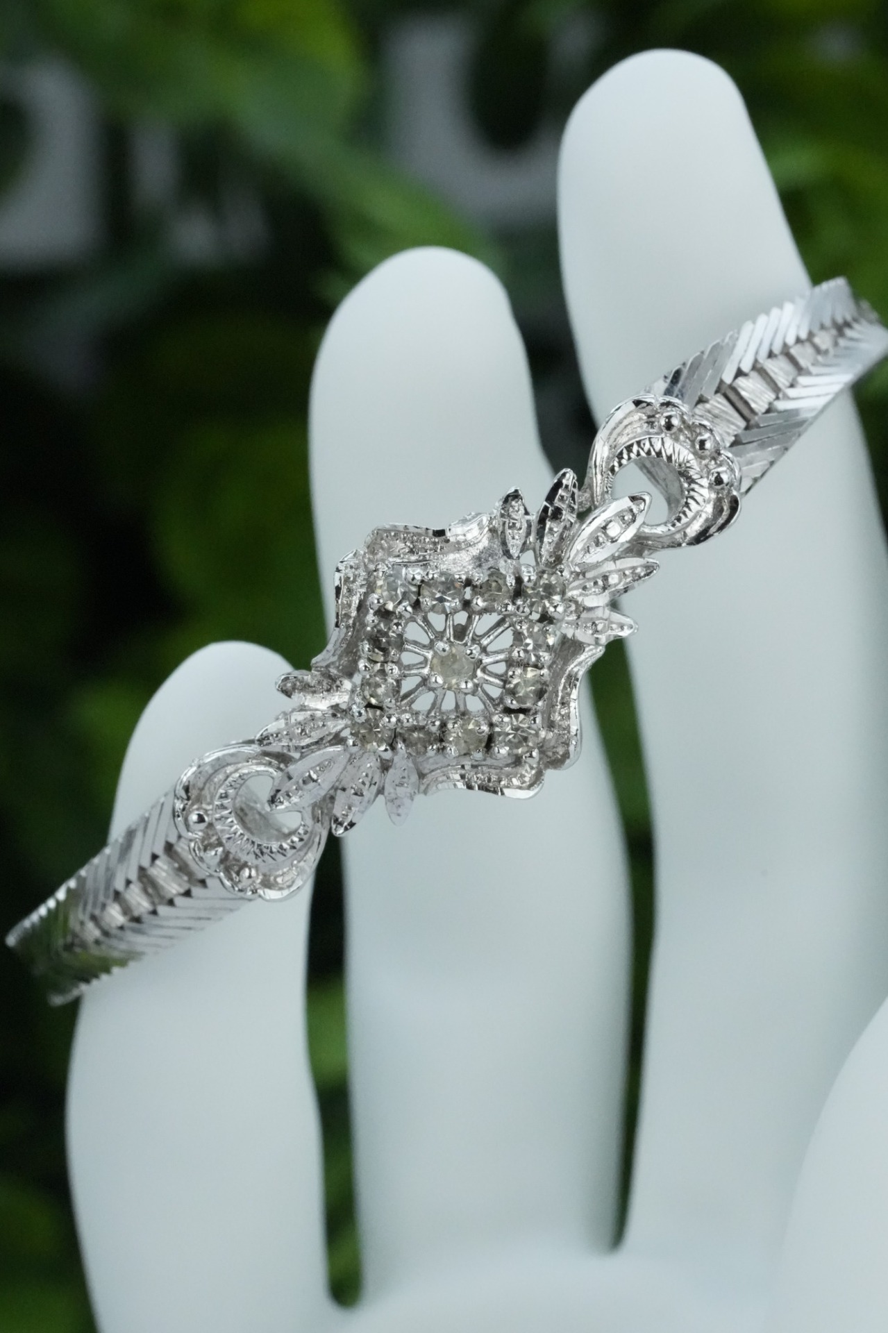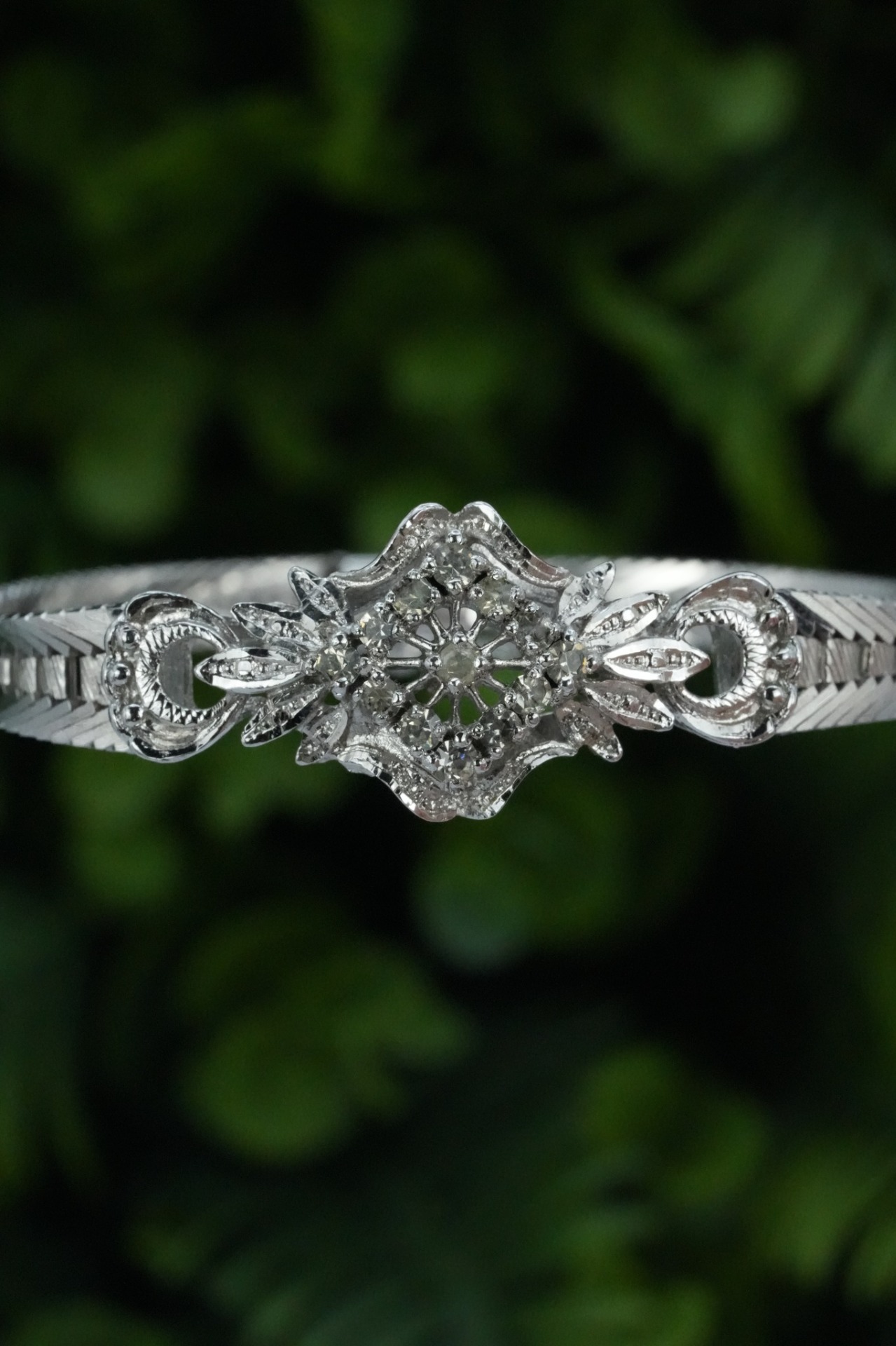 Brățară veche din argint rodiat, superbă, cu pietre cubic zirconia.