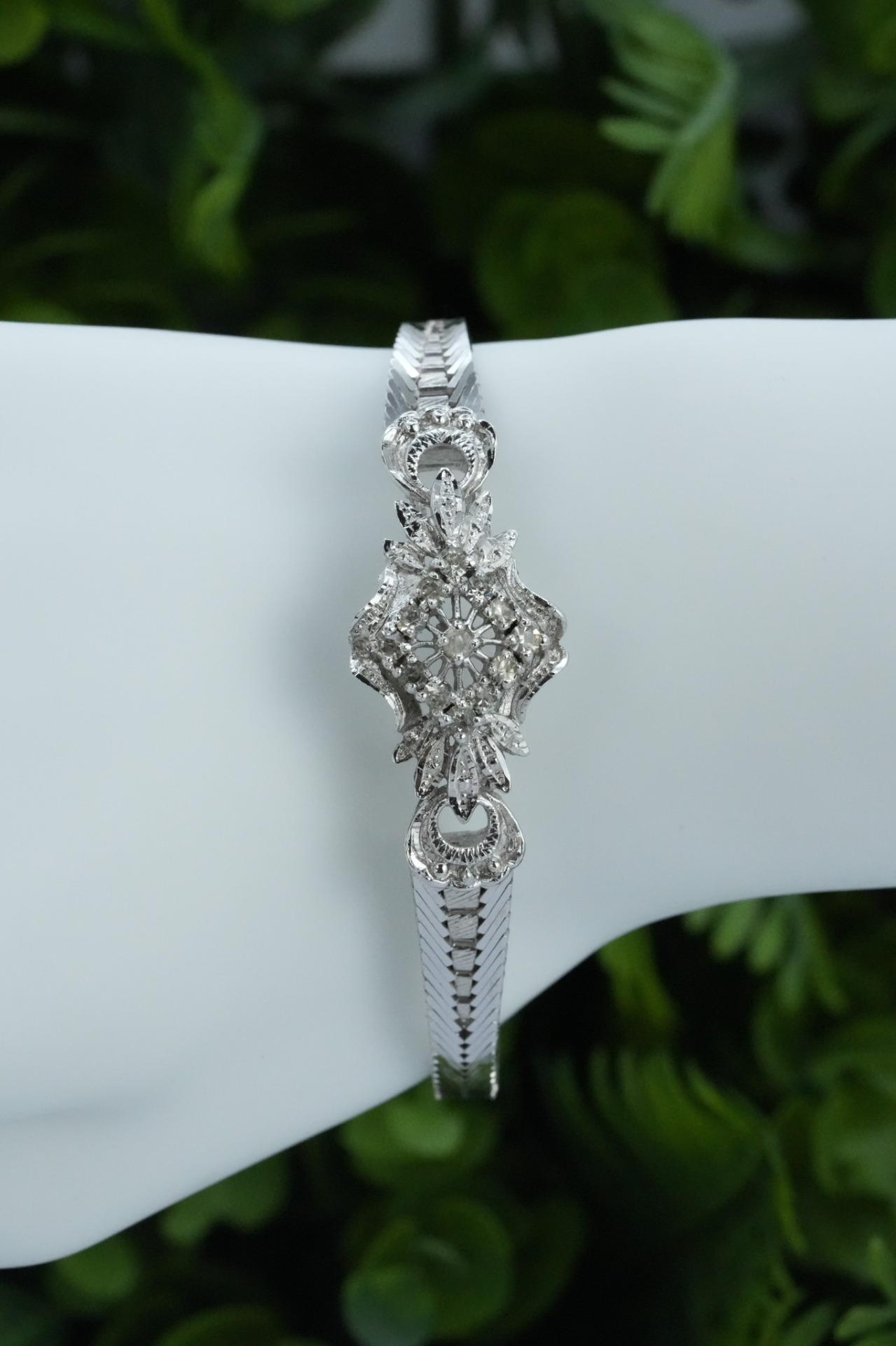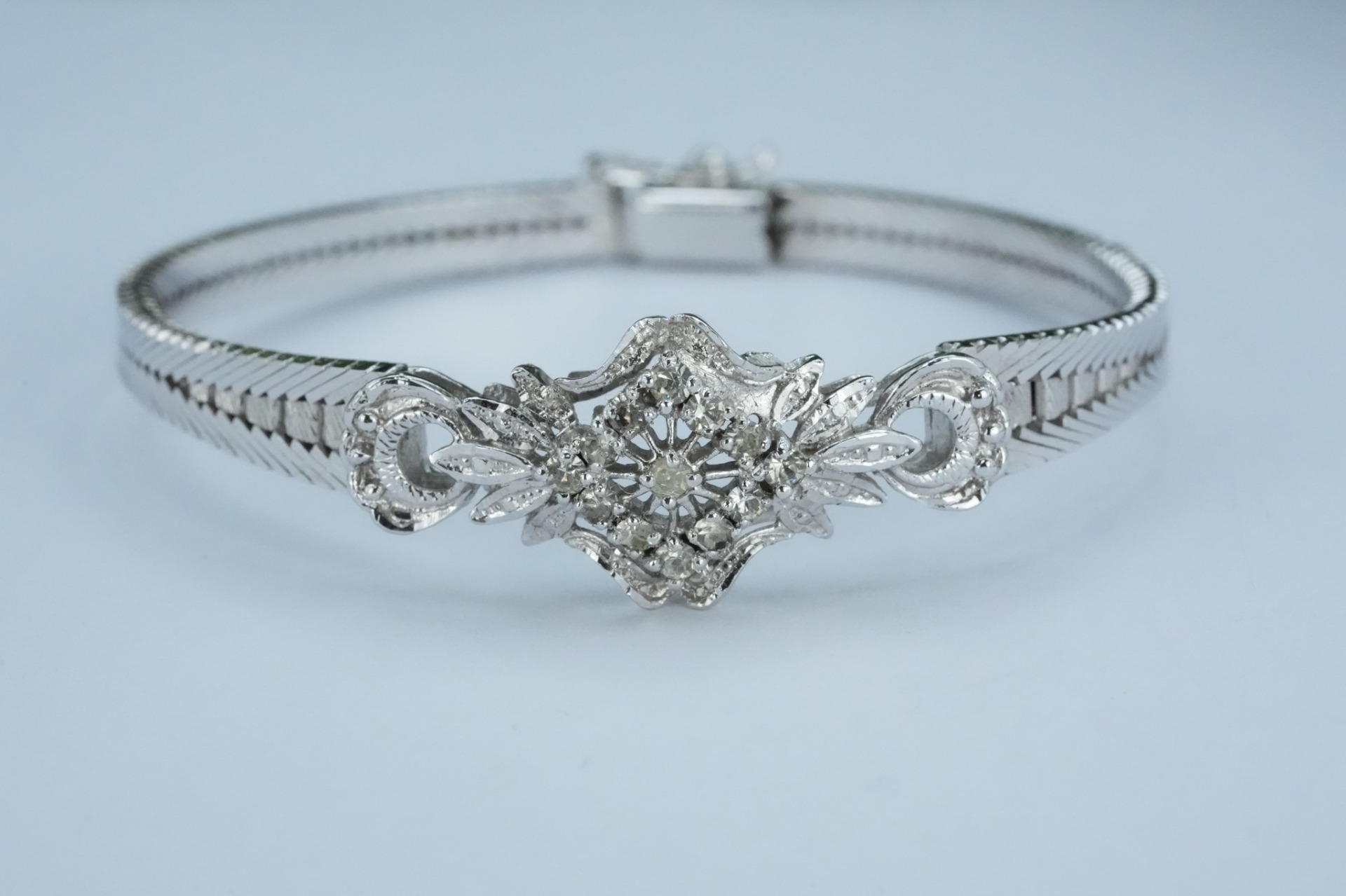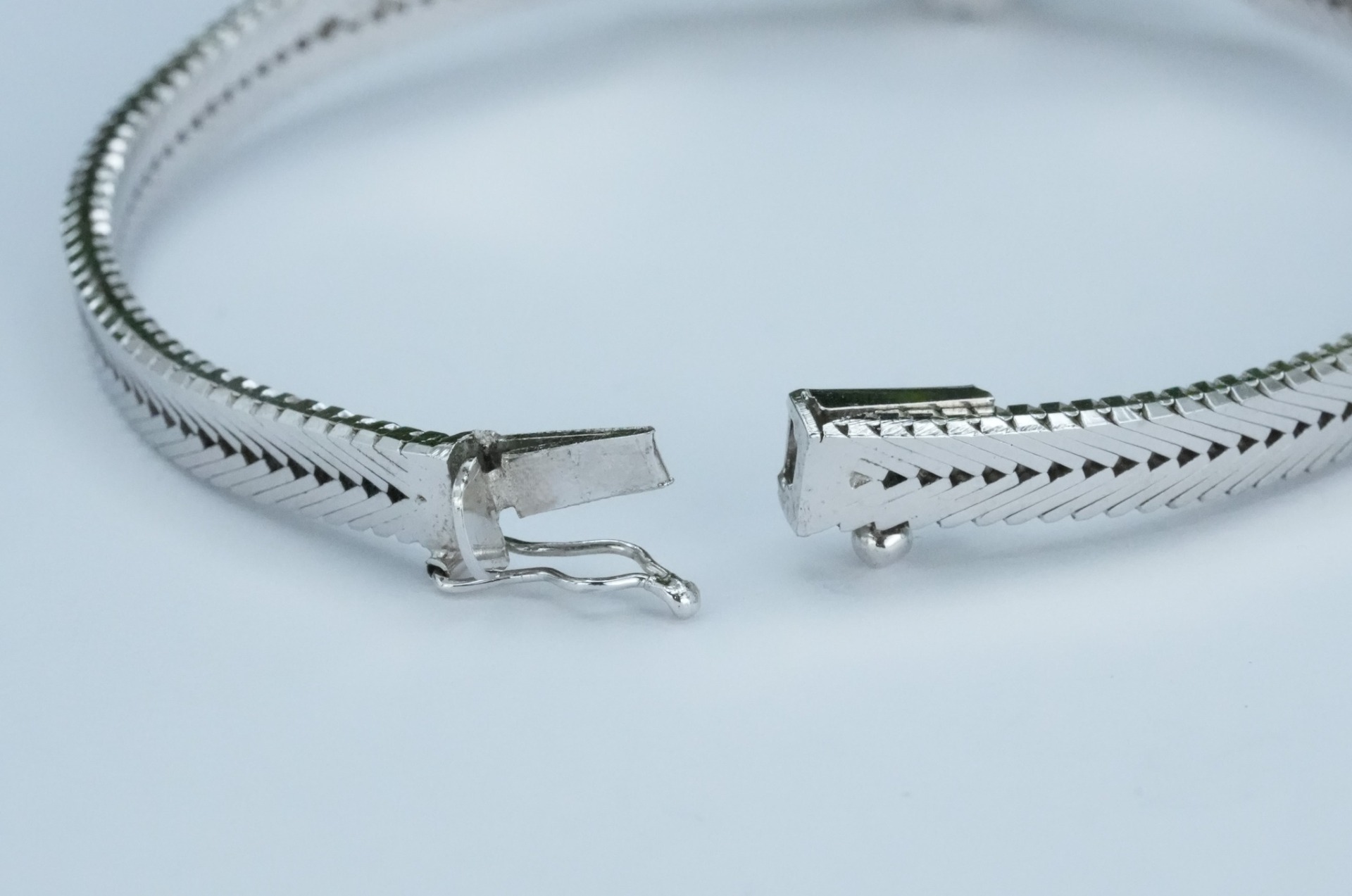 Brățară veche din argint rodiat, superbă, cu pietre cubic zirconia.