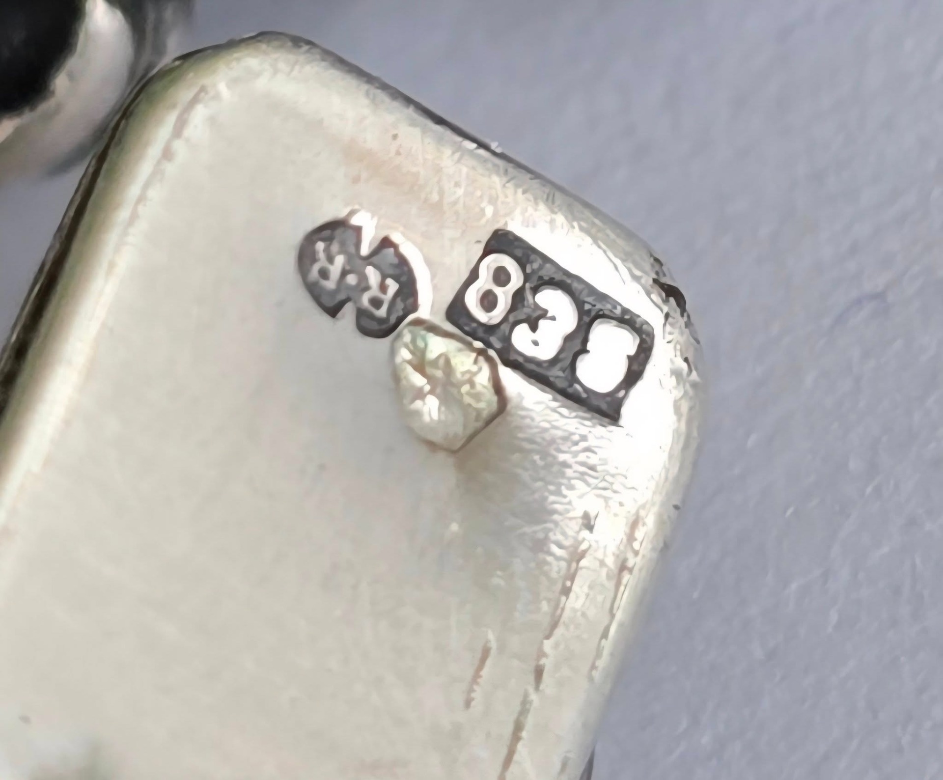 Prezintă marcaj de argint 835, marcaj specific austriac de garanție, cu literă de oraș de certificare și marcaj de meșter.