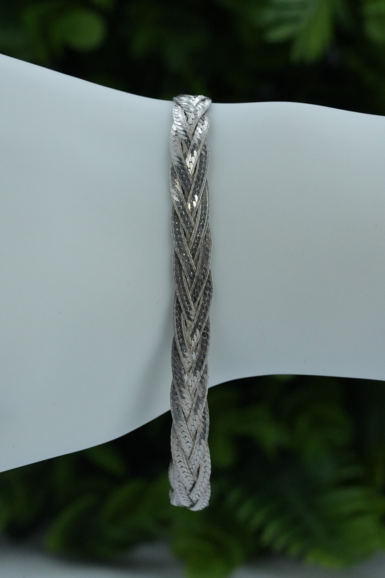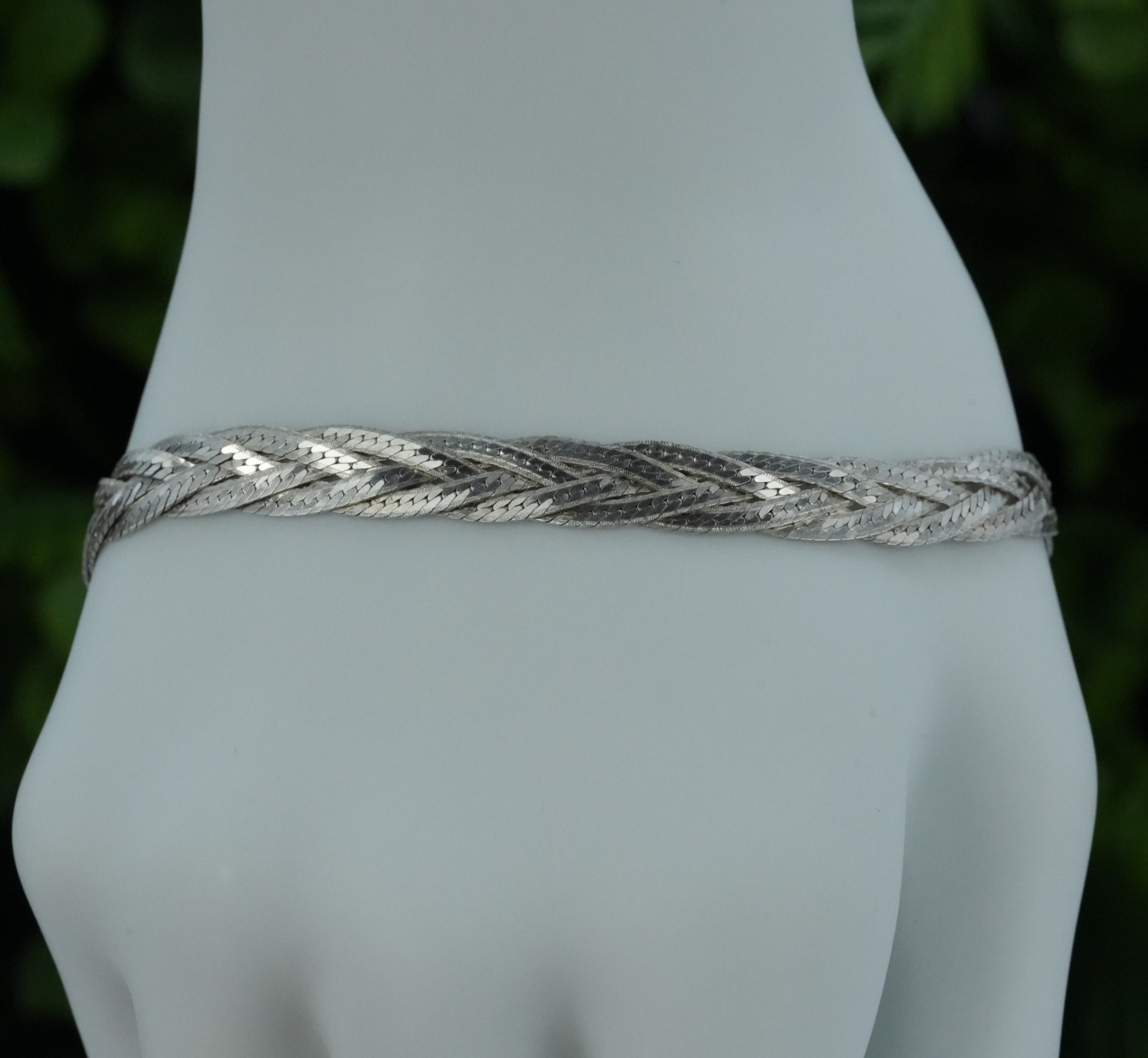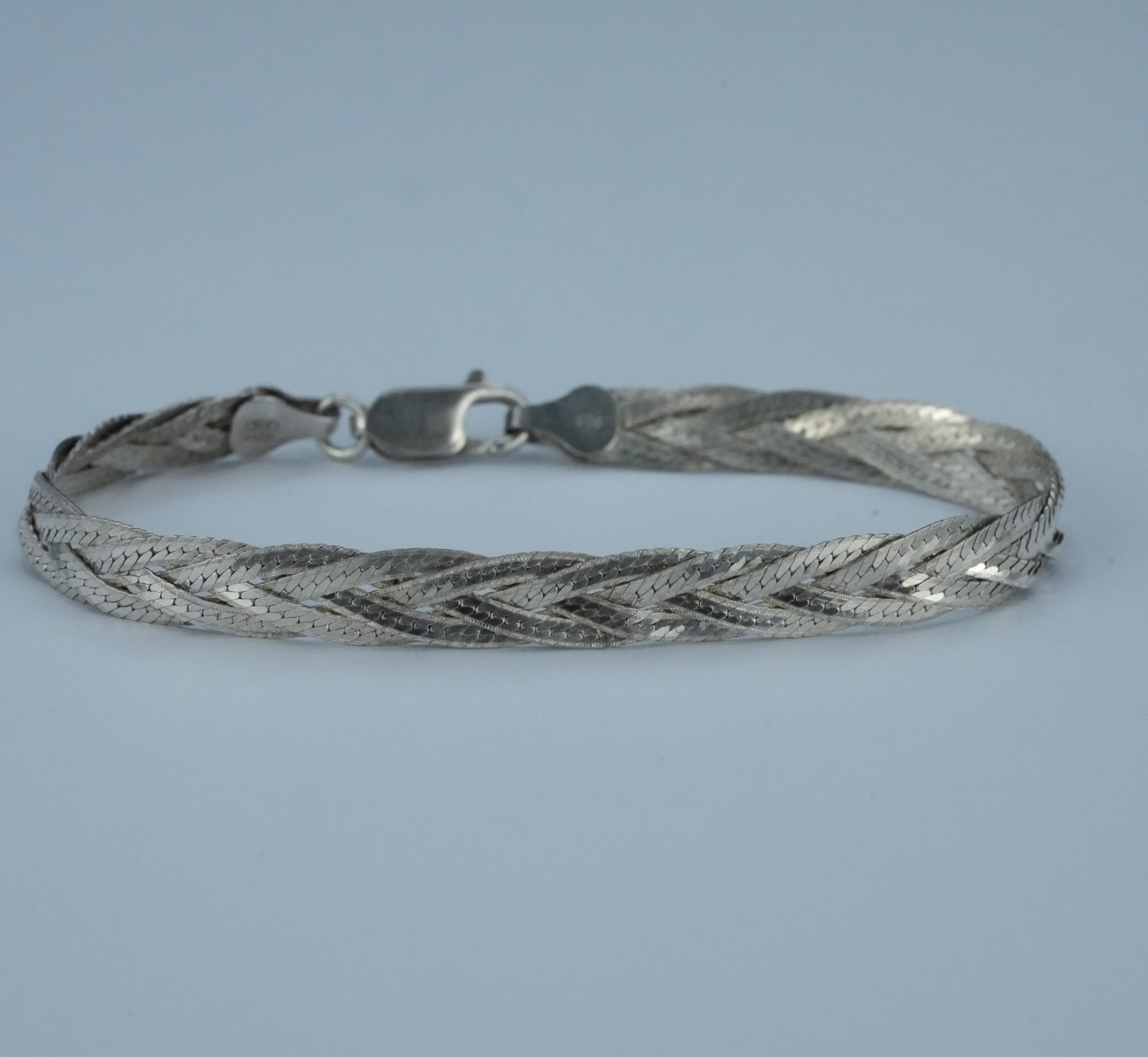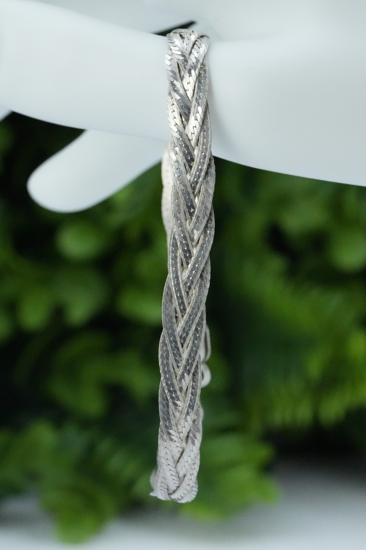 Brățară veche împletită, din argint, frumos lucrată manual.